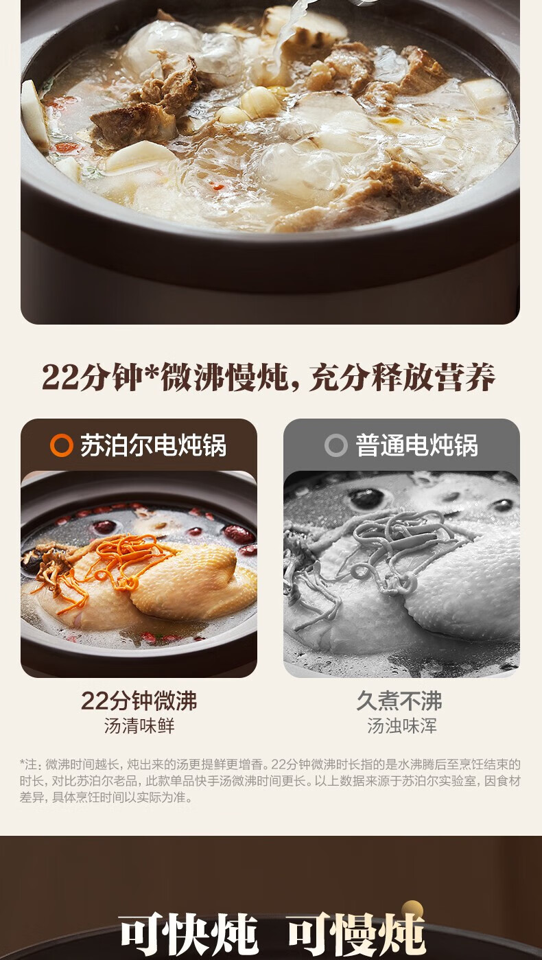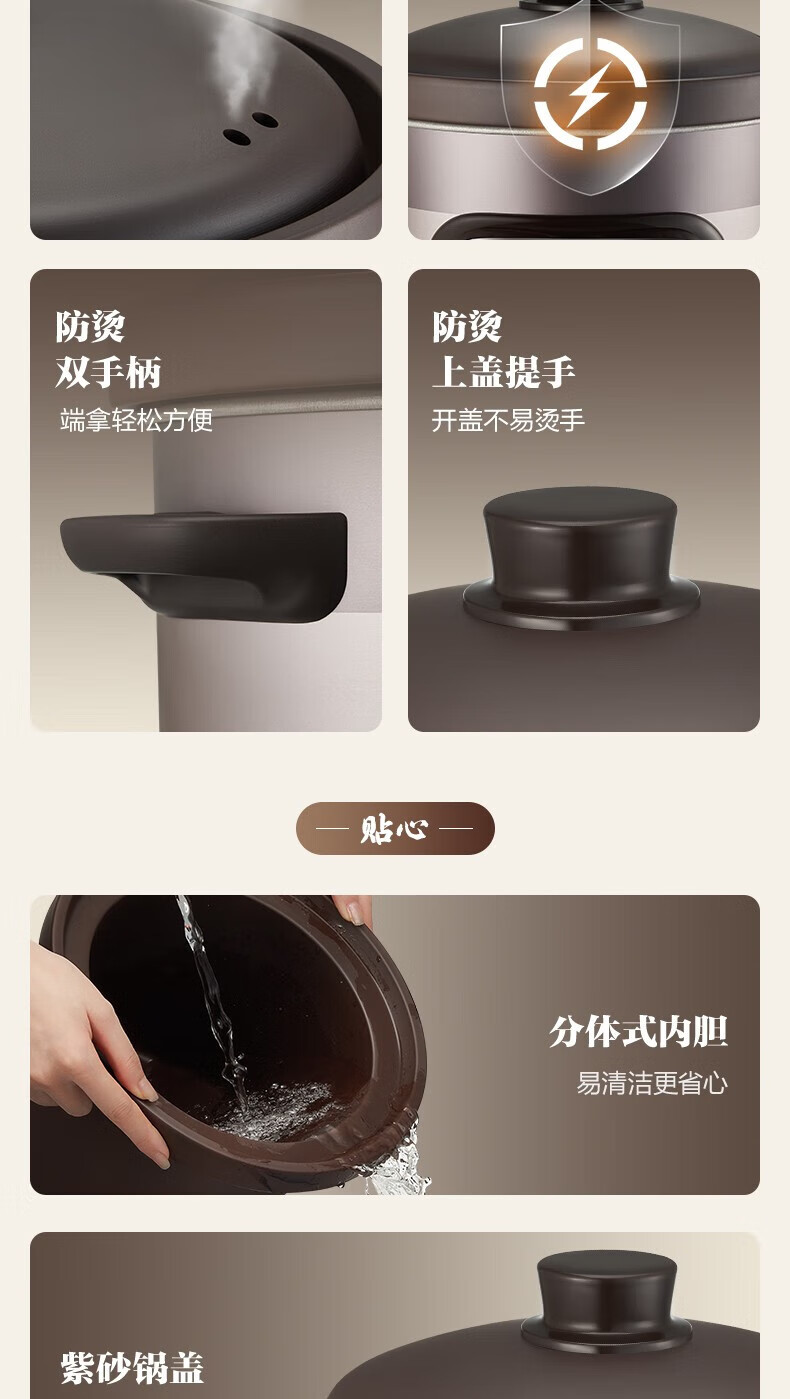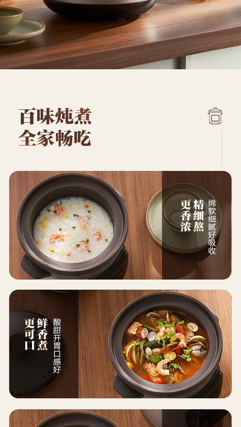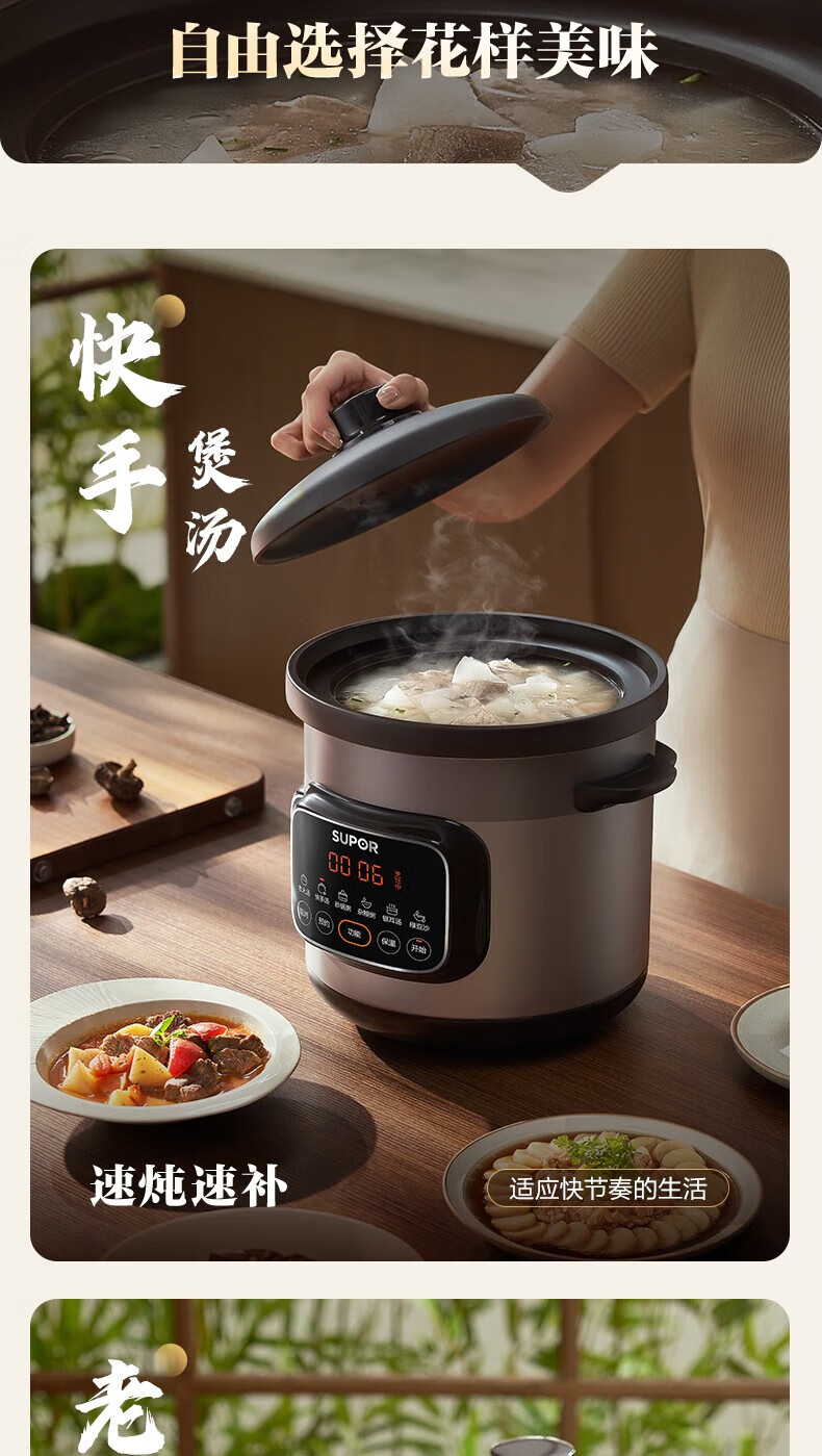 SUPOR Electric Stew Pot Purple Clay Pot 5L Large Capacity Quick Stew Pot Multifunctional Porridge Pot Electric Casserole Home Intelligent Reservation Stew Pot Electric Stew Cup Porridge Special Pot Purple Pottery Liner 5L 500W Fast and Slow Stew