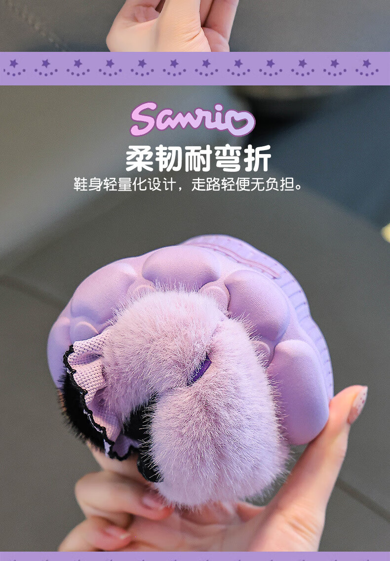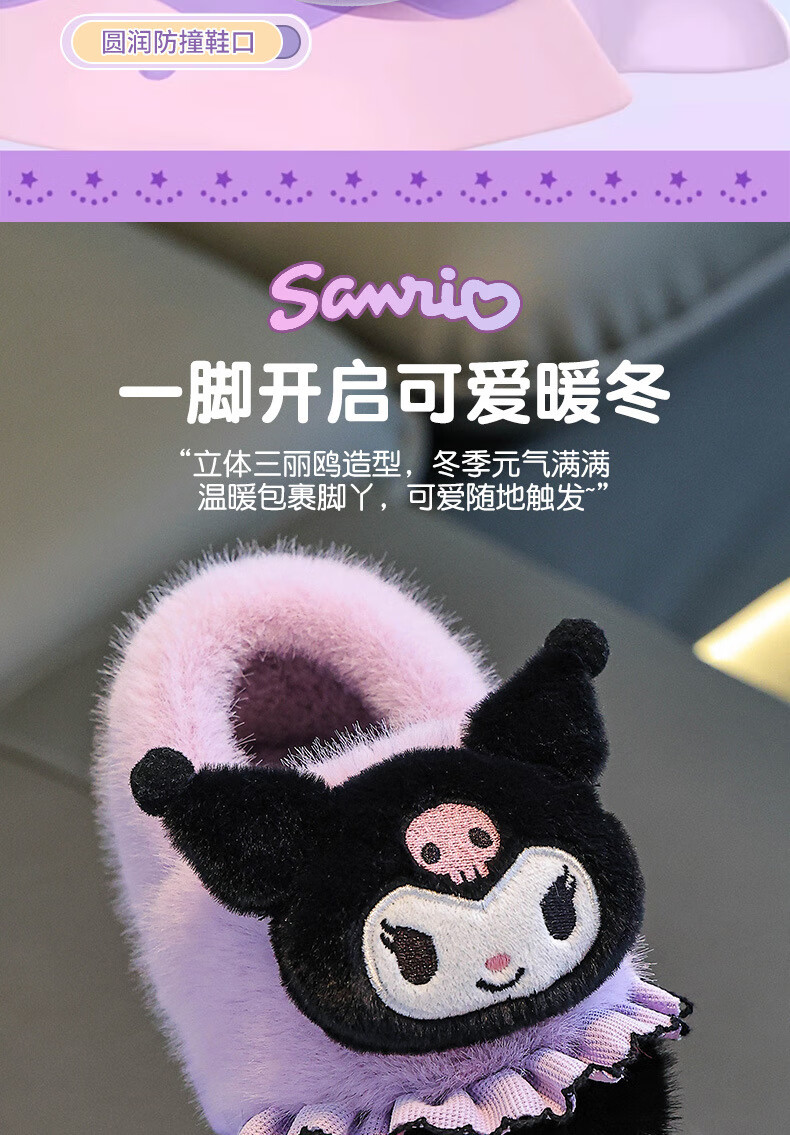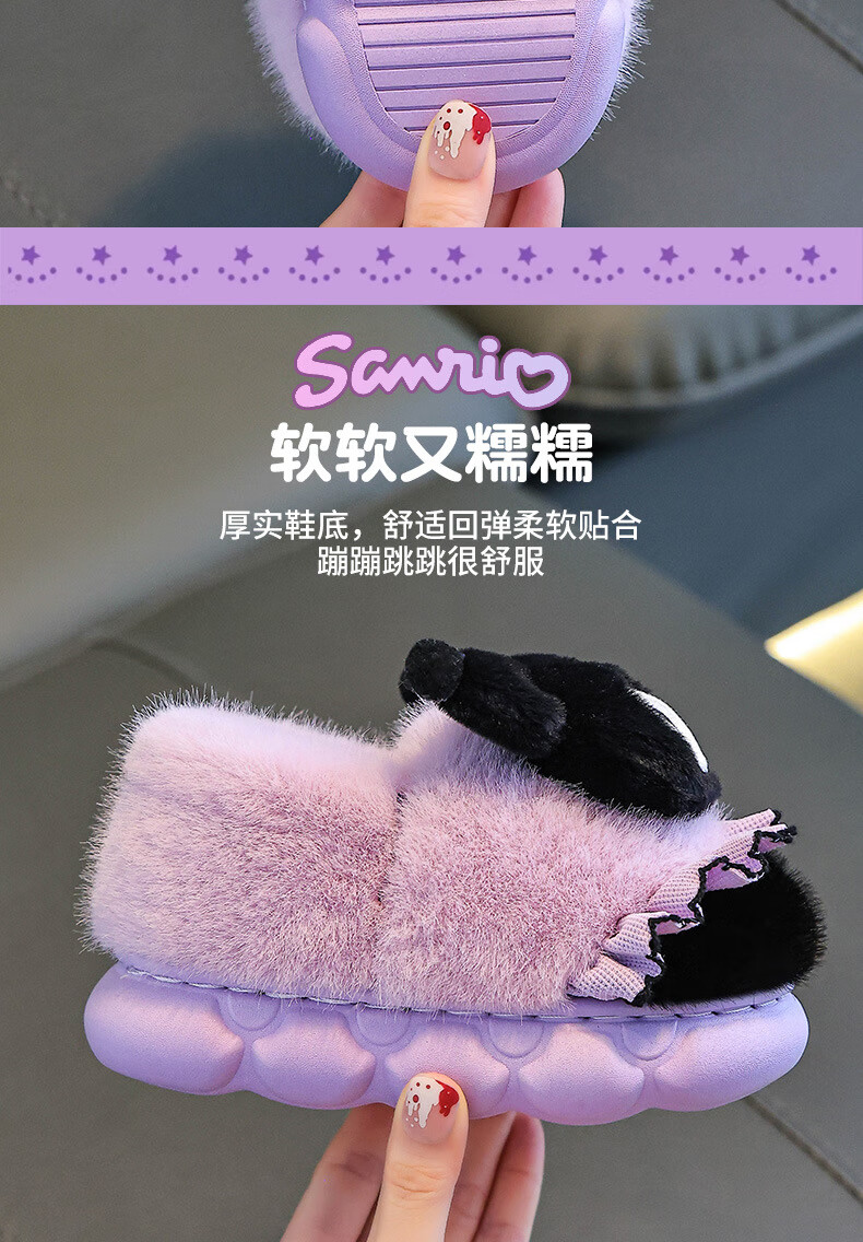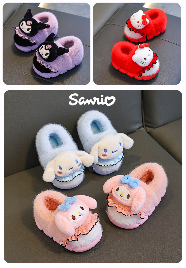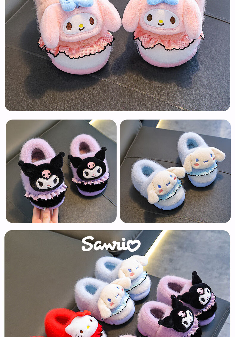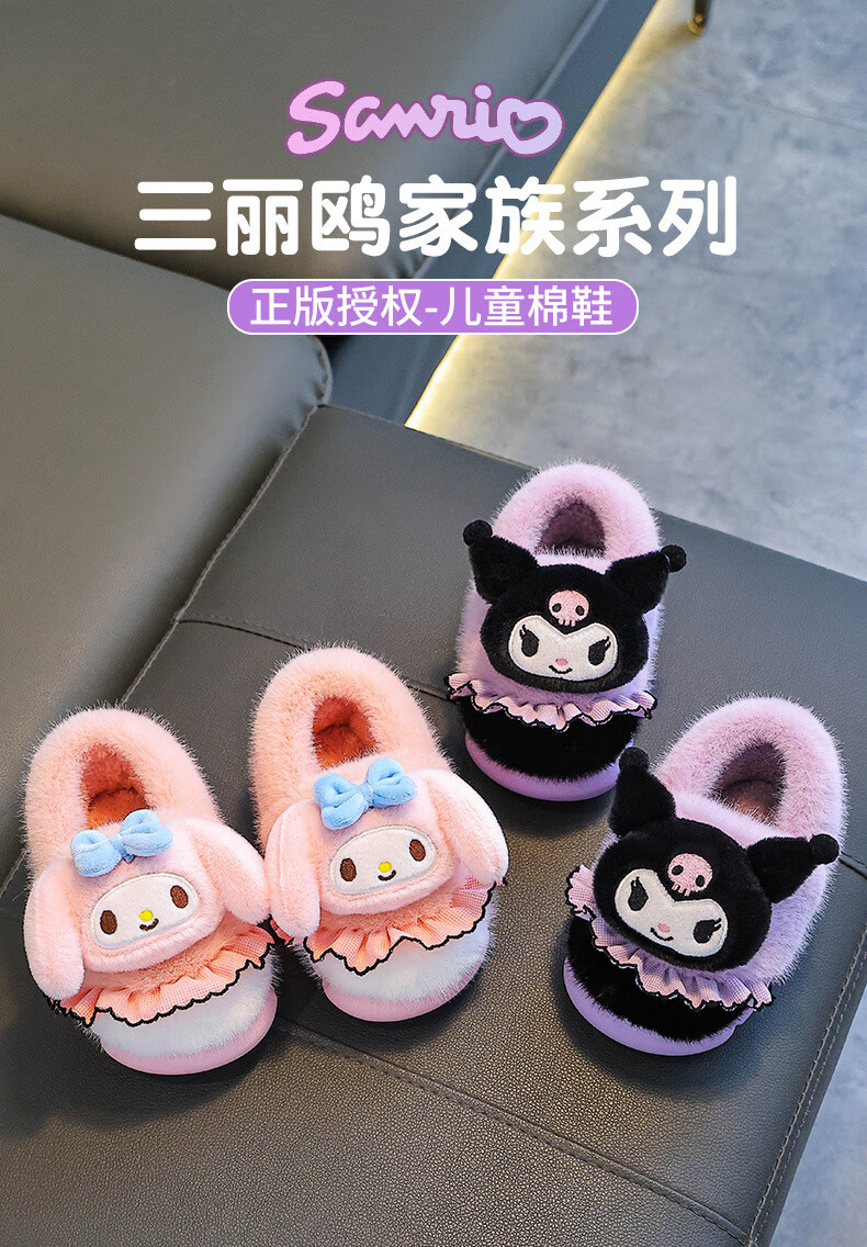 Sanrio autumn and winter children's cotton slippers for girls, warm and plush plush parent-child Kuromi baby heel cotton shoes, pink Melody (heel), size 28 29 (shoe inner length 17CM, suitable for feet 16CM)