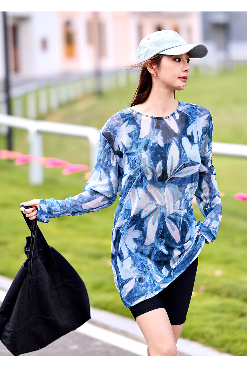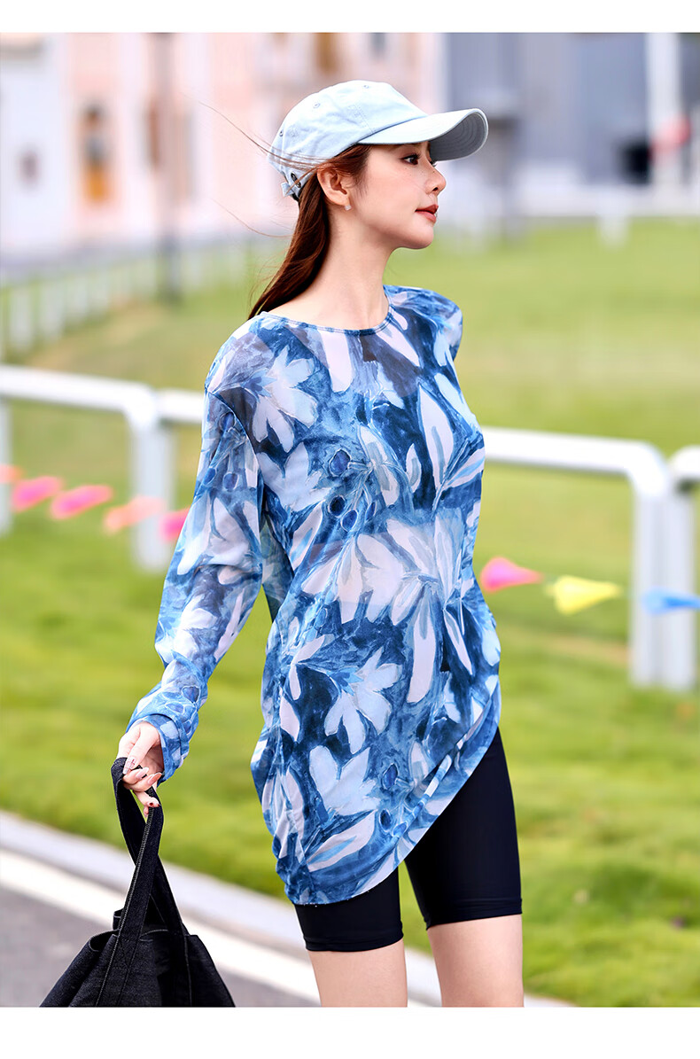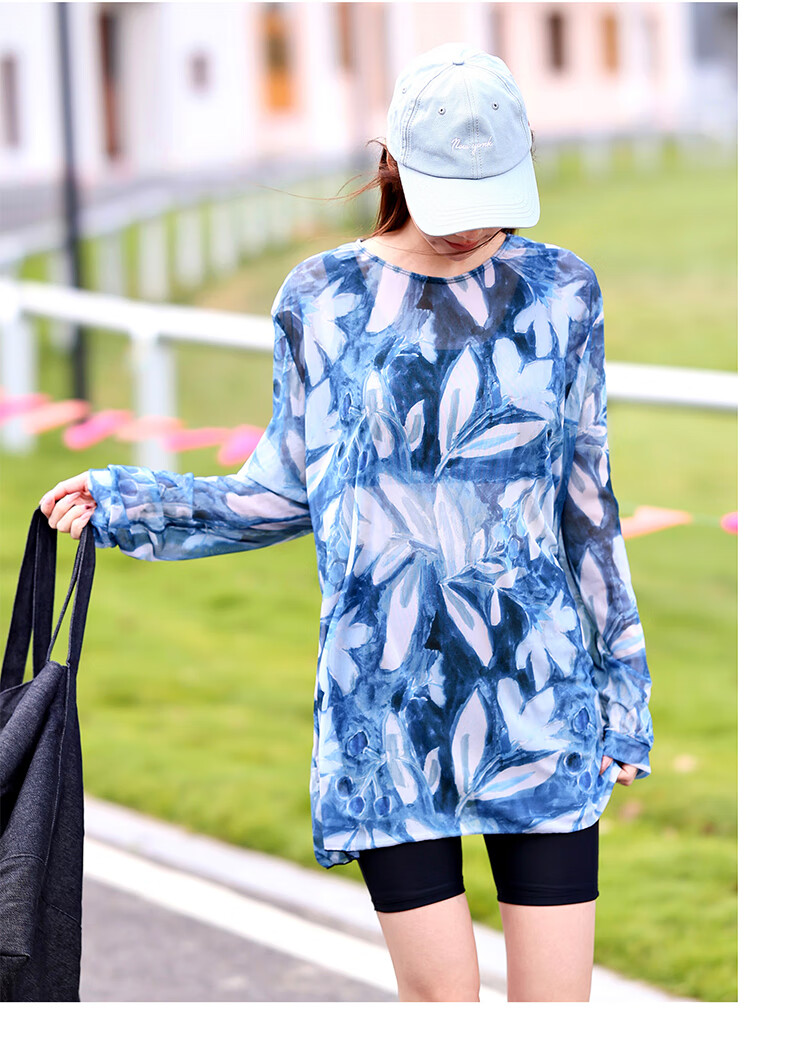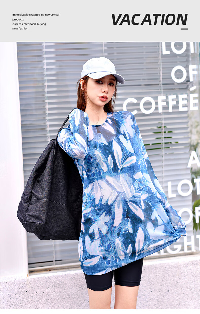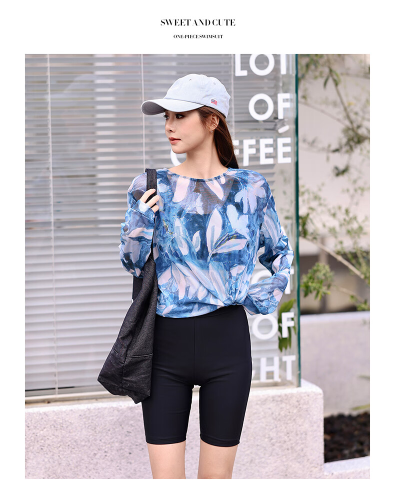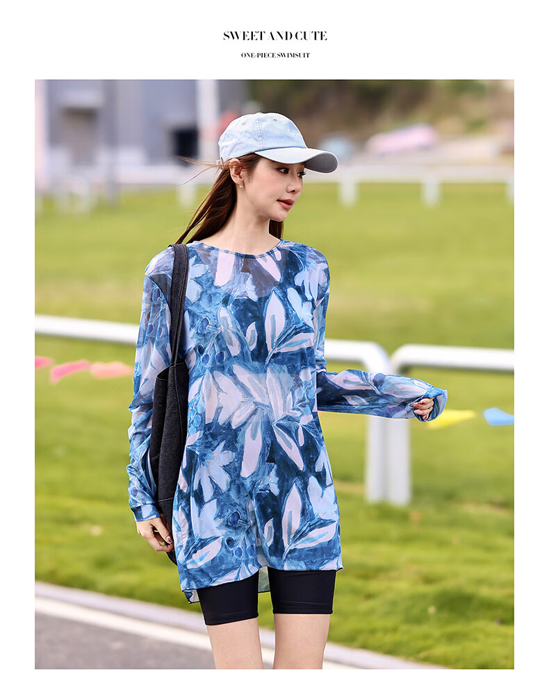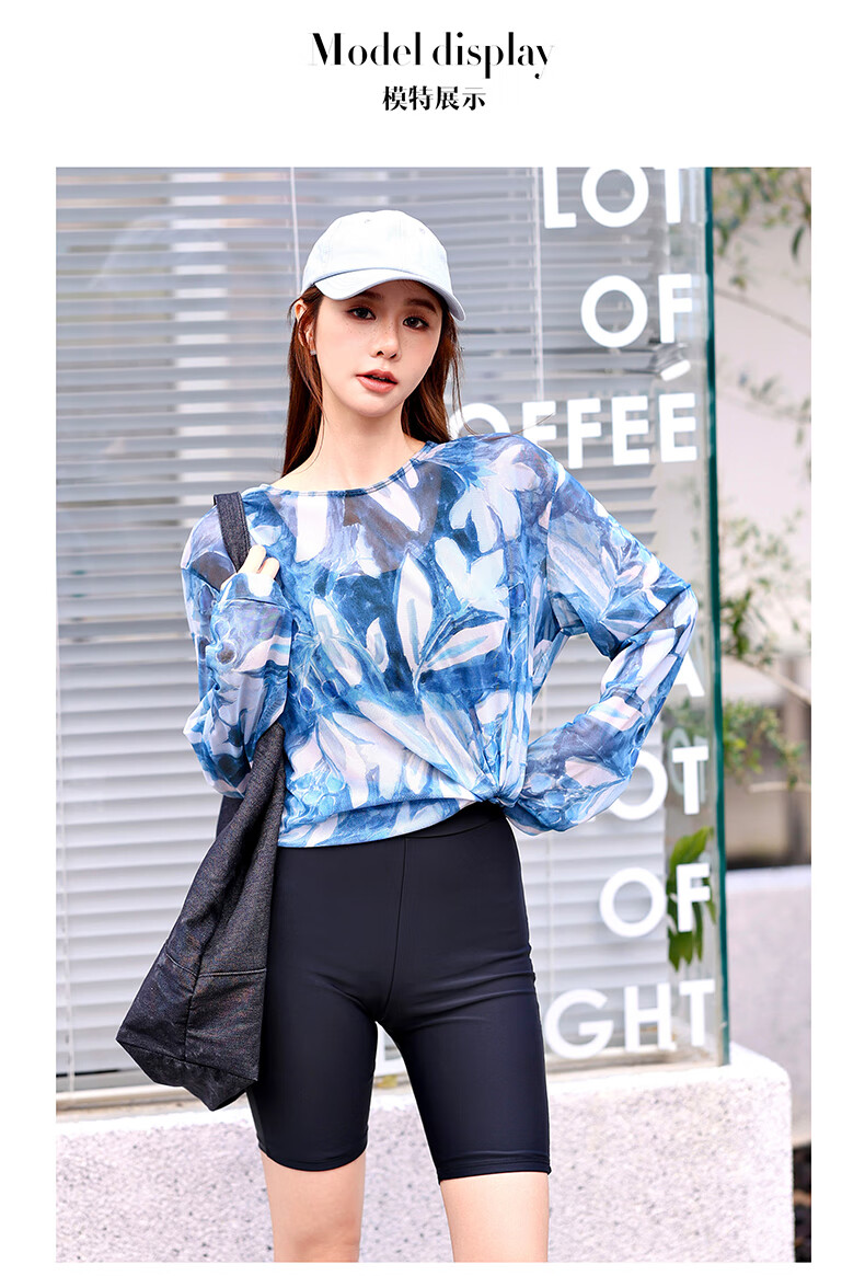Anyu Luo Shiqi swimsuit women's conservative five-point pants sports slimming belly-covering three-piece set long-sleeved new hot spring swimsuit picture color M