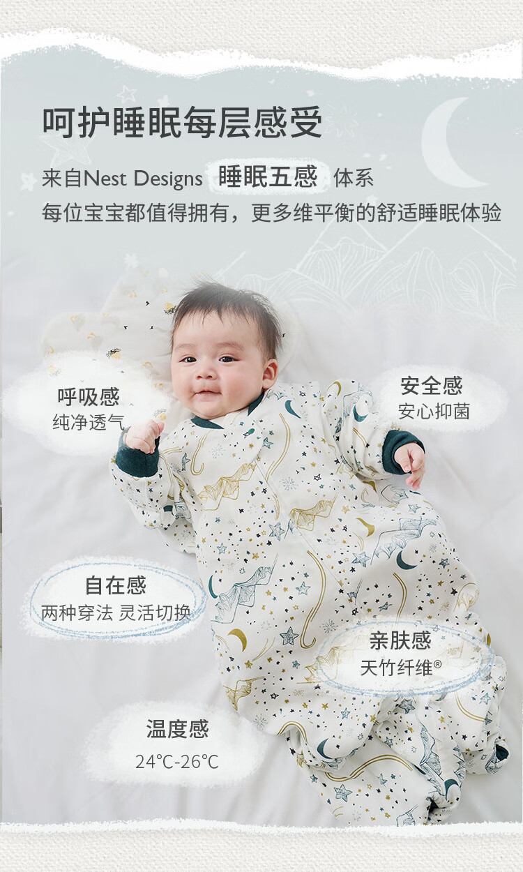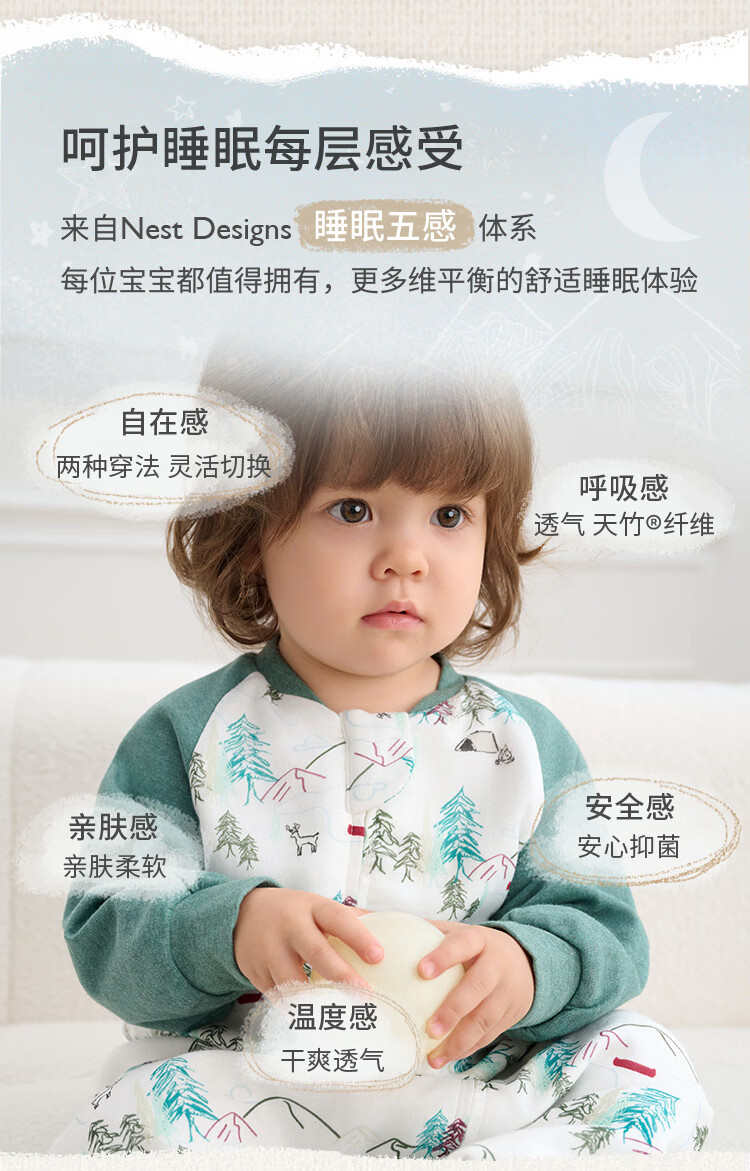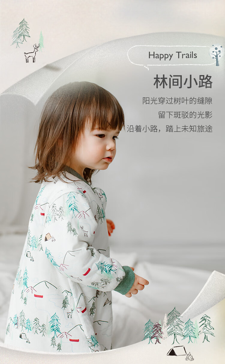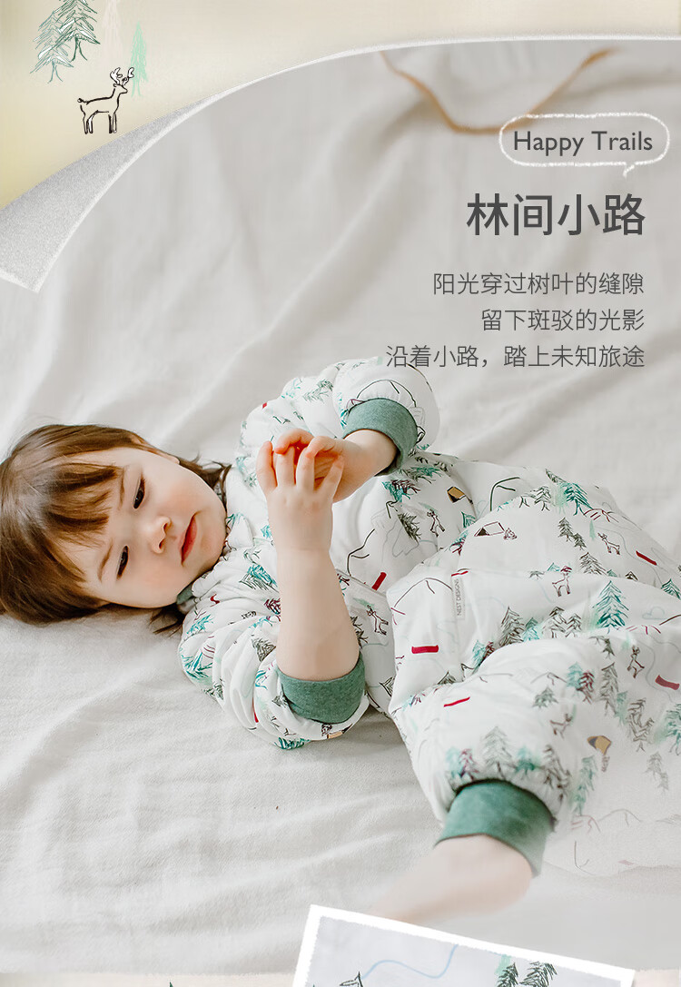 Nest designsnestdesigns infant sleeping bag baby four gauze two-in-one thin quilted anti-kick quilt artifact forest path - four-layer gauze raglan style recommended 24-26 size 70 recommended height 65-75cm