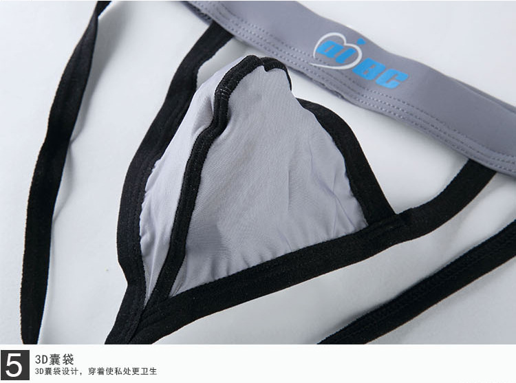 Please confidential delivery men's underwear sexy double thong ice silk low waist thin section hollow buttocks sex sky blue M