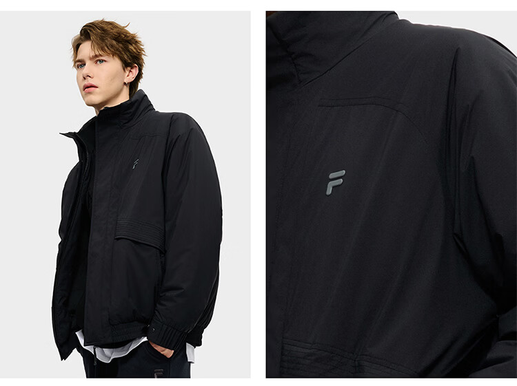 FILA FUSION Fila trendy brand cotton jacket for men 2026 spring new fashion casual loose warm jacket black-BK M 170/92A/M