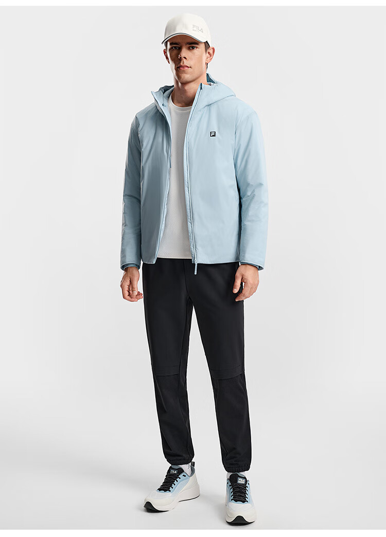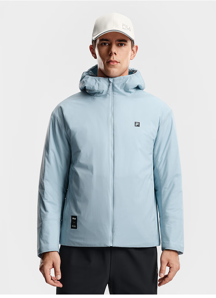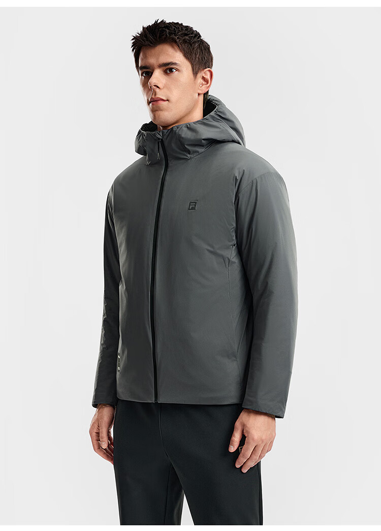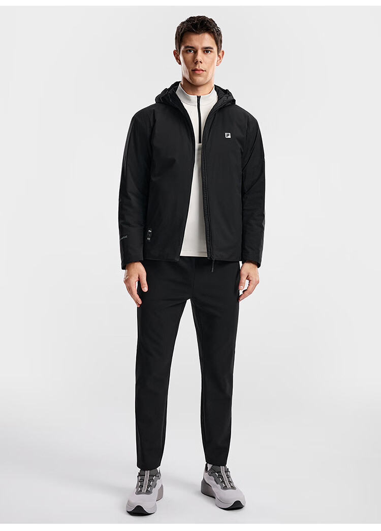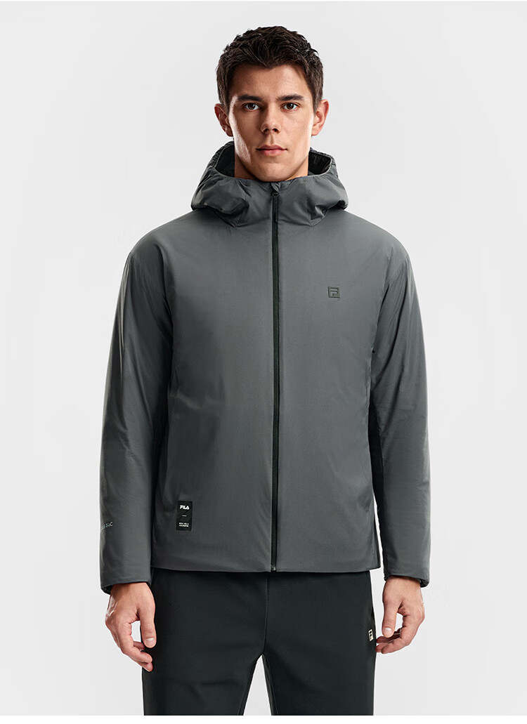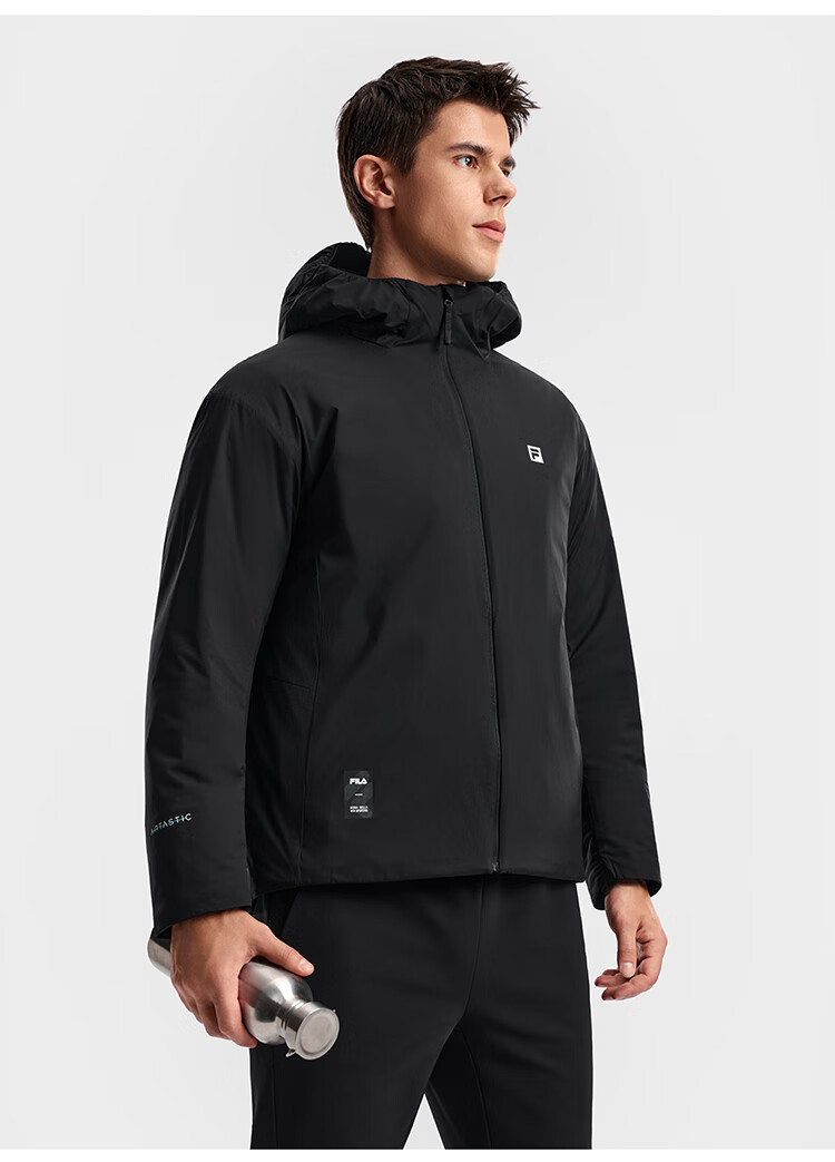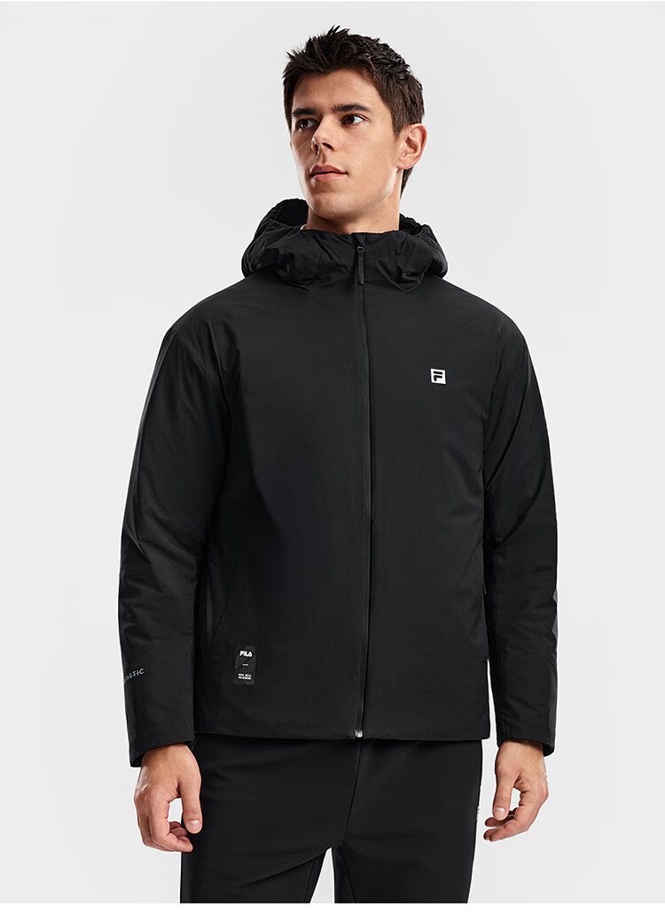 FILA Official Men's Cotton Clothes 2026 Spring New Fitness Sports Simple Loose Warm Hooded Jacket Dark Black-BK L 175/96A/L