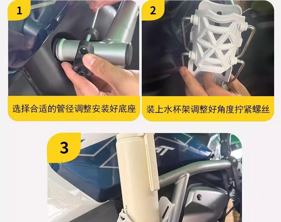 Yuanzu electric vehicle water cup holder, rider-specific motorcycle bumper, cruise water bottle cup holder, bicycle drink holder, obsidian black, automatic adjustment water cup holder with tools, punch-free guard bar, takeaway insulated water cup storage rack