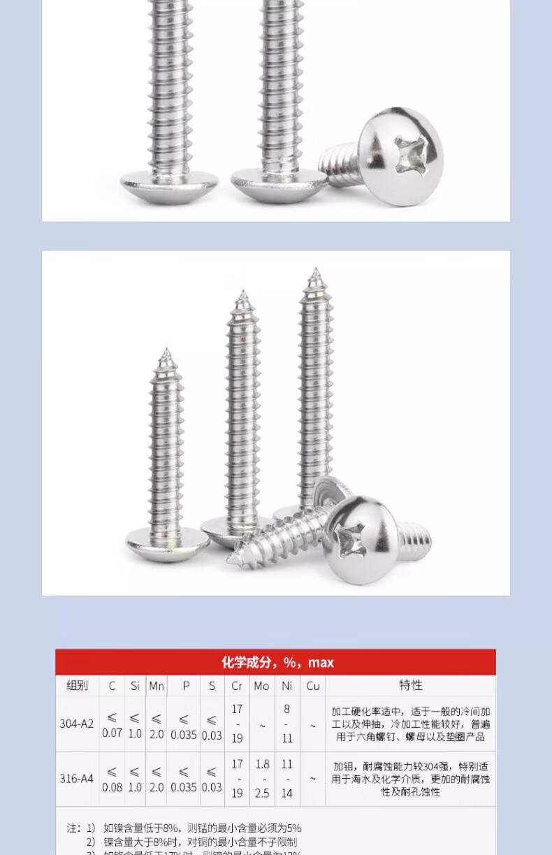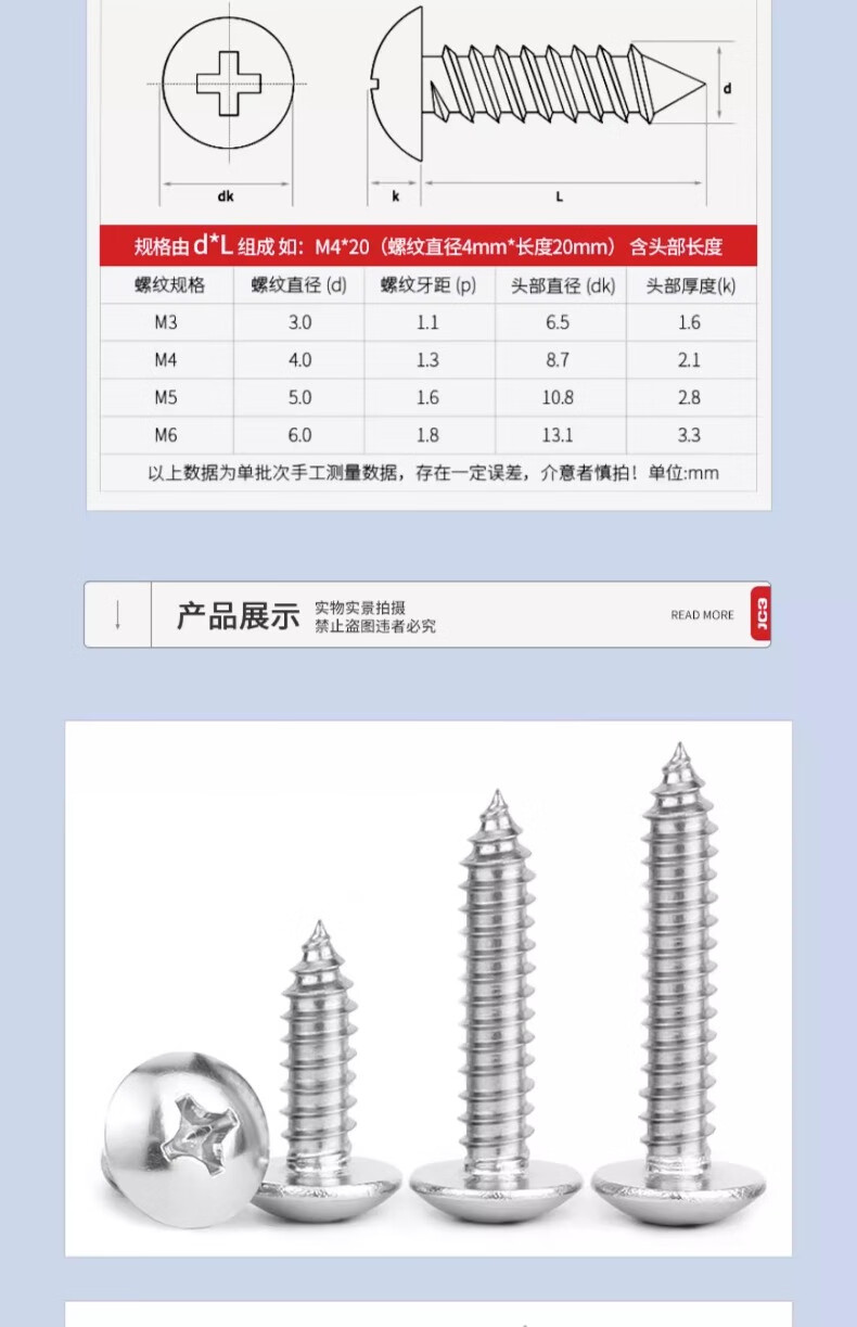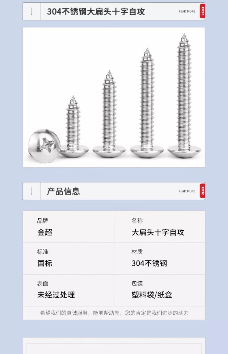 Jinchao 304 stainless steel large flat head self-tapping screws round head cross wood screws umbrella head self-tapping screws M3M4M5M6 M4*8 (50 pcs)