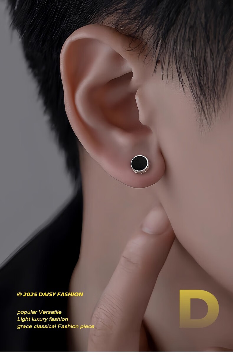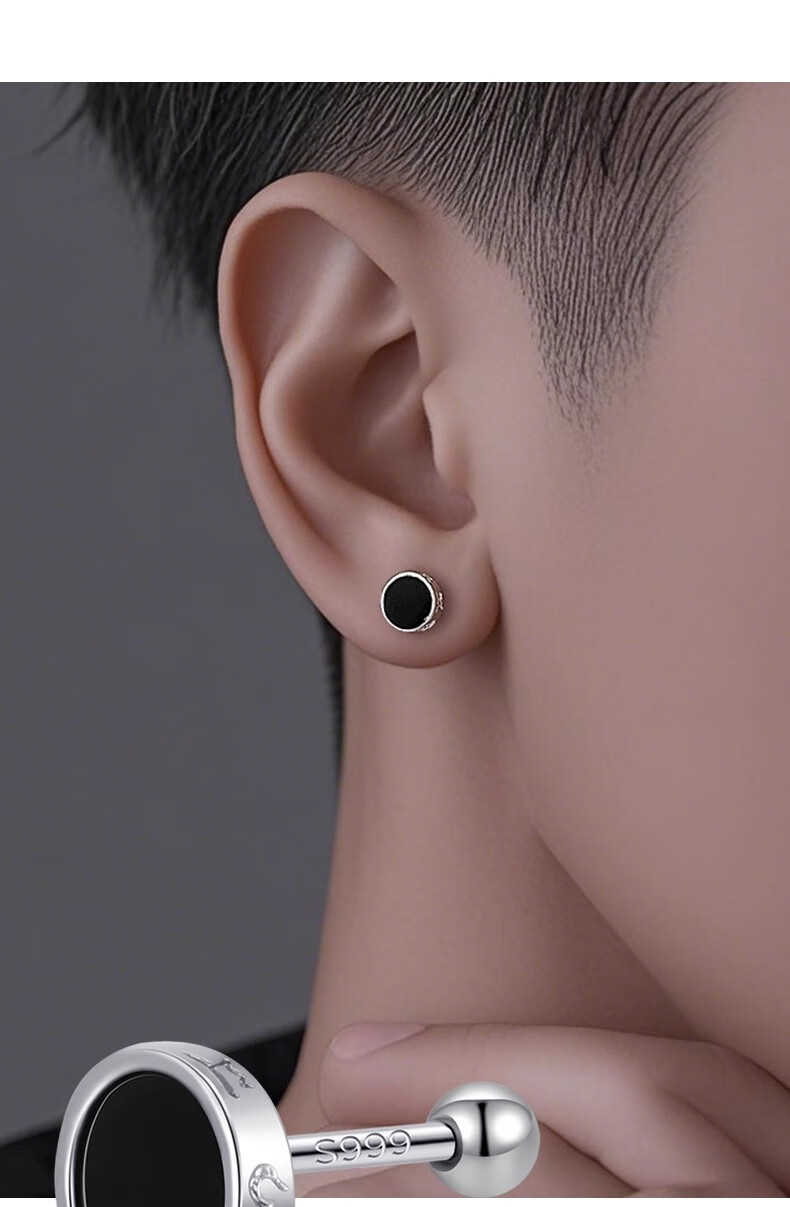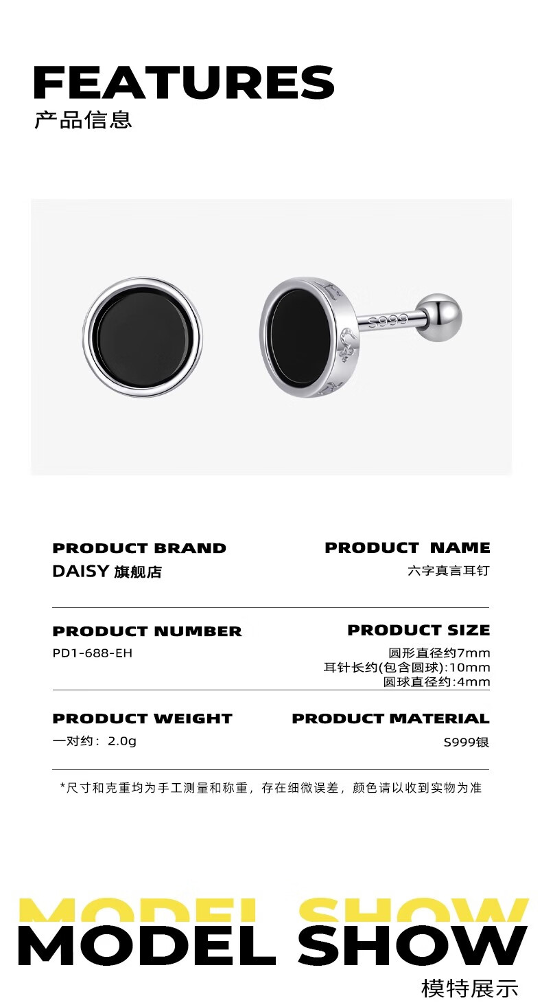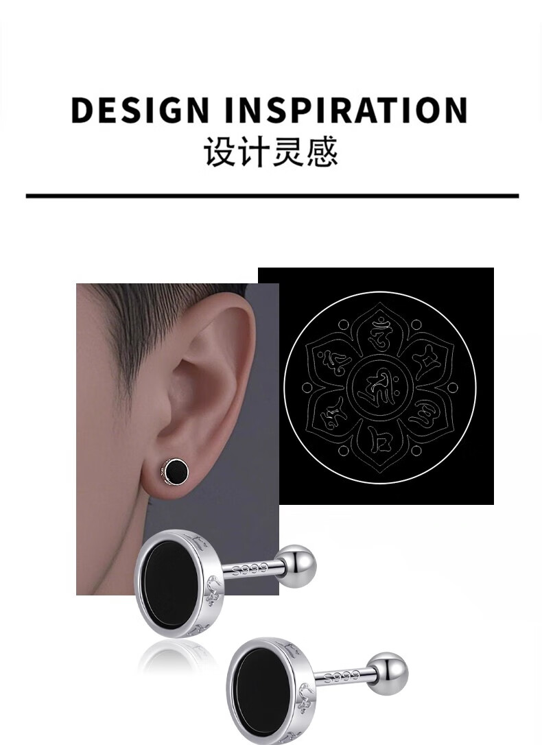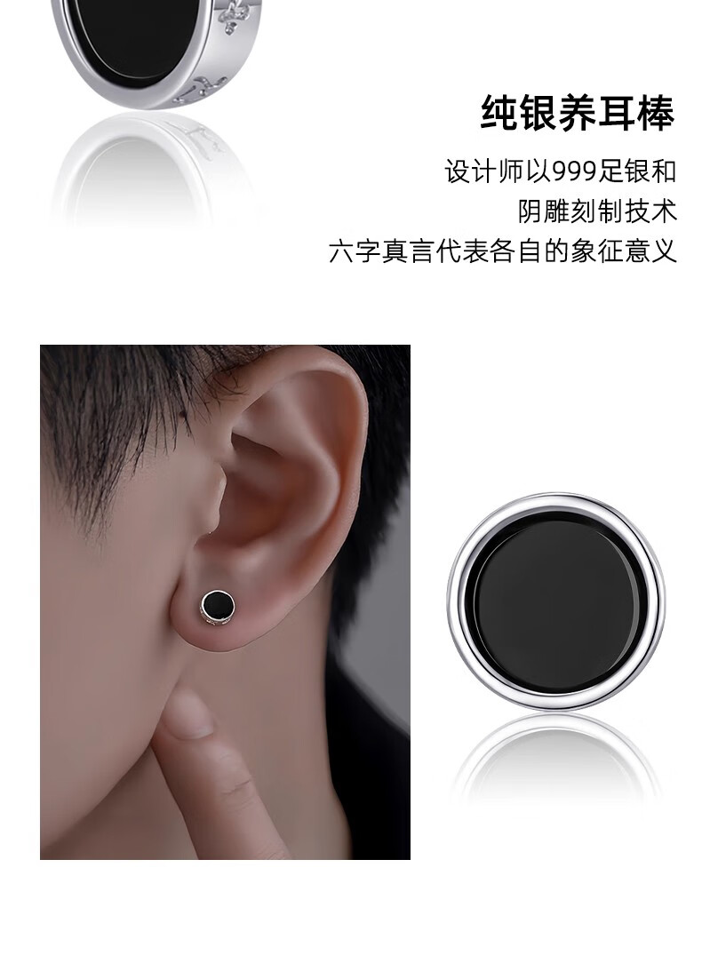 DAISY DREAM999 Pure Silver Needle Six-Word Mantra Earrings for Men Trendy Personalized Ear Bone Nail Earrings 2025 New Hot Style Earrings for Men S999 Silver Needle Six-Word Mantra Earrings Single