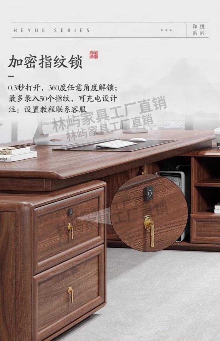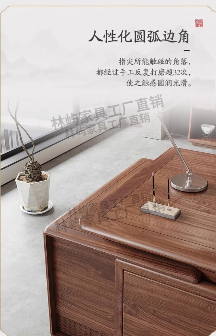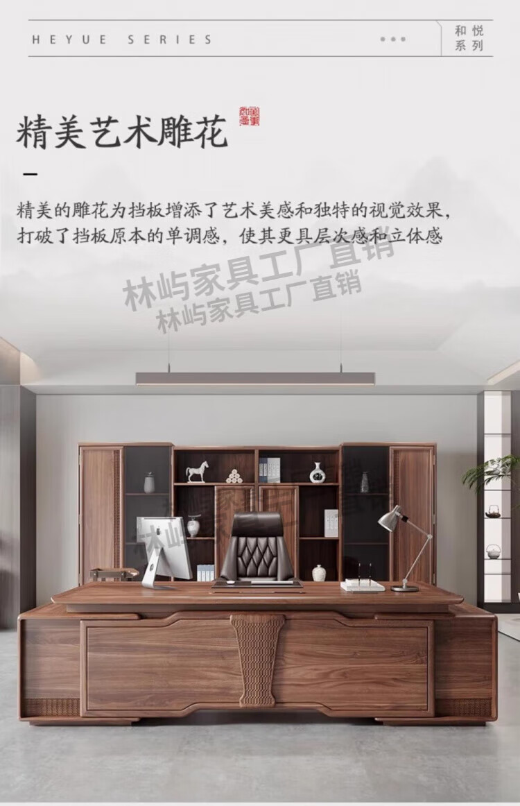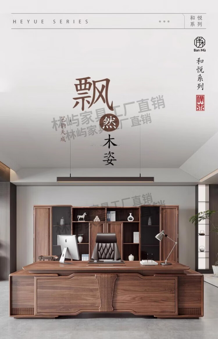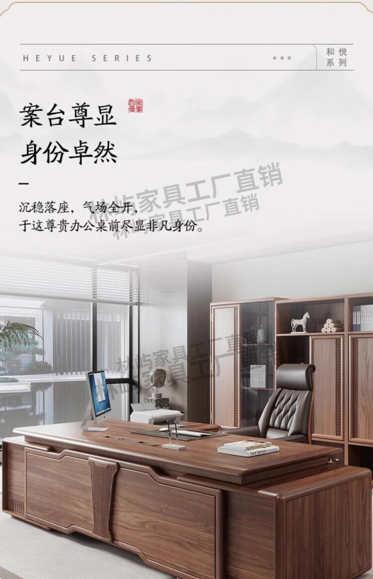 Solid wood desk, new Chinese style boss desk, ebony wood executive desk, modern light luxury general manager room decorative cabinet combination, boss desk customization, consult customer service