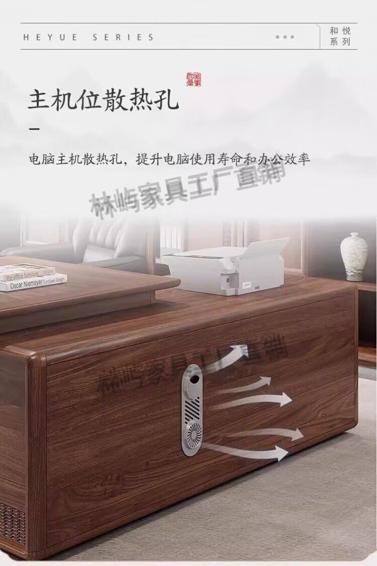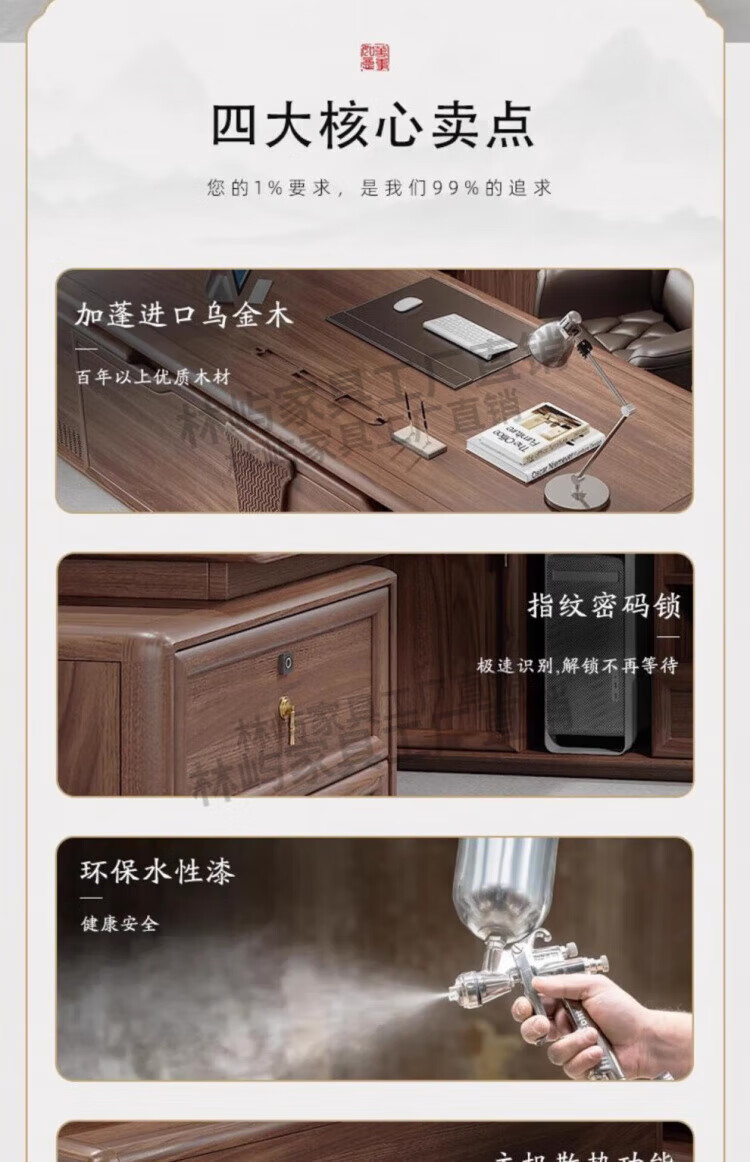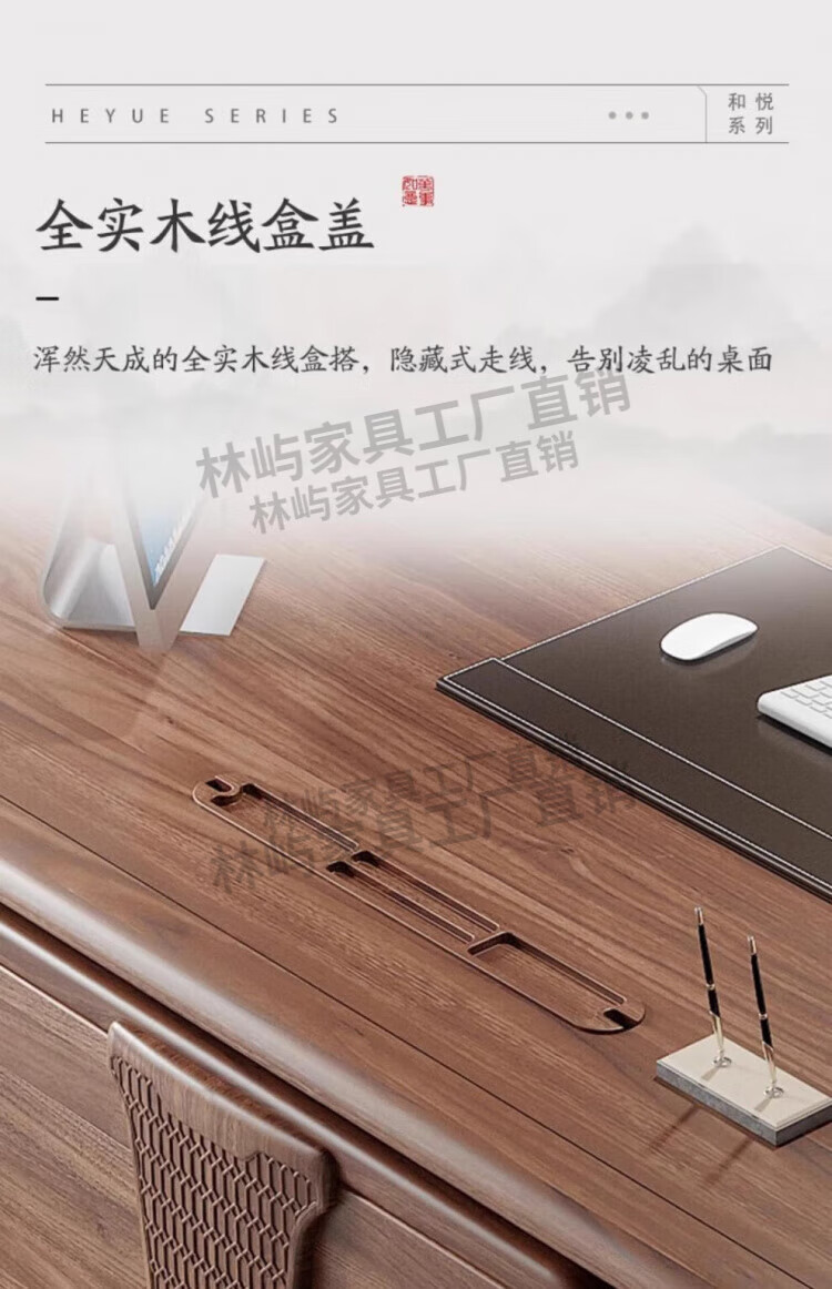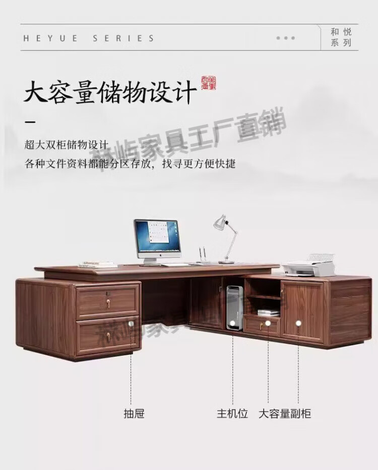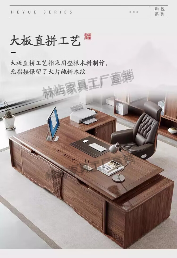 Solid wood desk, new Chinese style boss desk, ebony wood executive desk, modern light luxury general manager room decorative cabinet combination, boss desk customization, consult customer service
