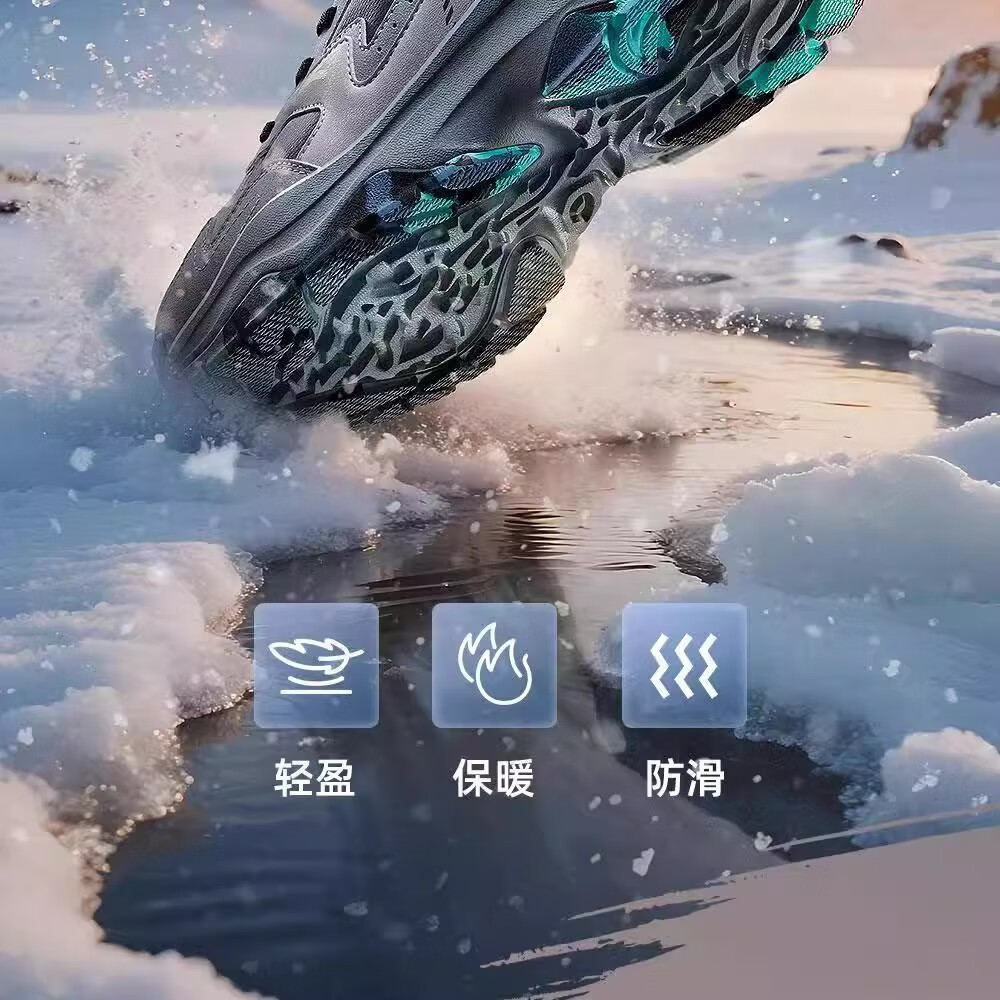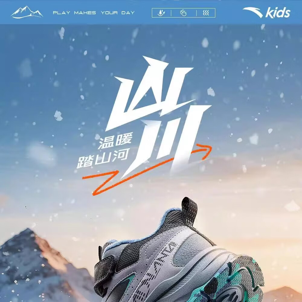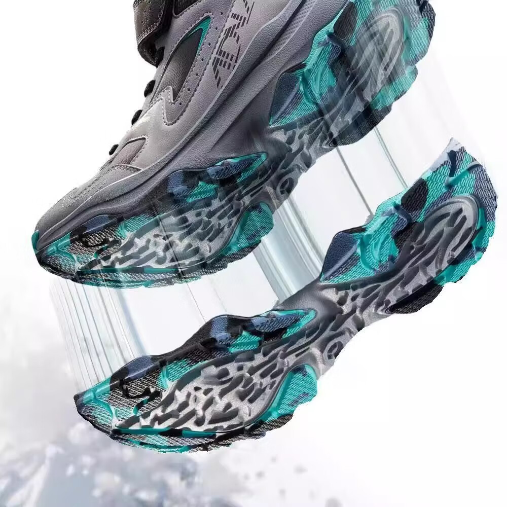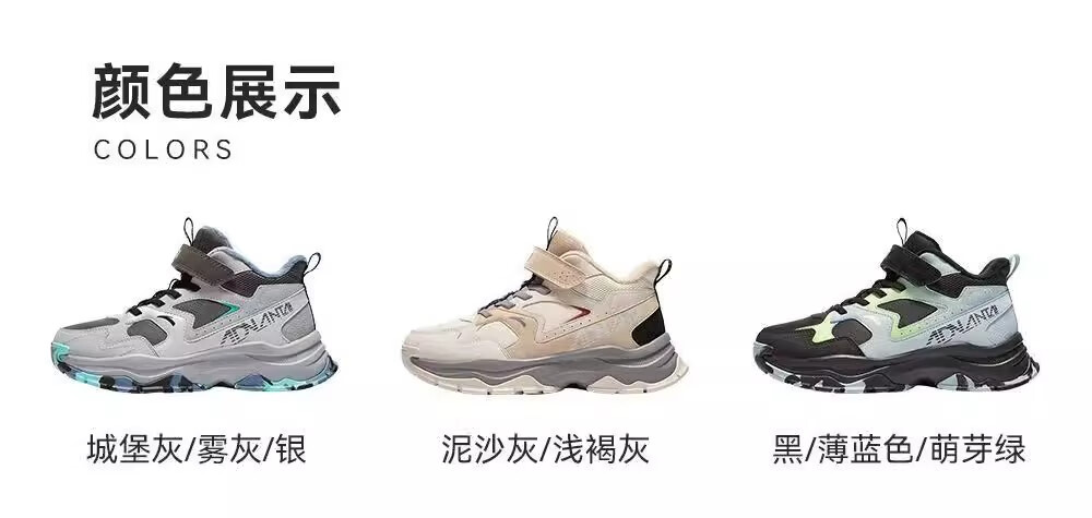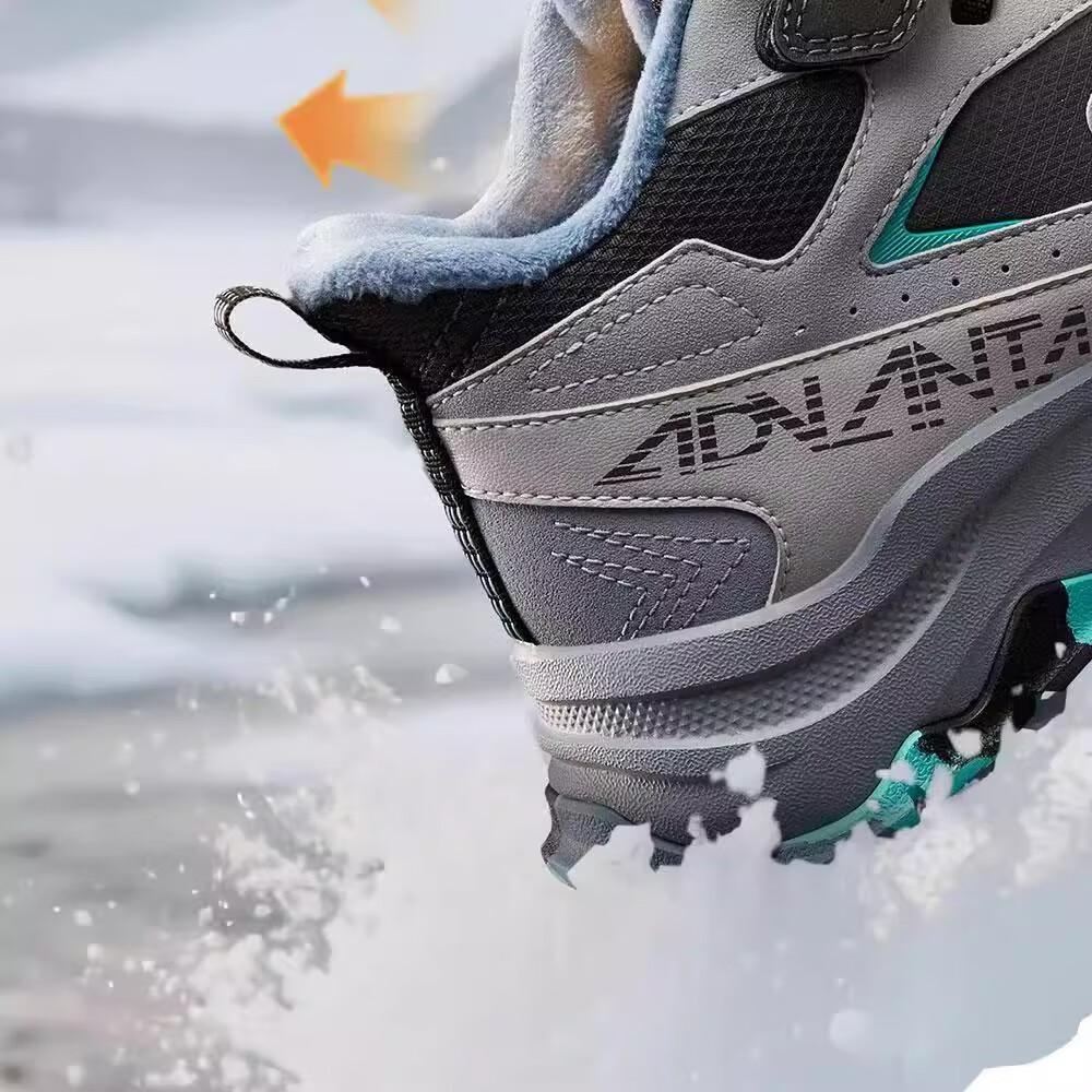 Anta children's cotton shoes for boys, middle and large children, 2026 winter new style plus velvet cotton shoes, high-top comfortable and warm snow boots, castle gray/fog gray/silver-1 Velcro 36, foot length about 23cm