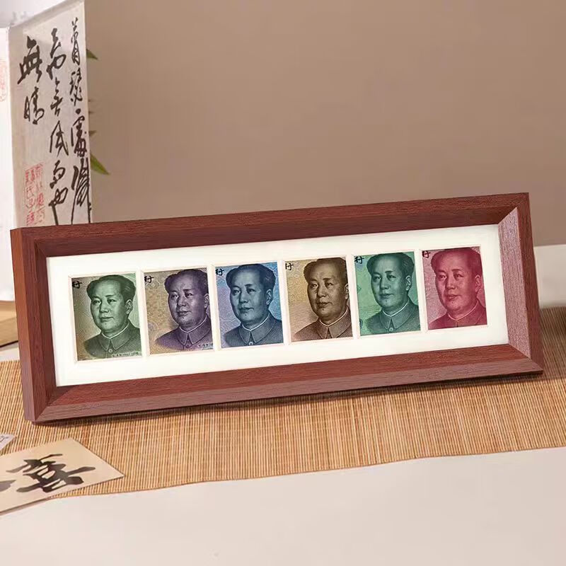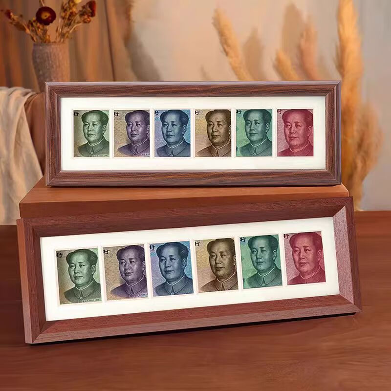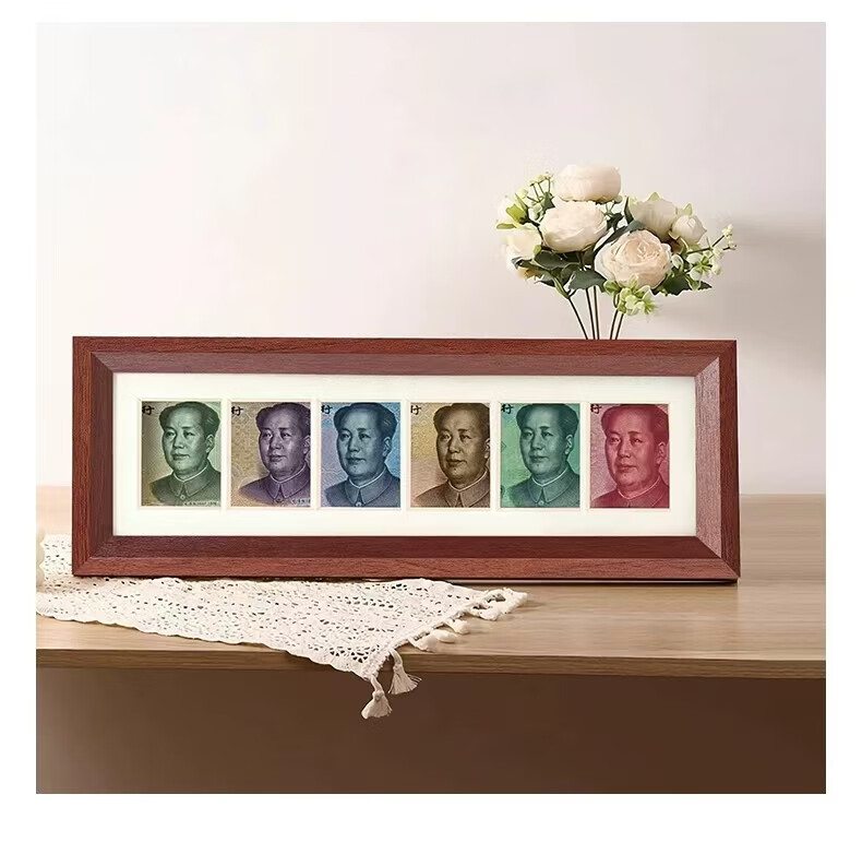 Nanbowan New Year and Spring Festival gift six-link photo frame RMB to look at the money to increase luck and gold annual meeting creative picture frame gift table tens of billions of horizontal style walnut color 32*12*2.5cm 1 piece