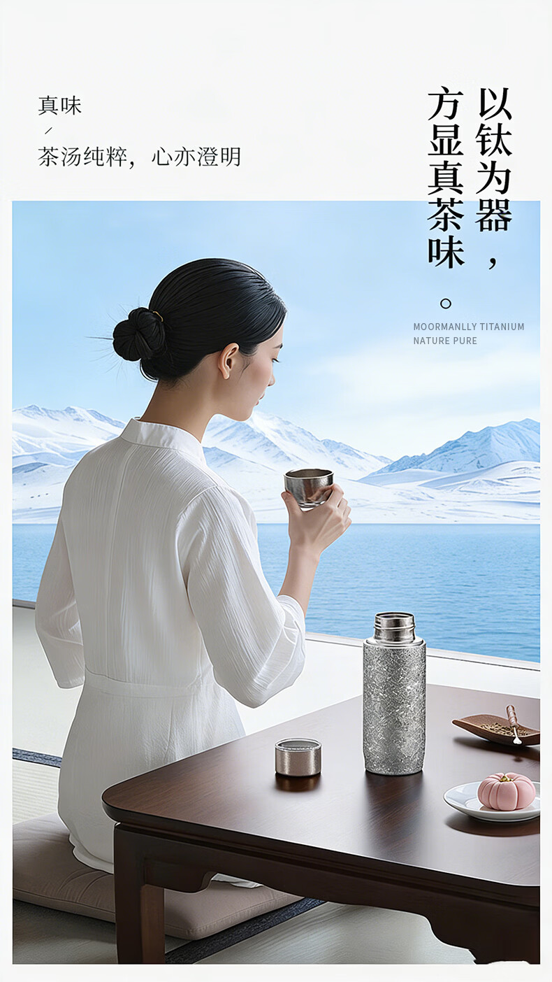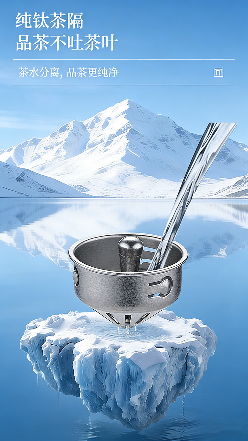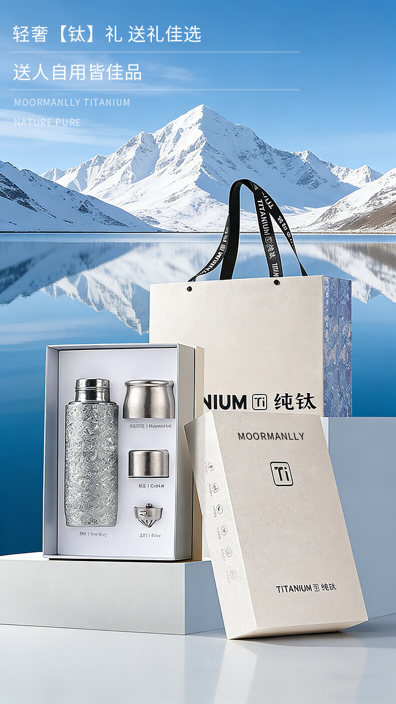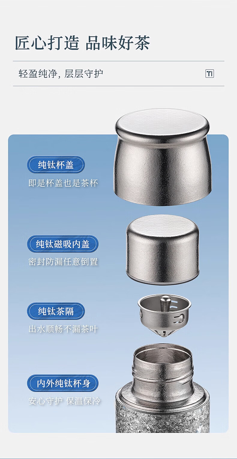 MOORMANLLY French pure titanium thermos tea cup office gift stewed tea titanium cup birthday gift for men and women Valentine's Day Glacier Blue丨410ML pure titanium inside and outside gift box gift bag