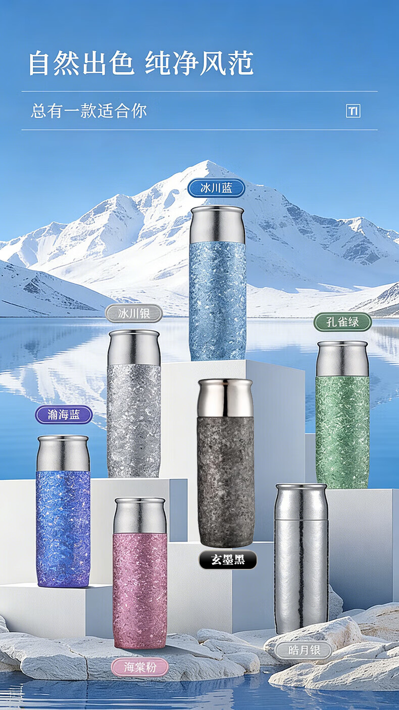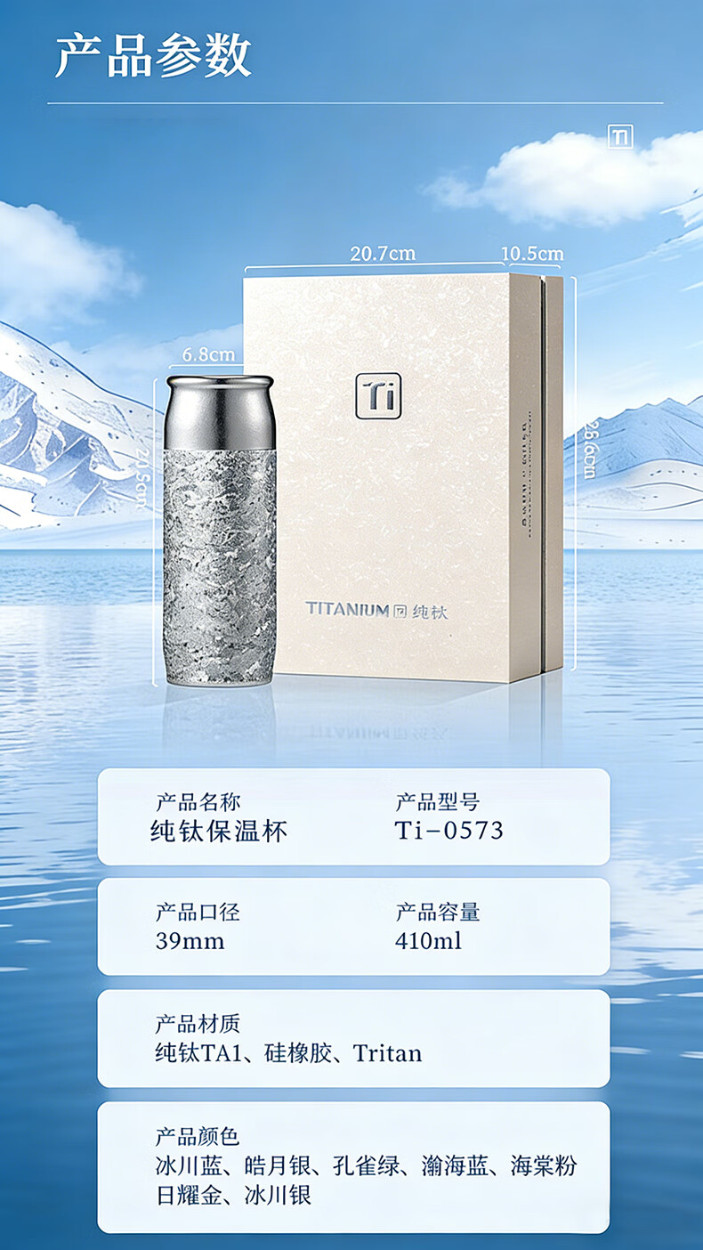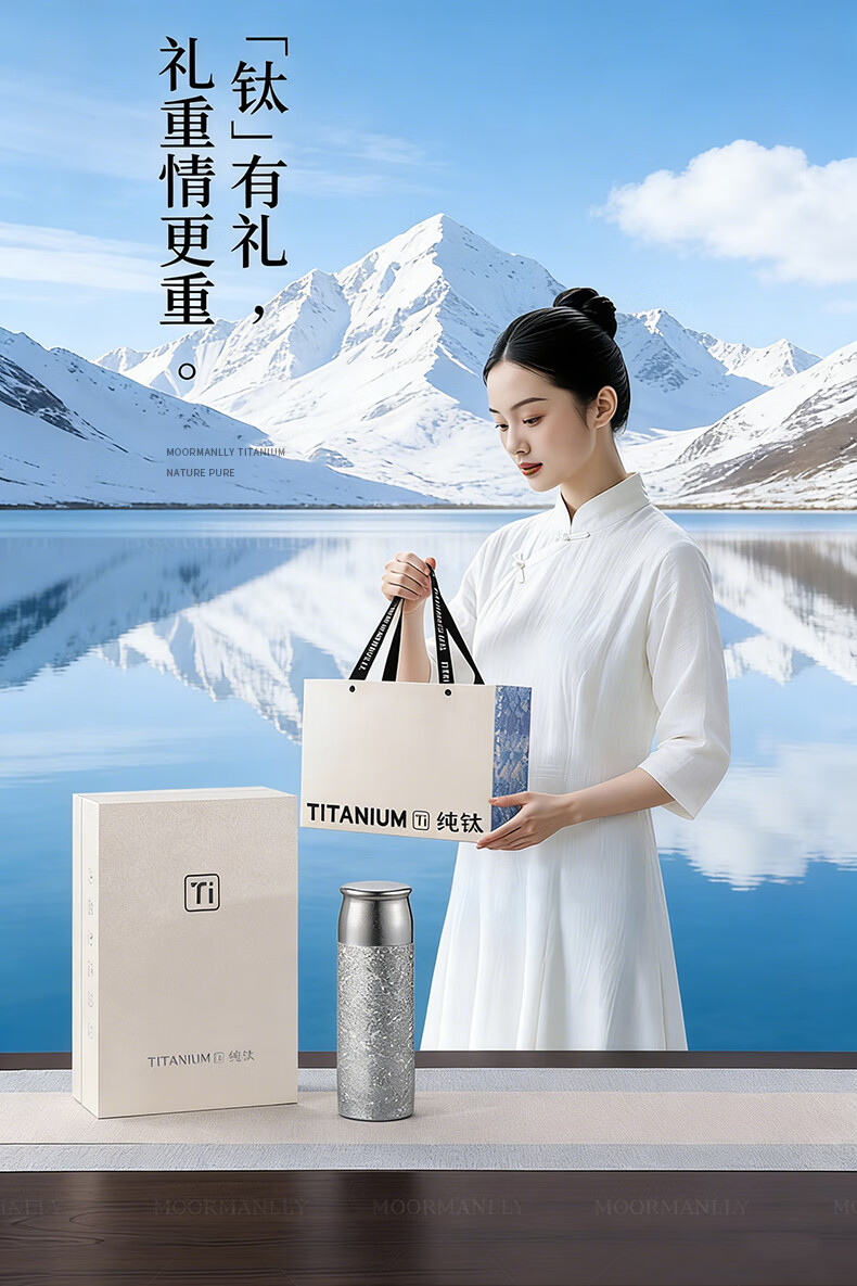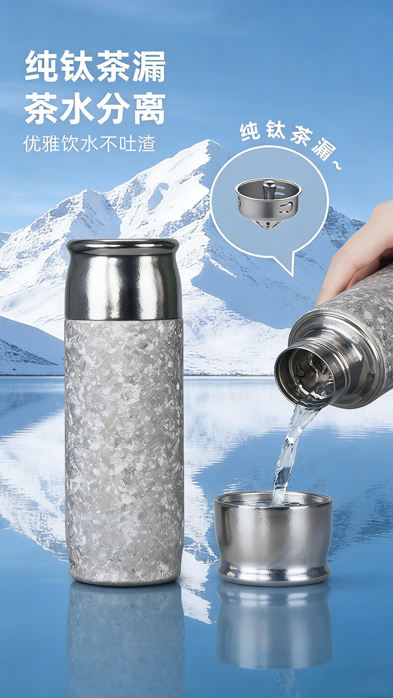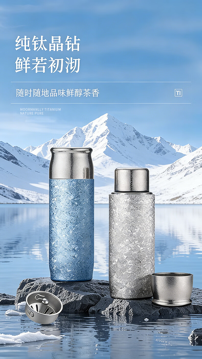 MOORMANLLY French pure titanium thermos tea cup office gift stewed tea titanium cup birthday gift for men and women Valentine's Day Glacier Blue丨410ML pure titanium inside and outside gift box gift bag