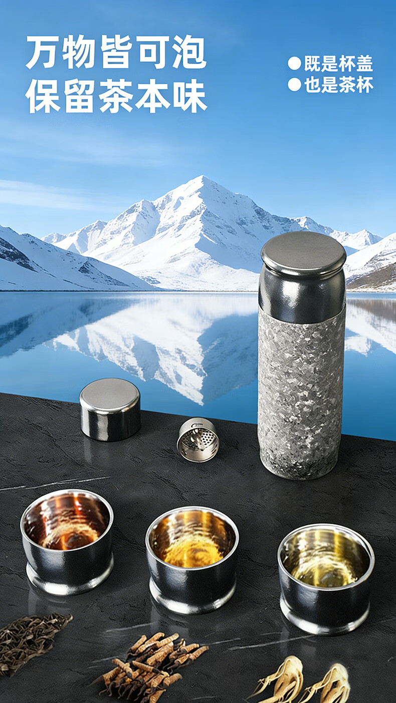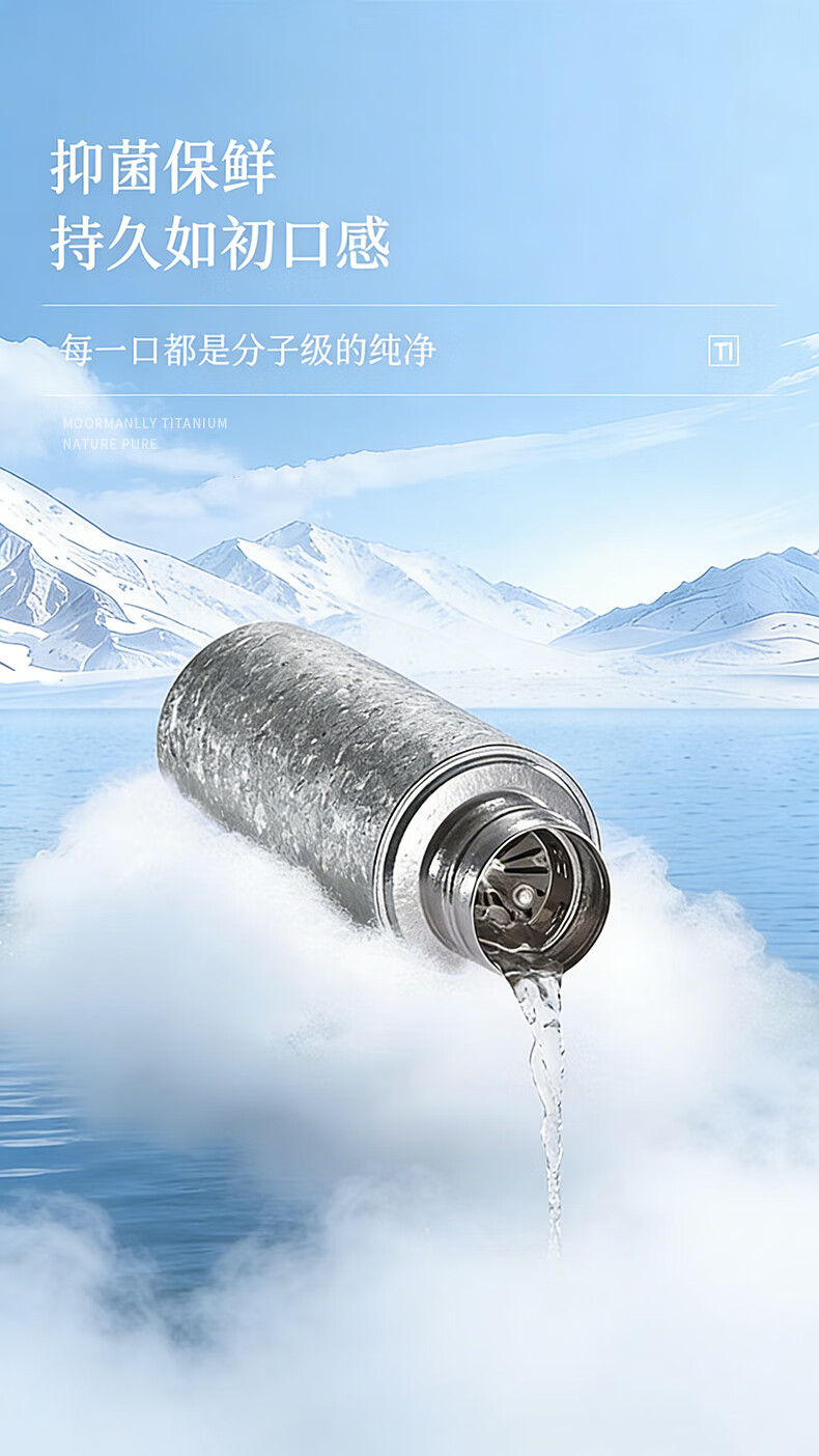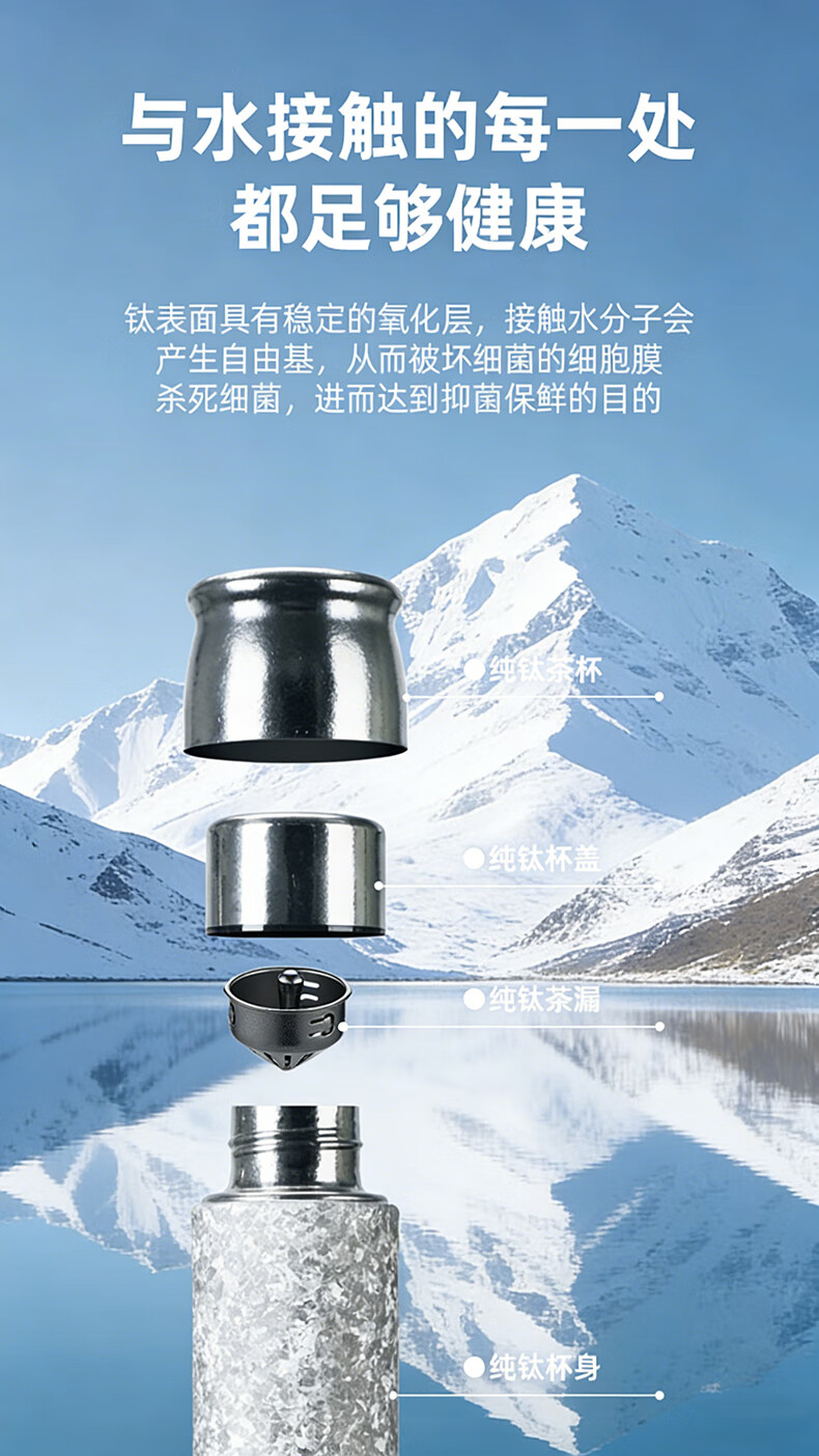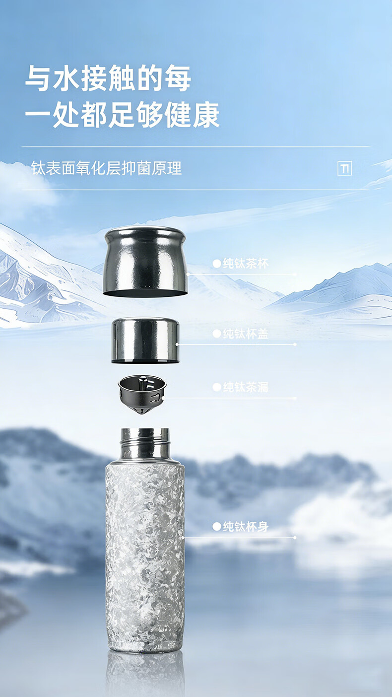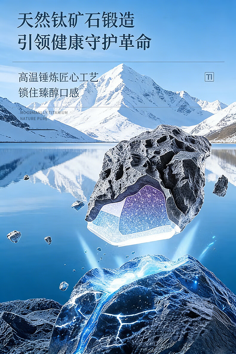 MOORMANLLY French pure titanium thermos tea cup office gift stewed tea titanium cup birthday gift for men and women Valentine's Day Glacier Blue丨410ML pure titanium inside and outside gift box gift bag