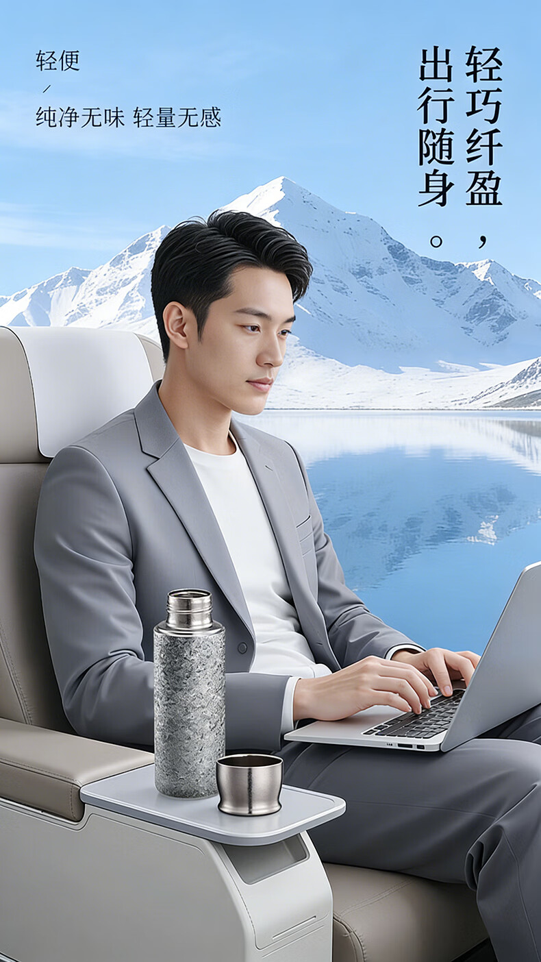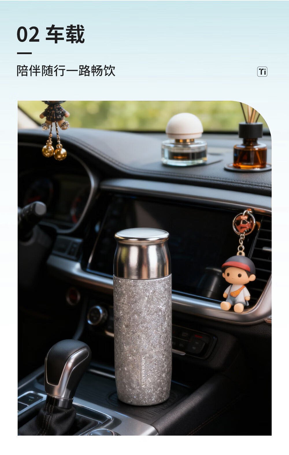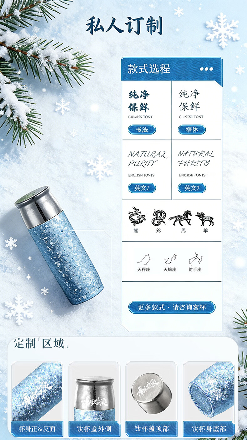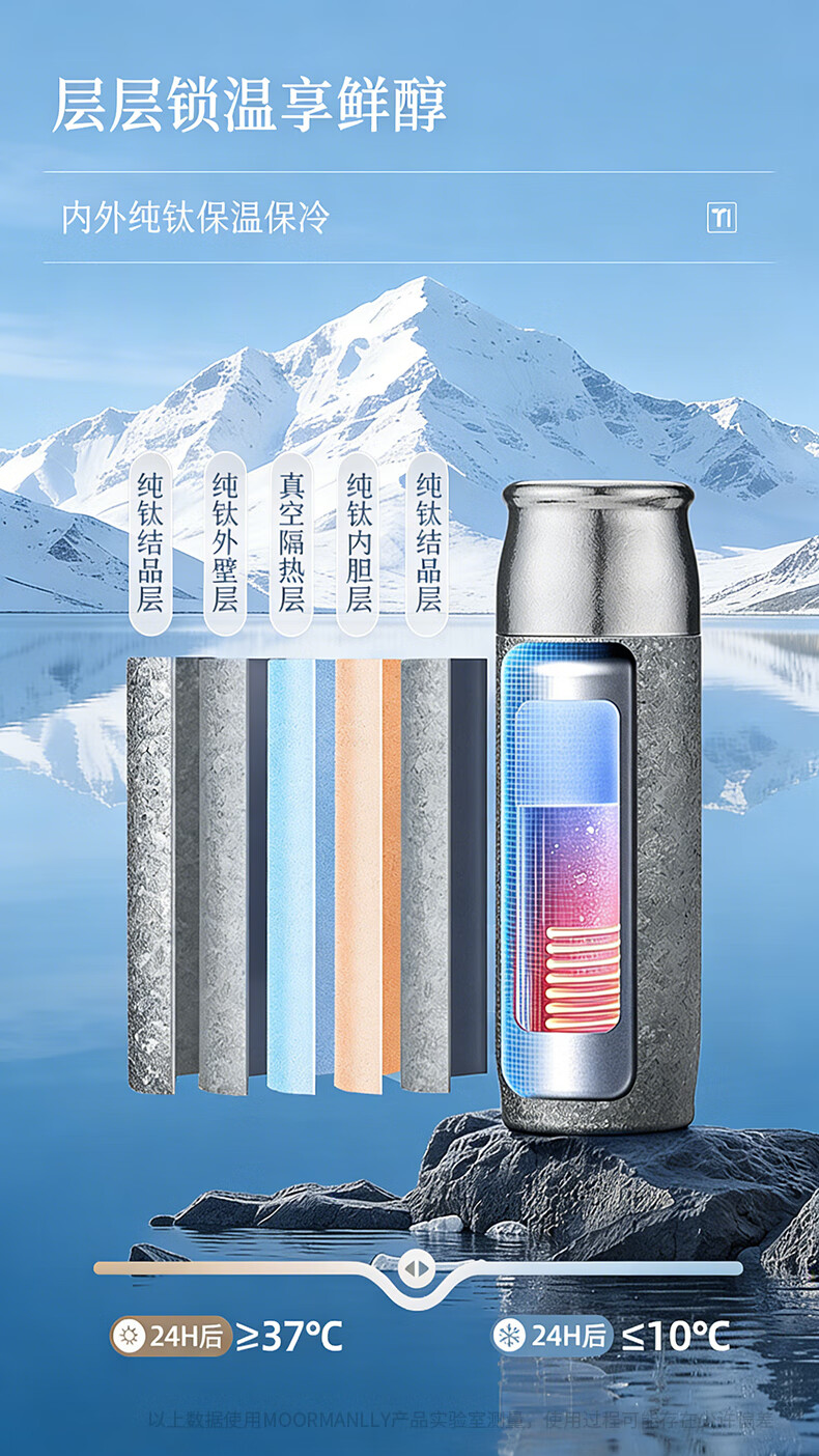 MOORMANLLY French pure titanium thermos tea cup office gift stewed tea titanium cup birthday gift for men and women Valentine's Day Glacier Blue丨410ML pure titanium inside and outside gift box gift bag
