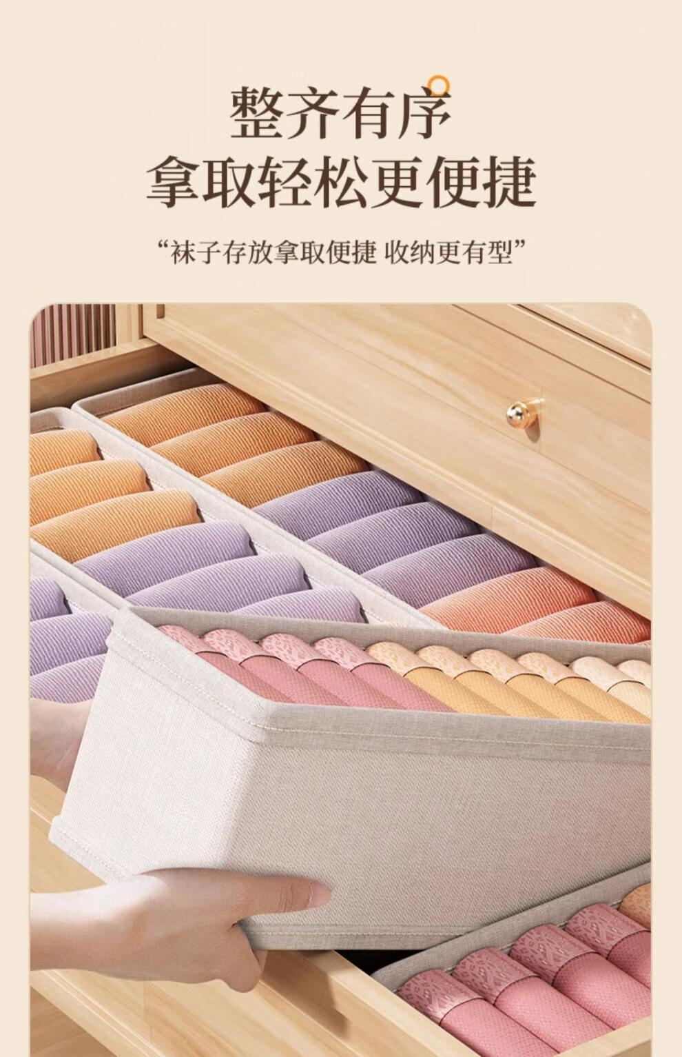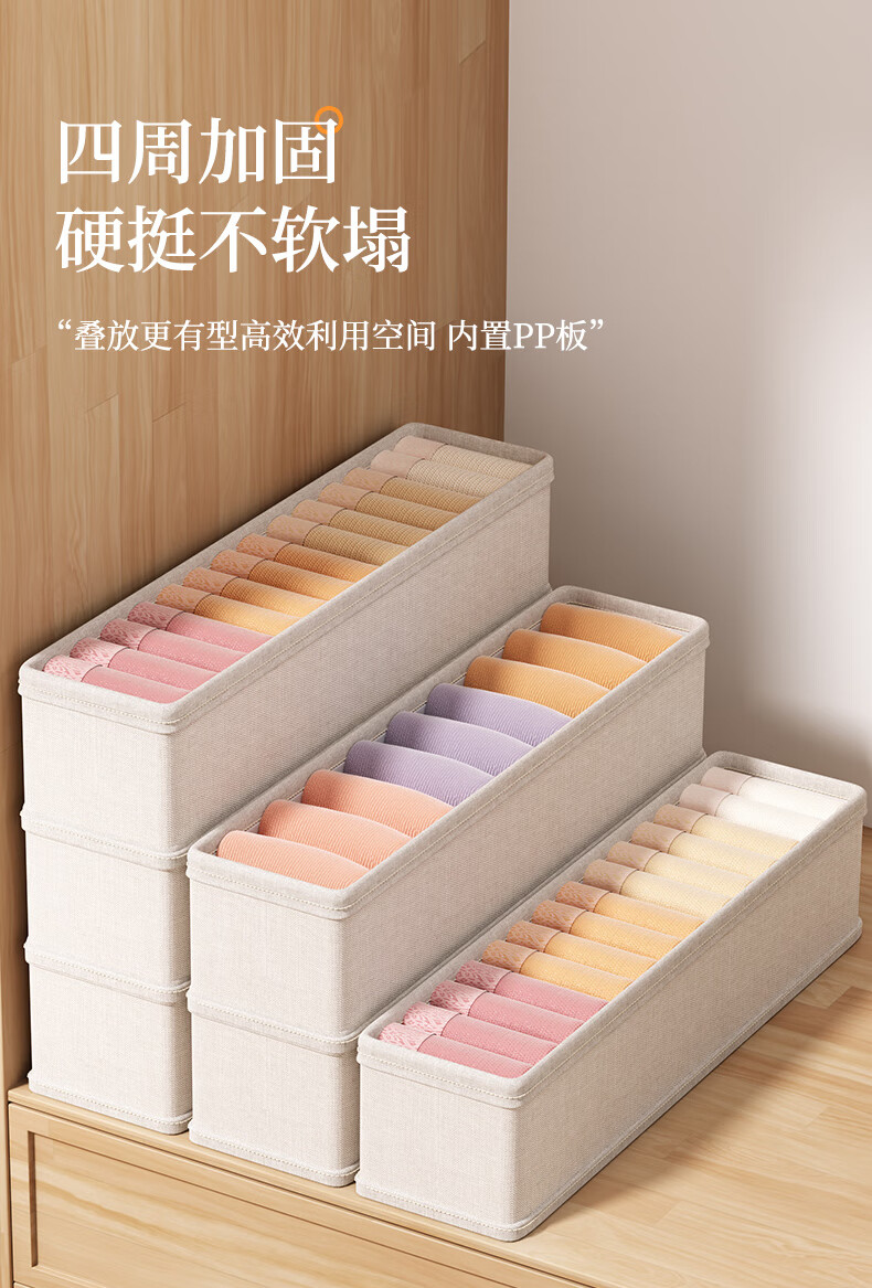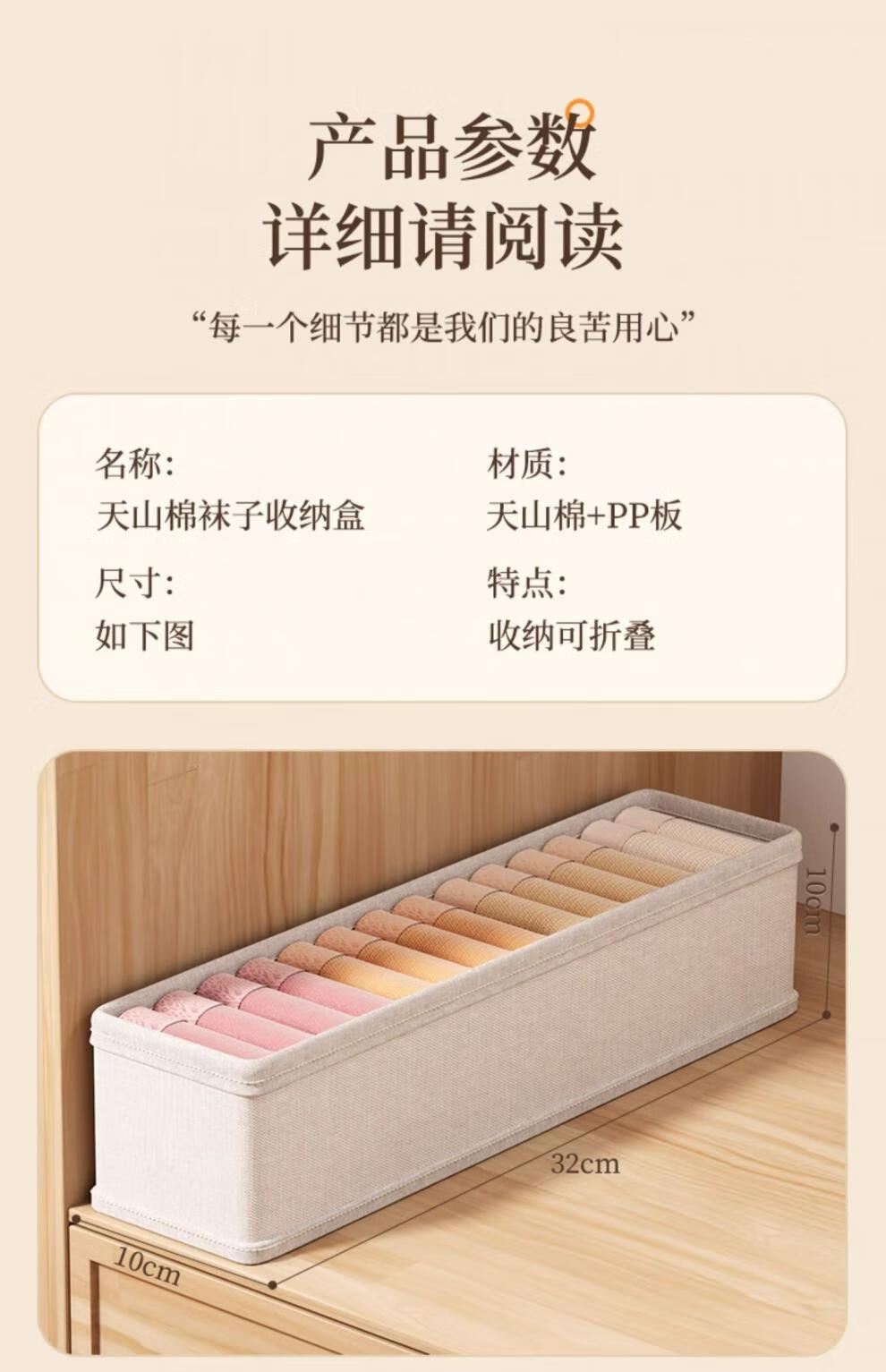Lilang Cotton and Linen Sock Storage Box Underwear Organizer Drawer Fabric Separator Clothing Artifact 1 Pack - Beige No Grid Selected Tianshan Cotton/Built-in PP Board