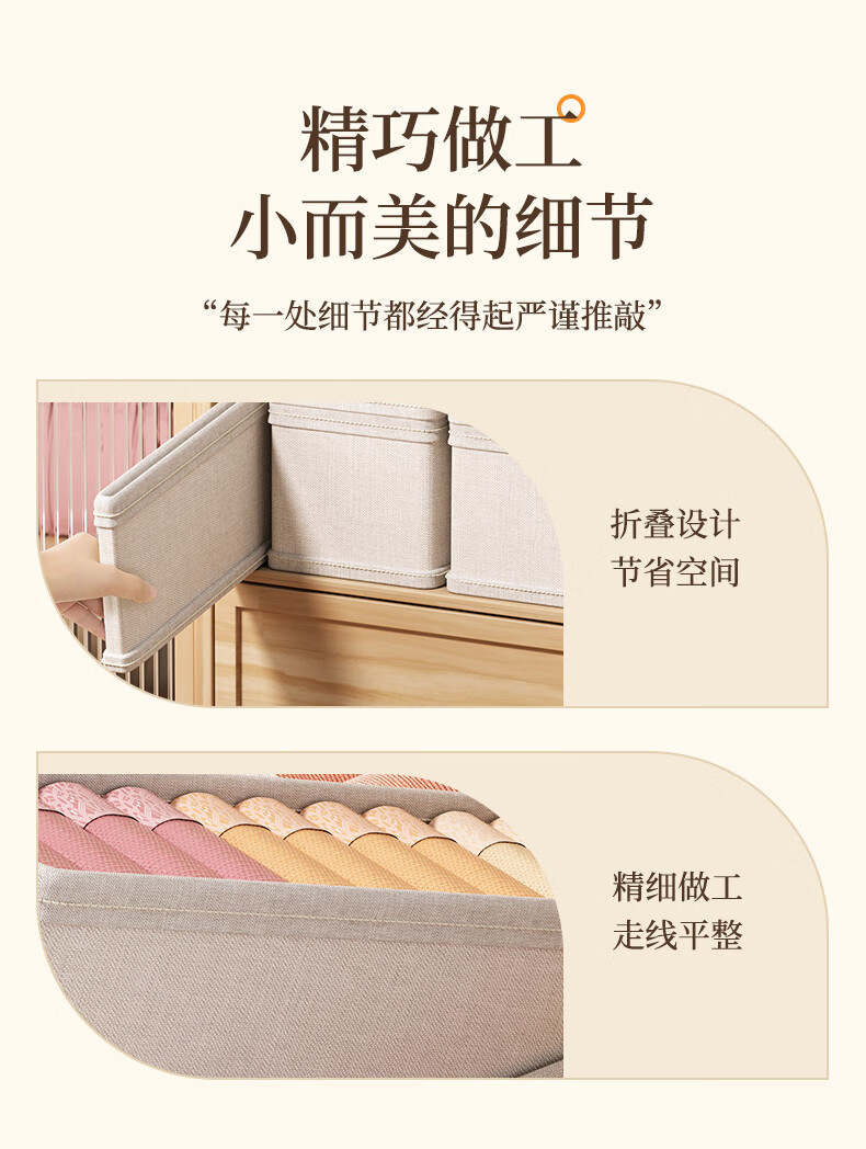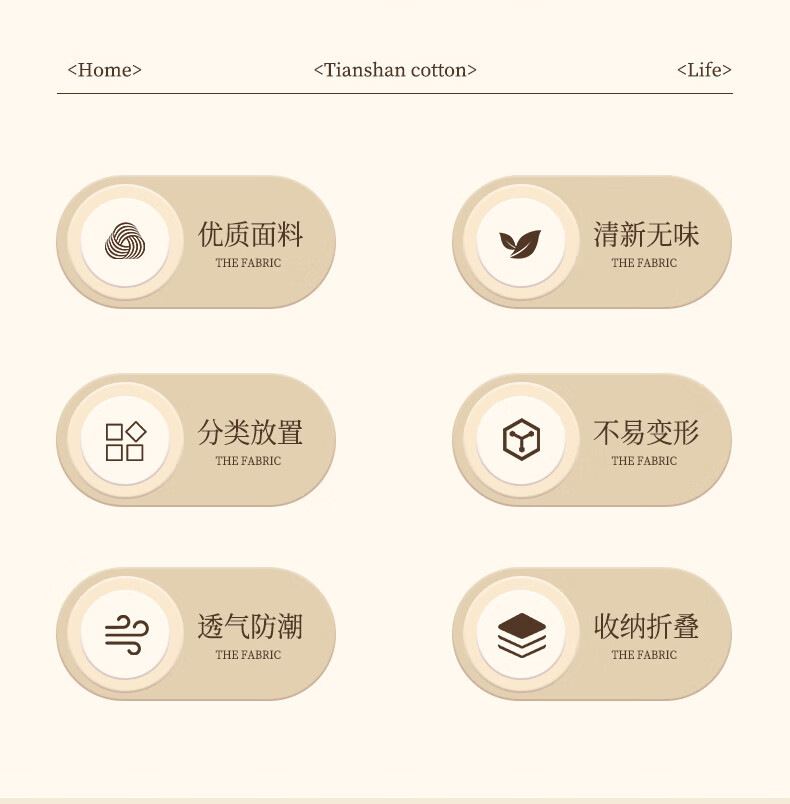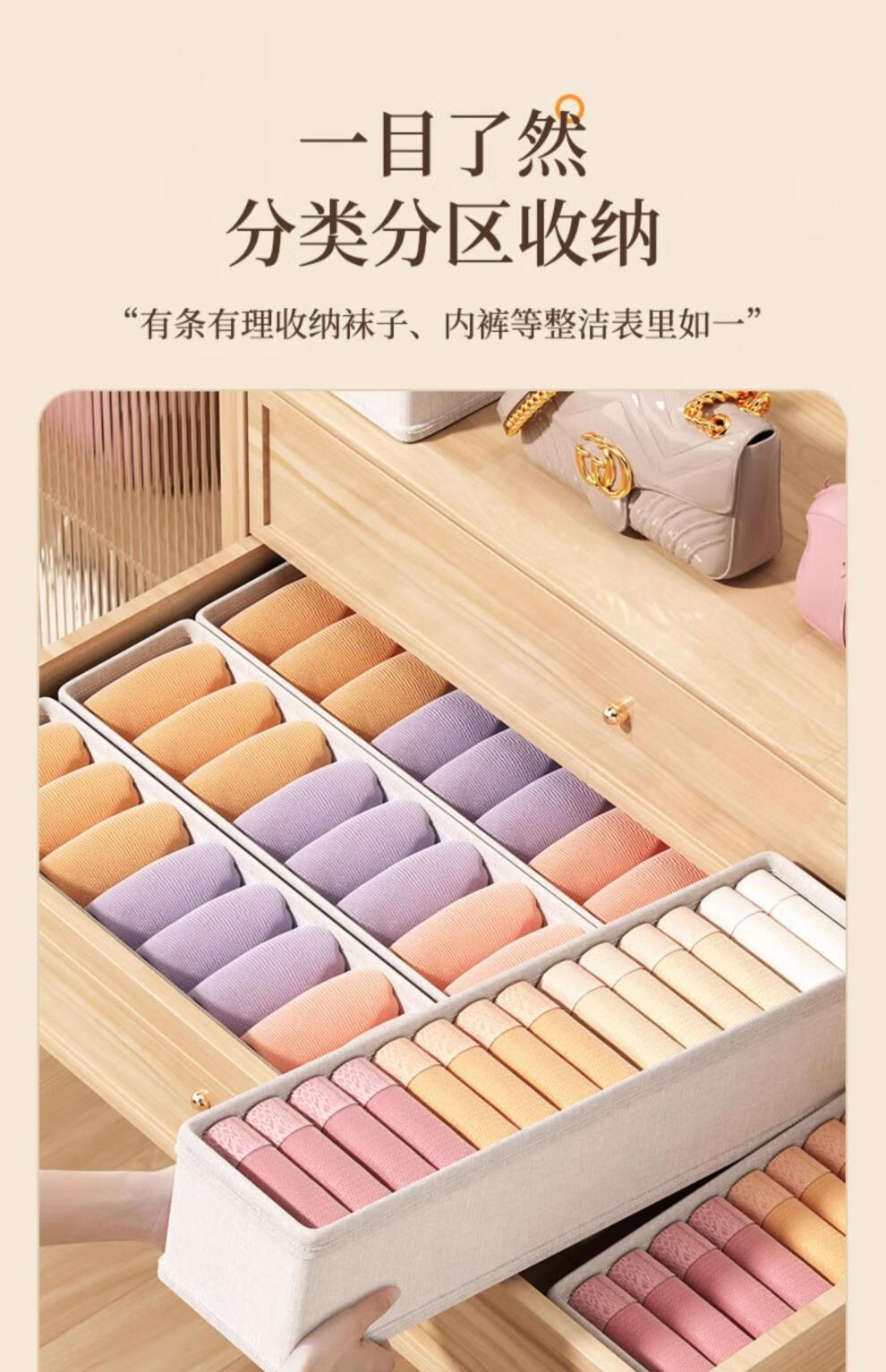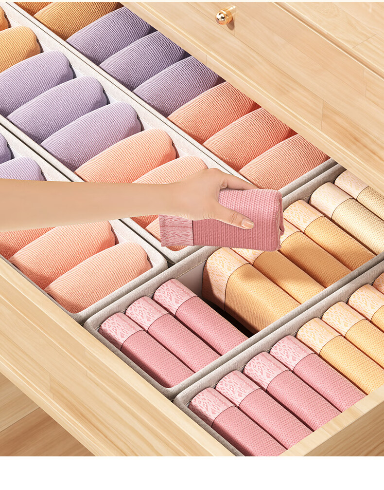 Lilang Cotton and Linen Sock Storage Box Underwear Organizer Drawer Fabric Separator Clothing Artifact 1 Pack - Beige No Grid Selected Tianshan Cotton/Built-in PP Board
