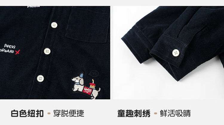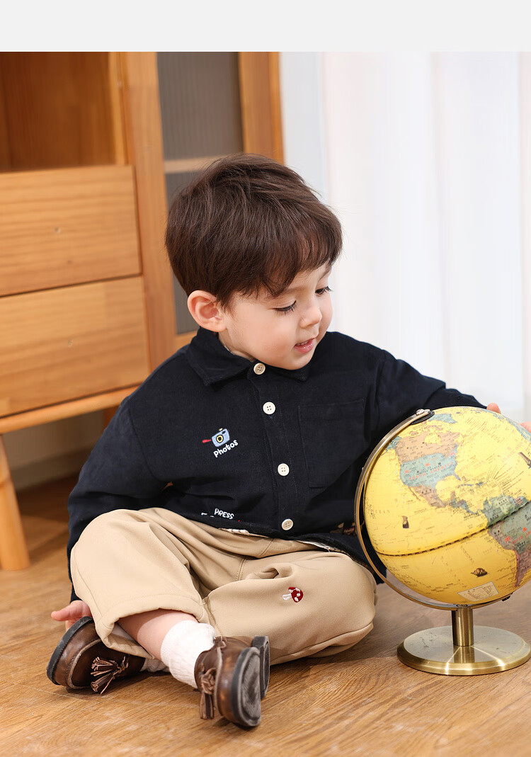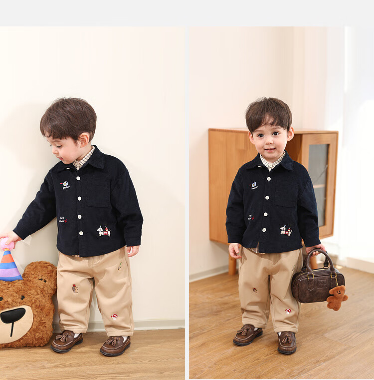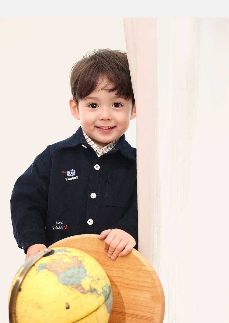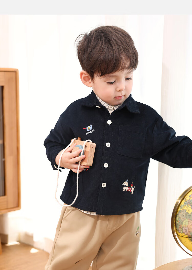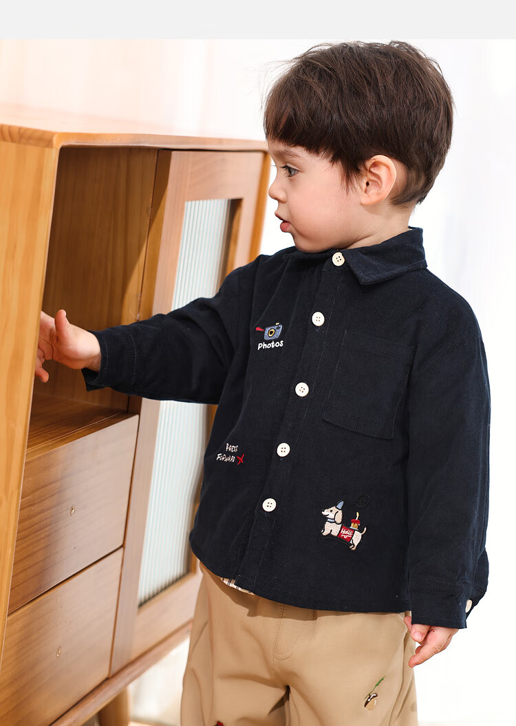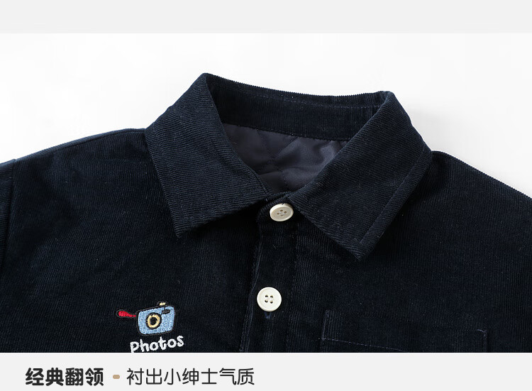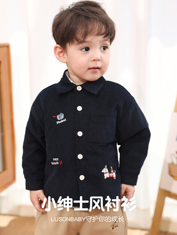 LUSON Little O Dad Baby Boy Baby Jacket Boys Autumn and Winter 2025 New Baby Embroidered Lapel Shirt Dark Sapphire Blue 73
