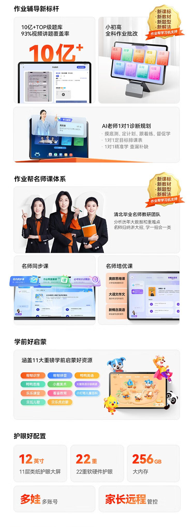 Homework Helper Learning Machine T60/P60/P60Ultra/XE Student Tablet Super Teacher Asks Anytime AI Accompanying Learning Primary School to High School Homework Tutoring Textbook Synchronous Learning P50 6+256G