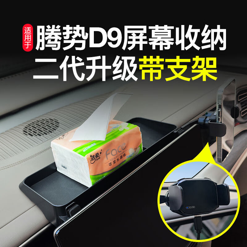 Litian is suitable for Denza D9 central control screen rear storage box storage box modified interior special automotive accessories D9 solid plastic flocking screen storage box with bracket arm + gravity mobile phone holder Denza Denza D9 2022-2025