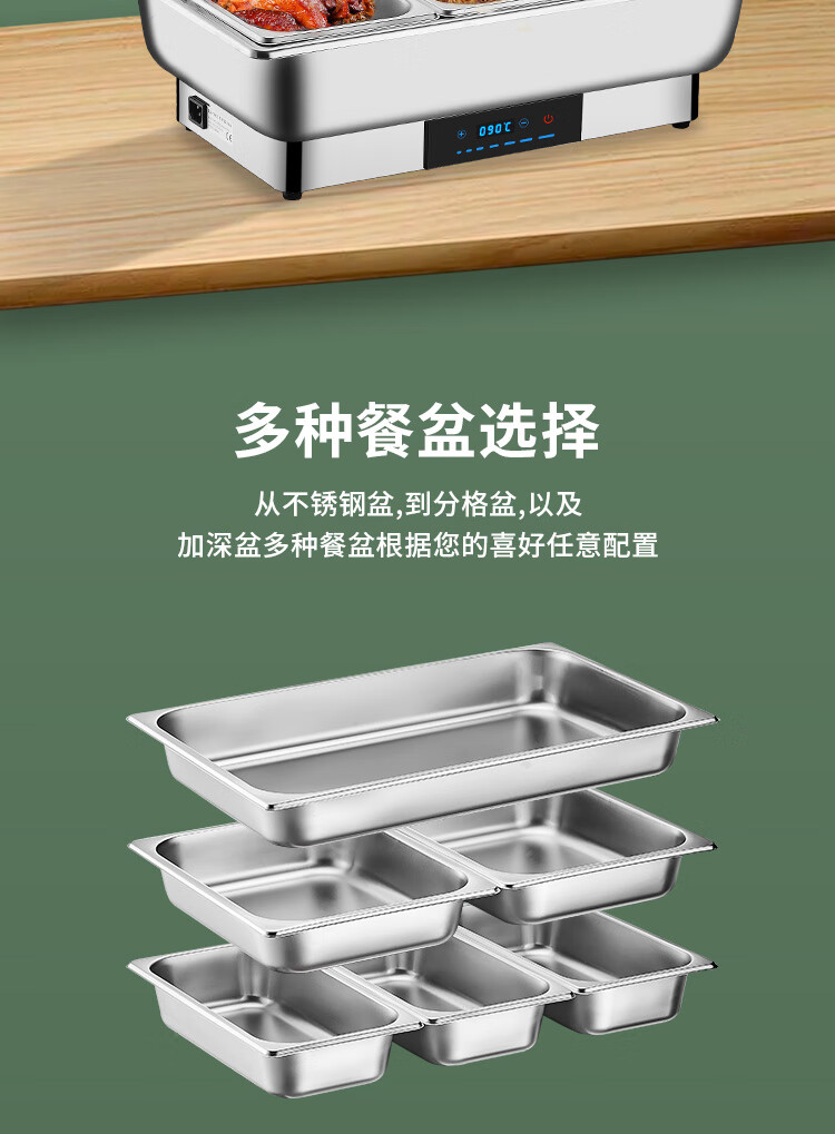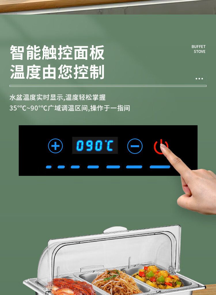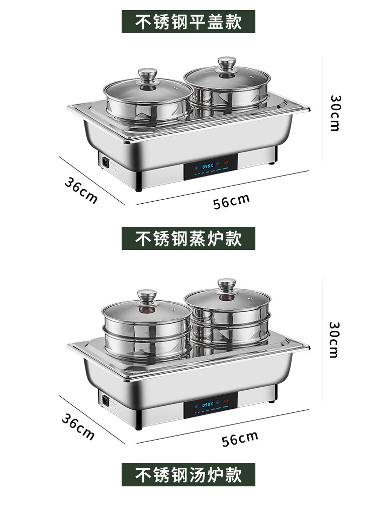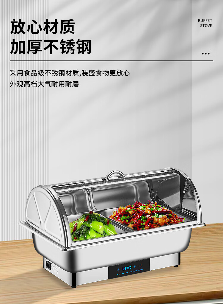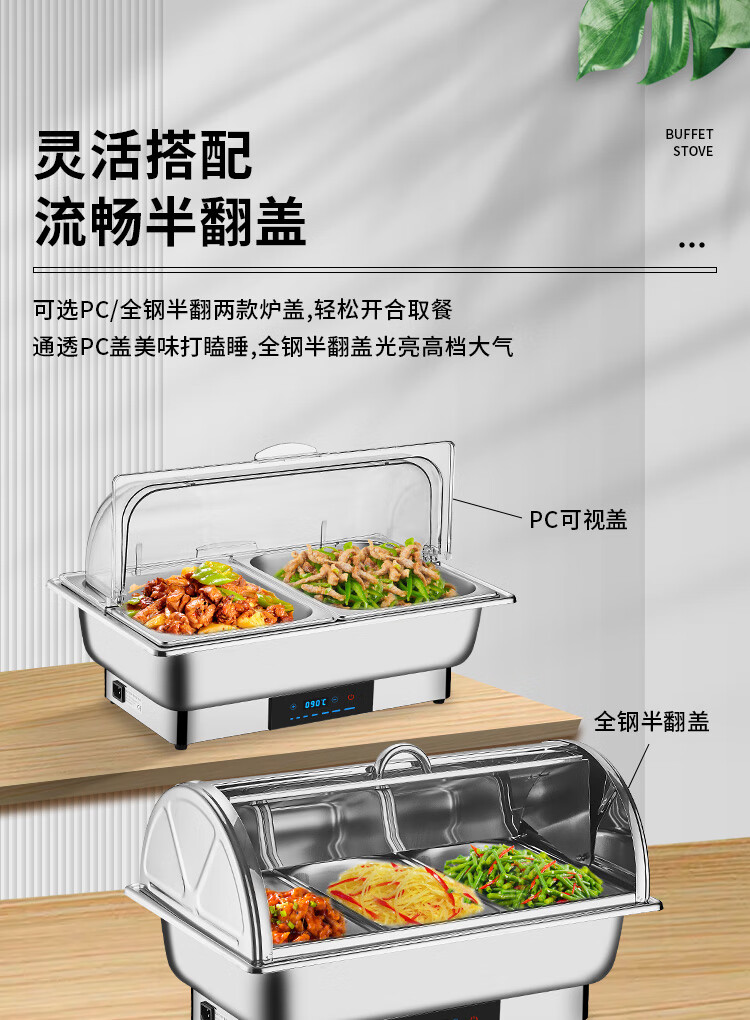 Stainless steel electric heating buffet stove transparent flip cover Buffy stove hotel canteen breakfast stove insulation pot tableware independent cover double compartment 9 liters / smart touch to prevent dry burning