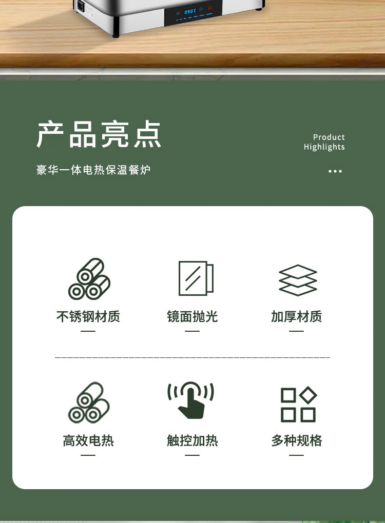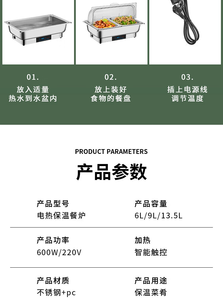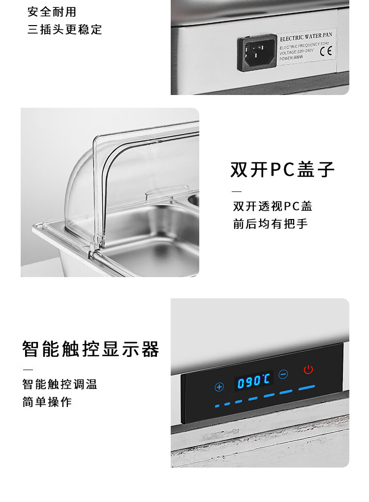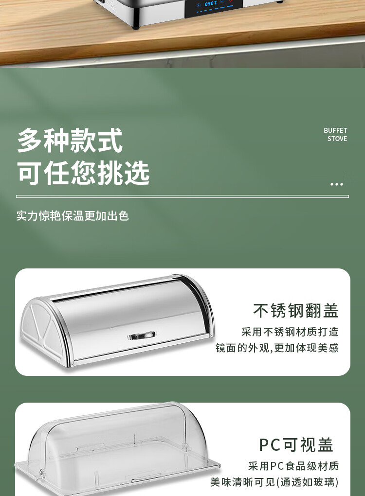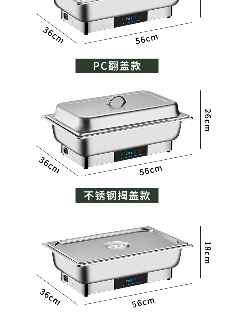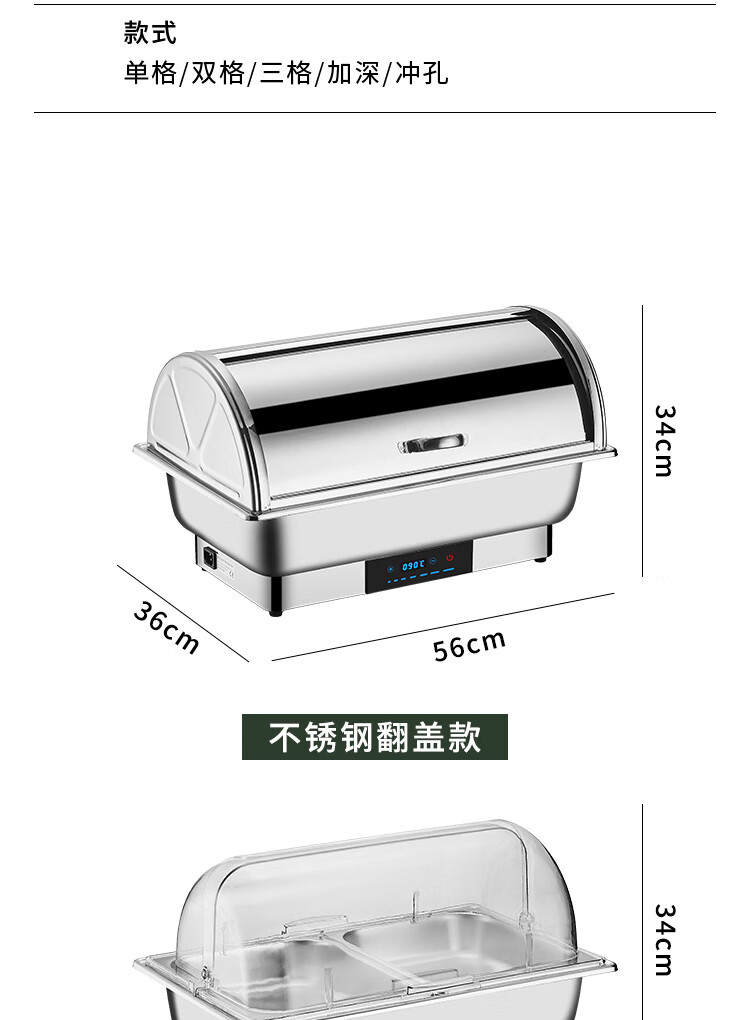 Stainless steel electric heating buffet stove transparent flip cover Buffy stove hotel canteen breakfast stove insulation pot tableware independent cover double compartment 9 liters / smart touch to prevent dry burning