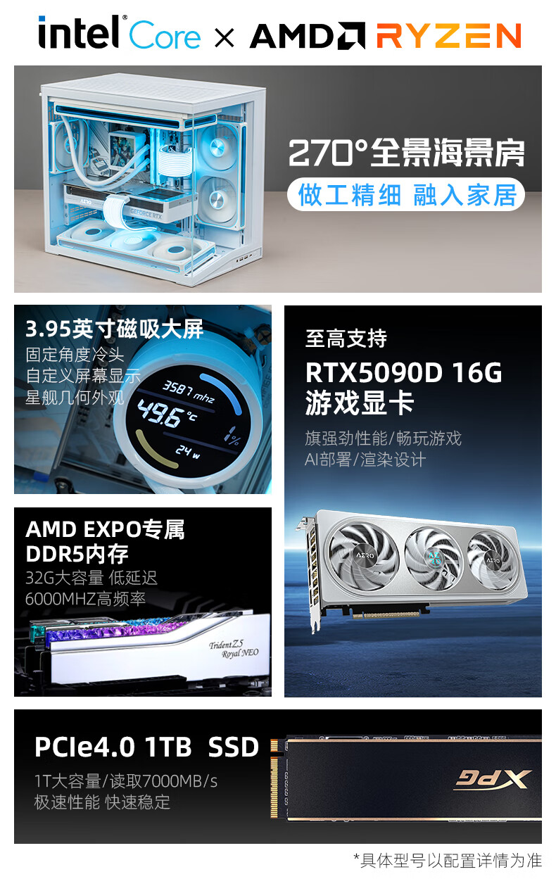Gigabyte Computer Premium Host-intel Core U7 265KF/RTX5070Ti/5080 Snow Eagle/5090Dv2 Bauhaus O11D MINI V2 Sea View Room Desktop Computer MX丨Three U7 265KF丨5070Ti Snow Eagle
