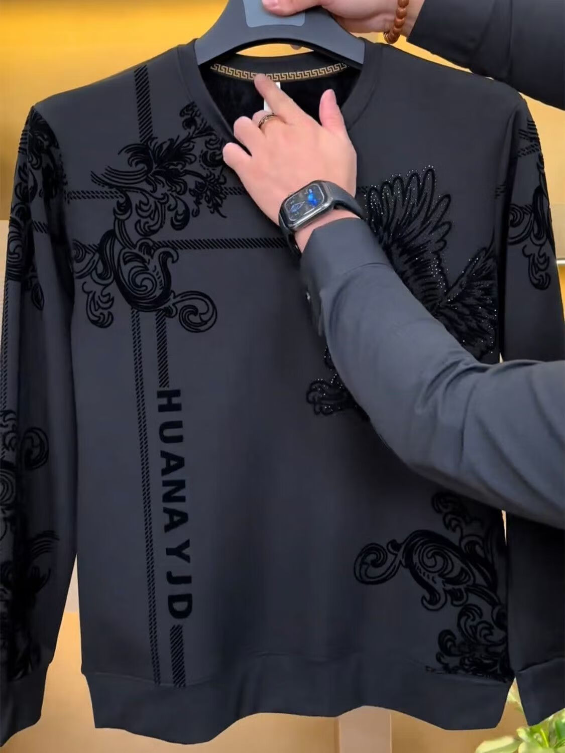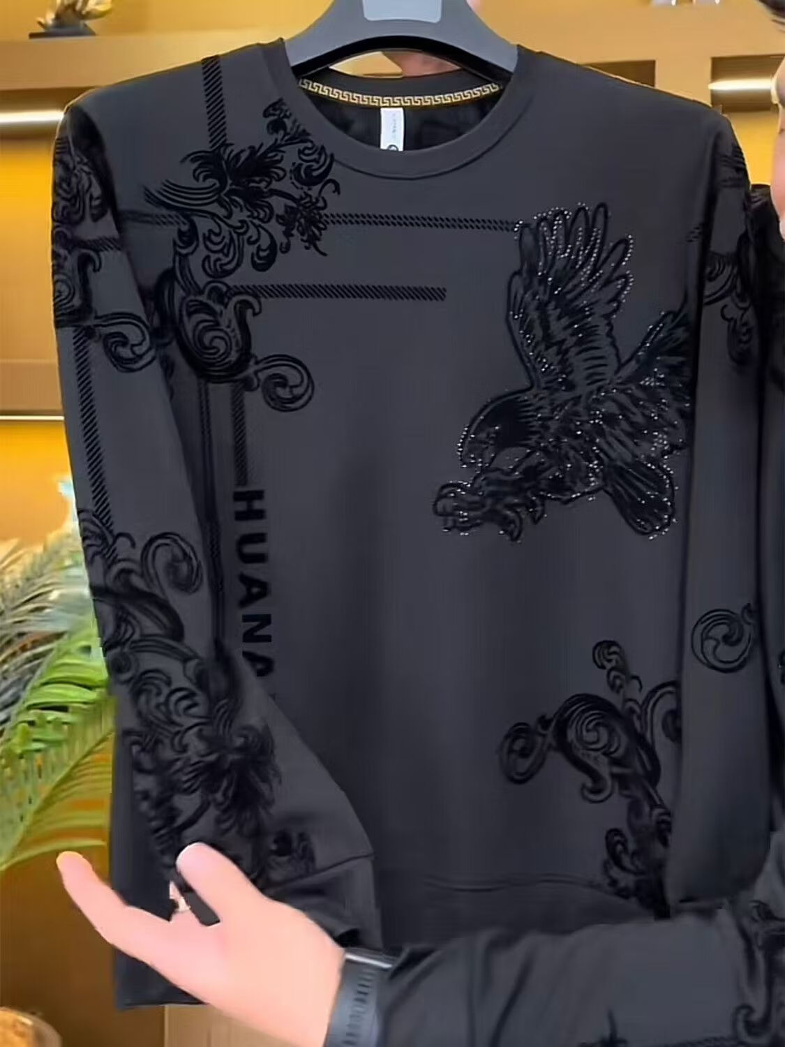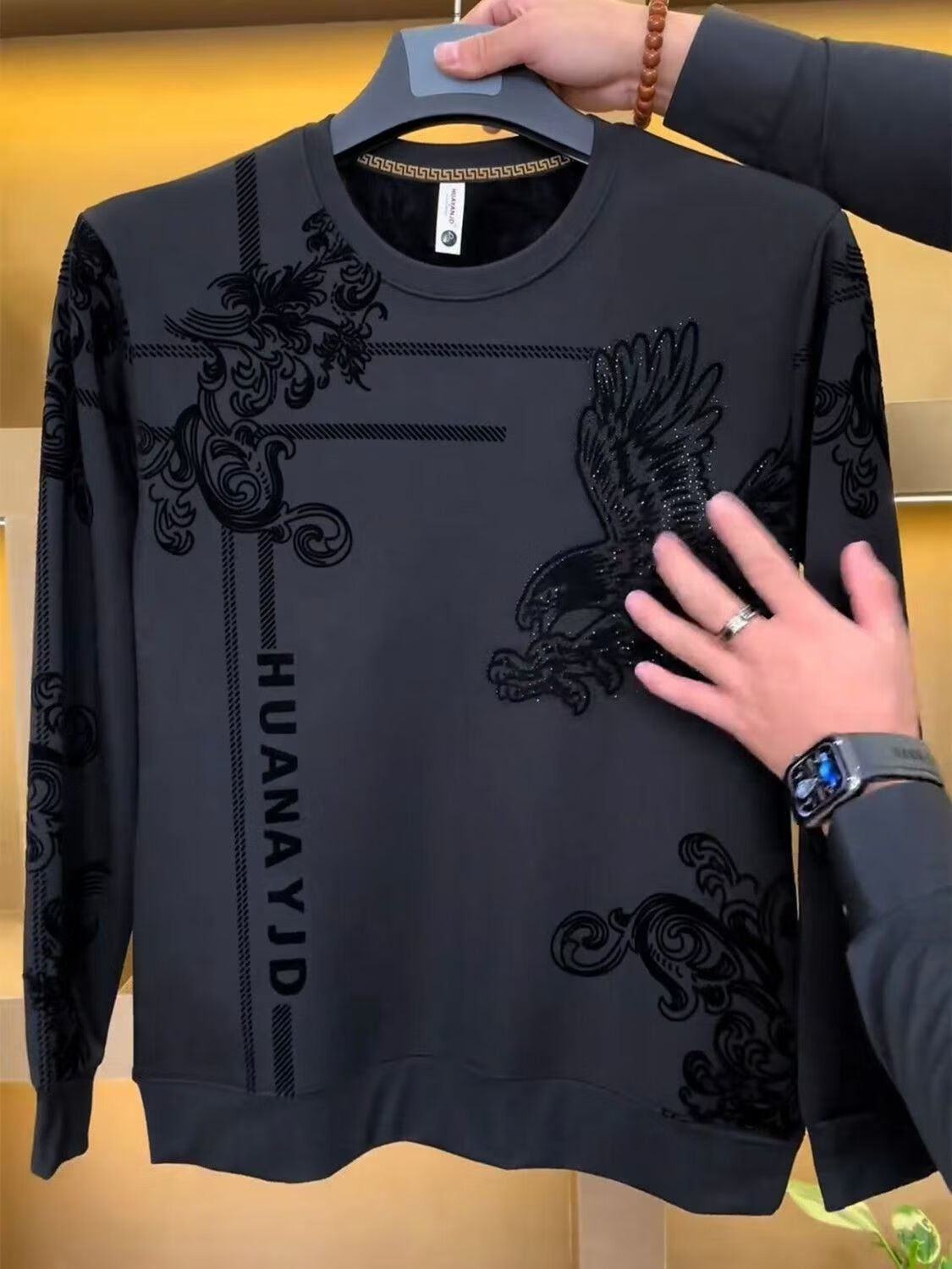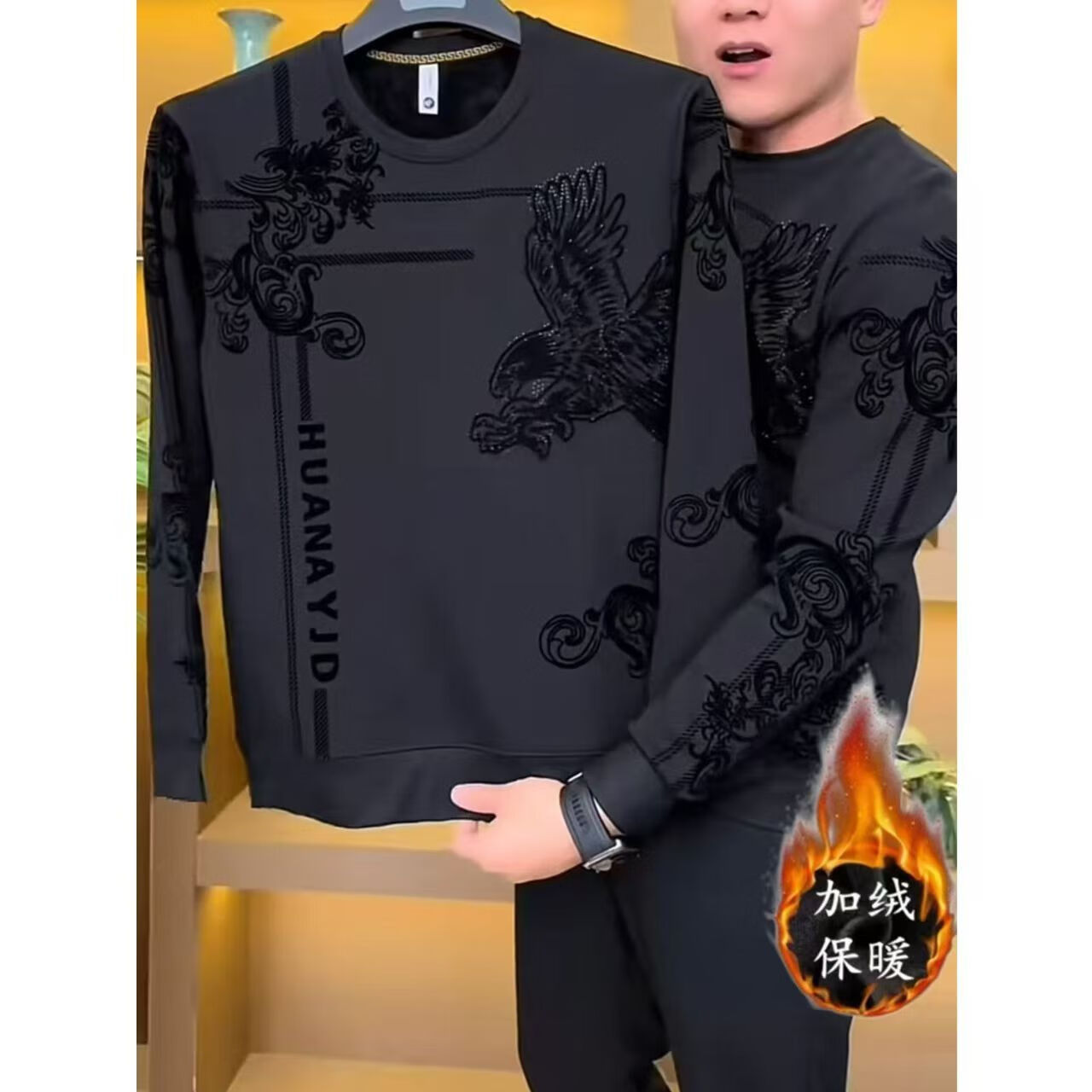 Brand direct sales new autumn and winter Flying Eagle thickened velvet men's all-match warm sweatshirt men's dk4 black velvet thickened L (recommended 115-135Jin Jin equals 0.5 kg)