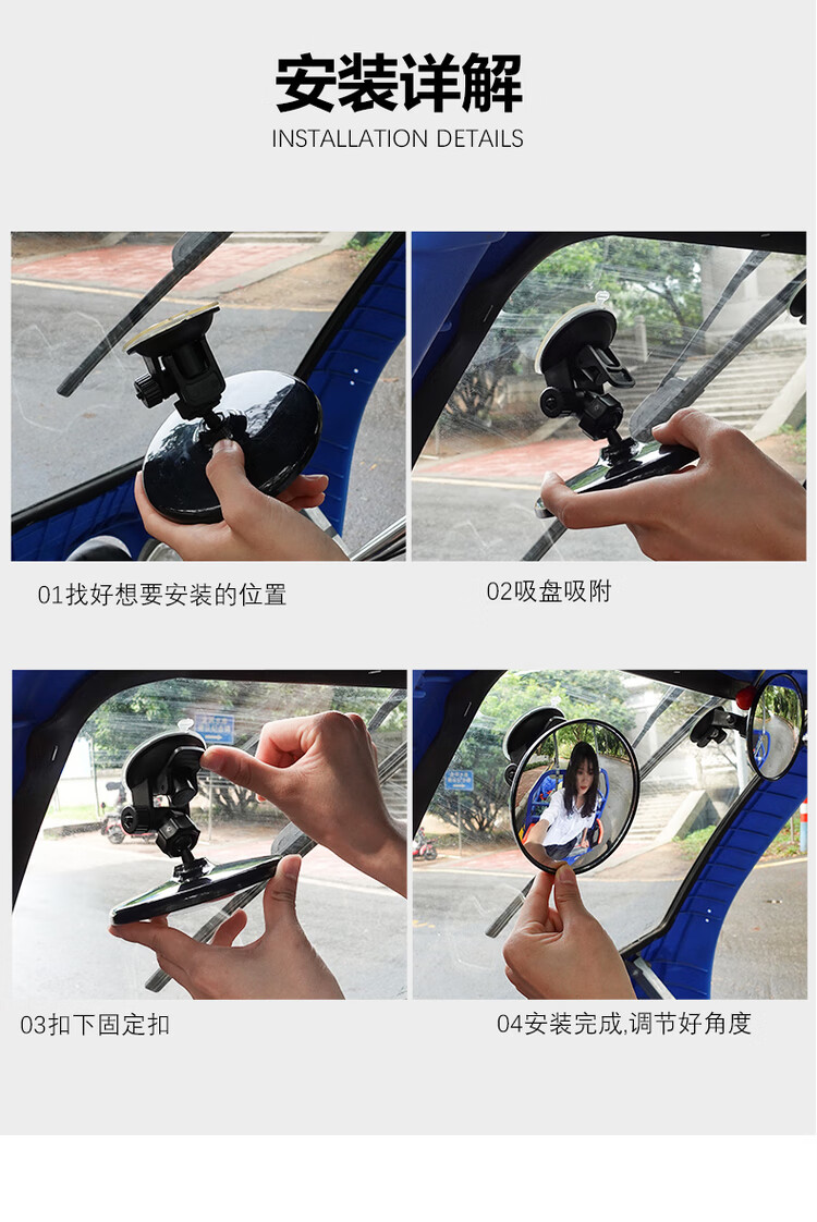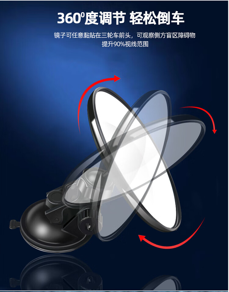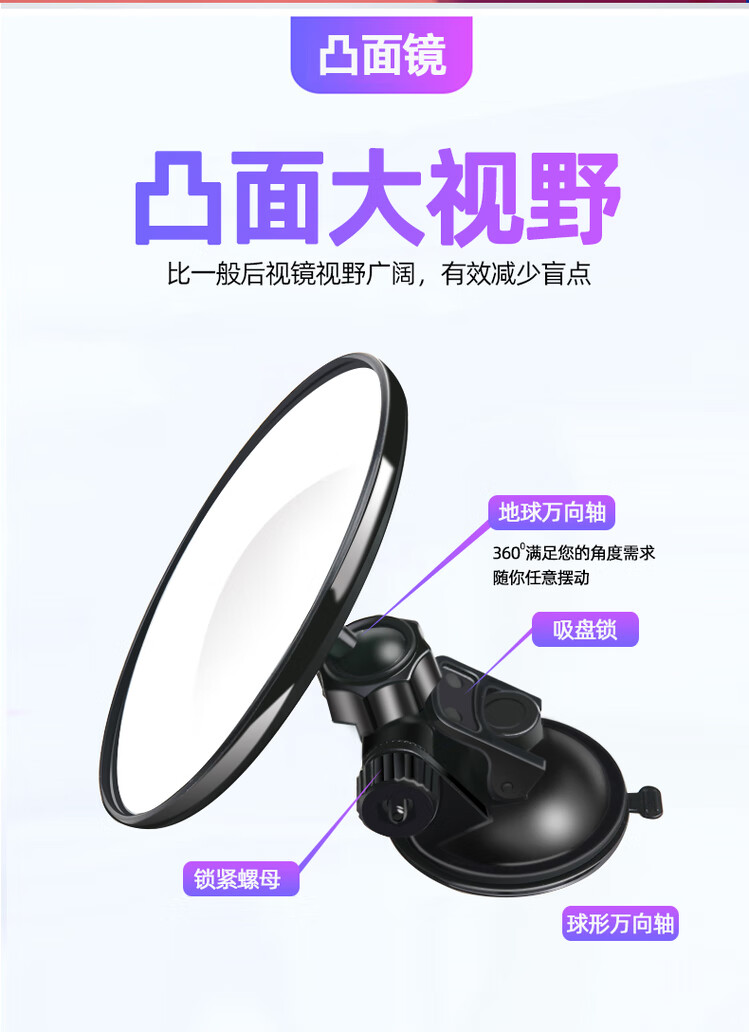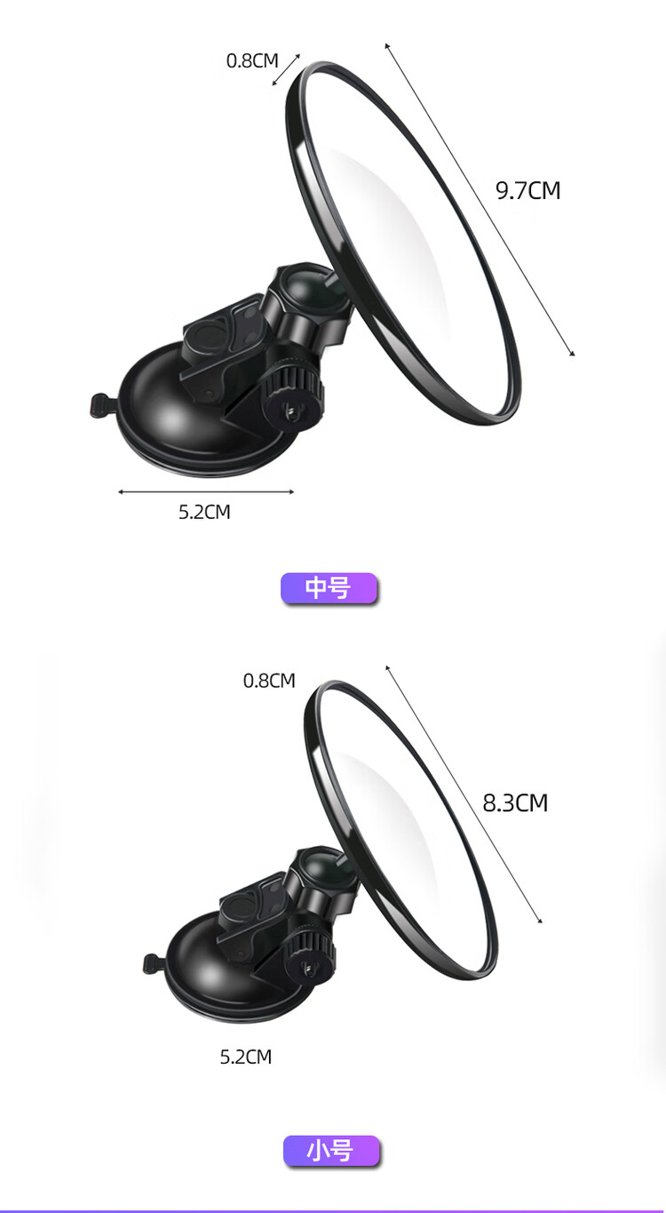 Hushe suction cup type in-car baby observation car rear rearview mirror wide-angle tricycle reversing mirror reflective auxiliary 11CM large suction cup single to enhance adsorption force