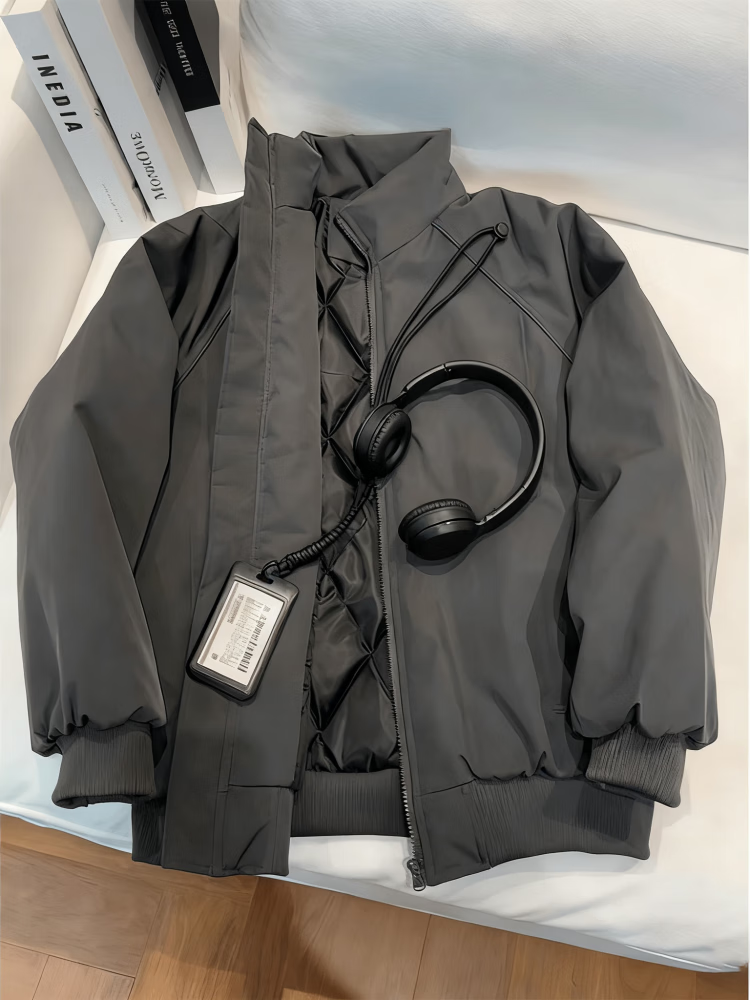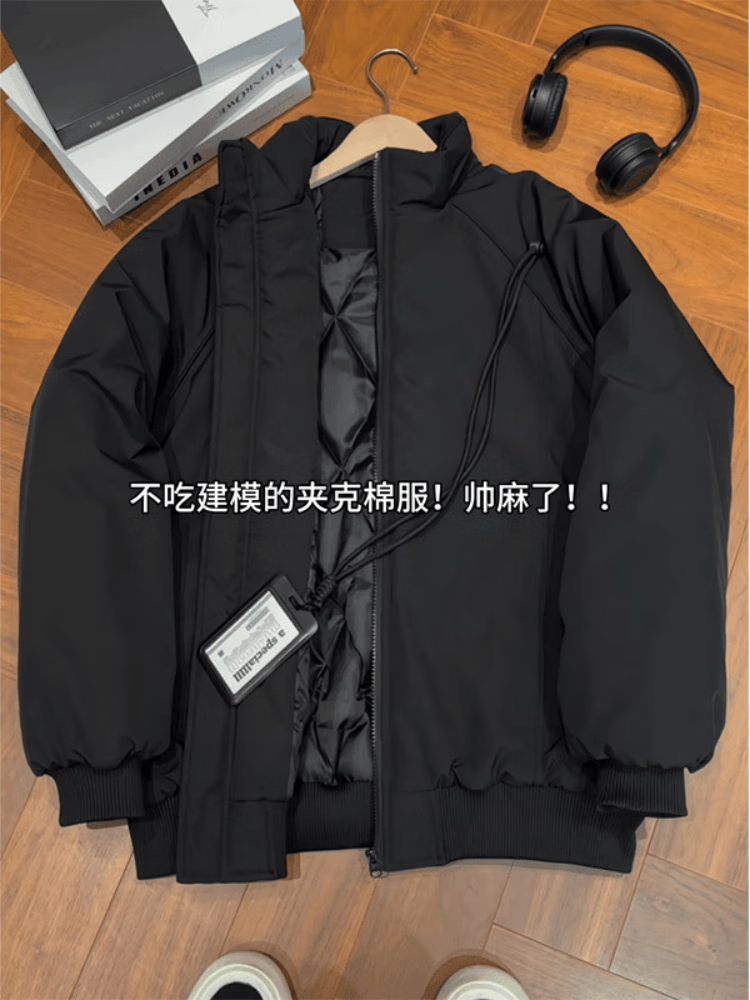 Katuchi American stand-collar three-proof jacket cotton-padded jacket men's winter short silhouette cotton-padded coat cleanfit warm and thickened jacket gray XL