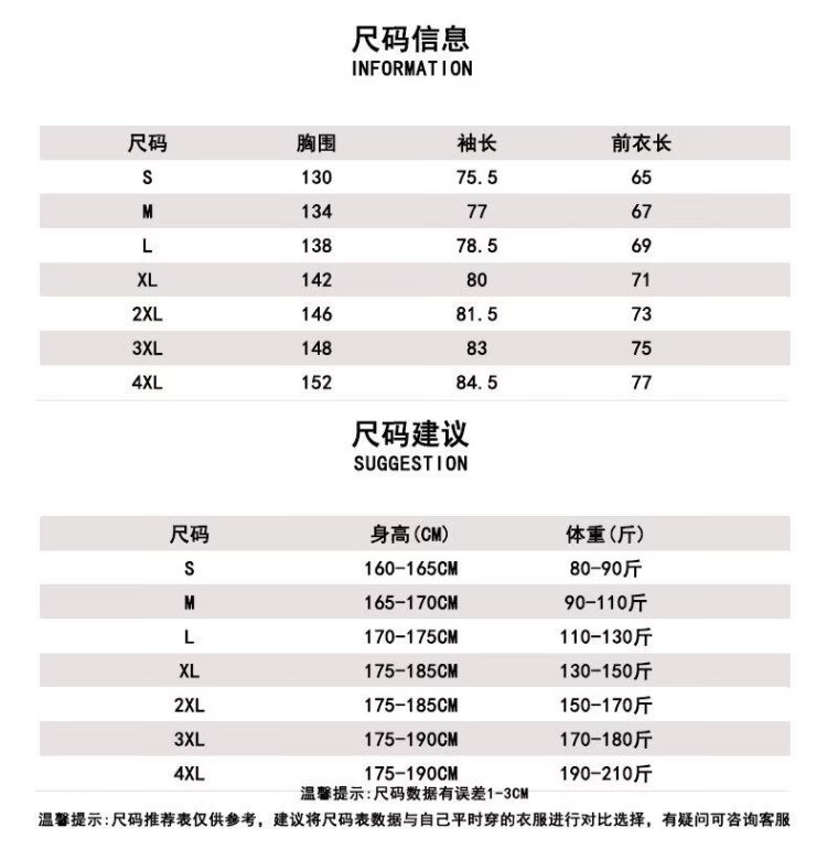 China (cm) 165 / 88-90 170 / 96-98 175 / 108-110 180 / 118-122 185 / 126-130