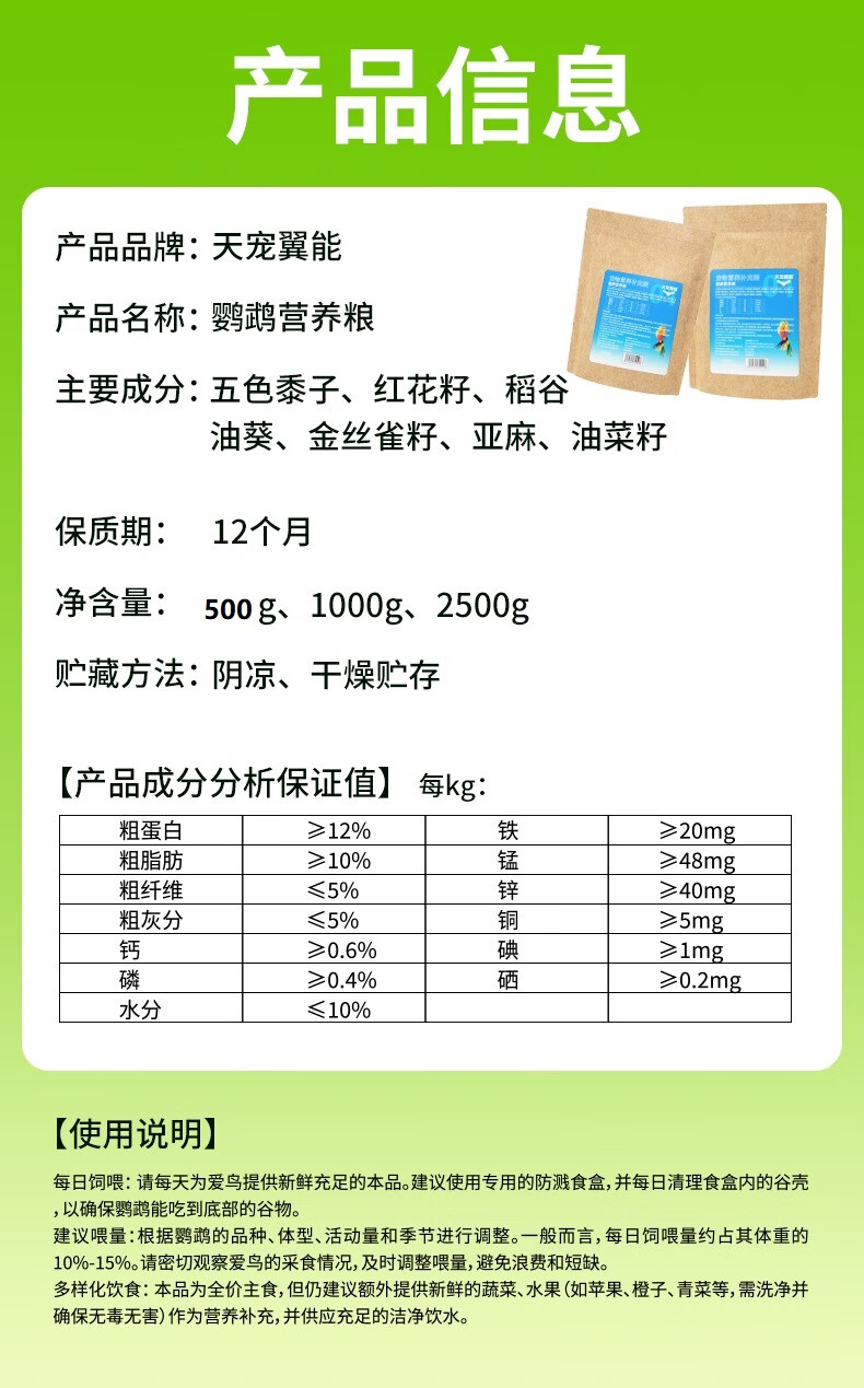 Tianchong Yineng boutique tiger skin peony and black phoenix feed (new food) small and medium-sized parrot bird food five-color millet mixed nutritional food parrot full price mixed nutritional food 1000g