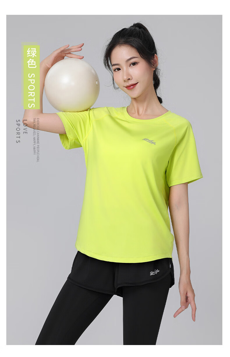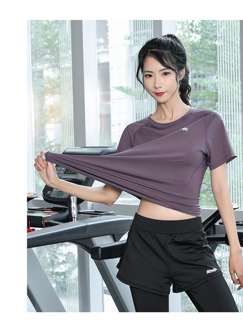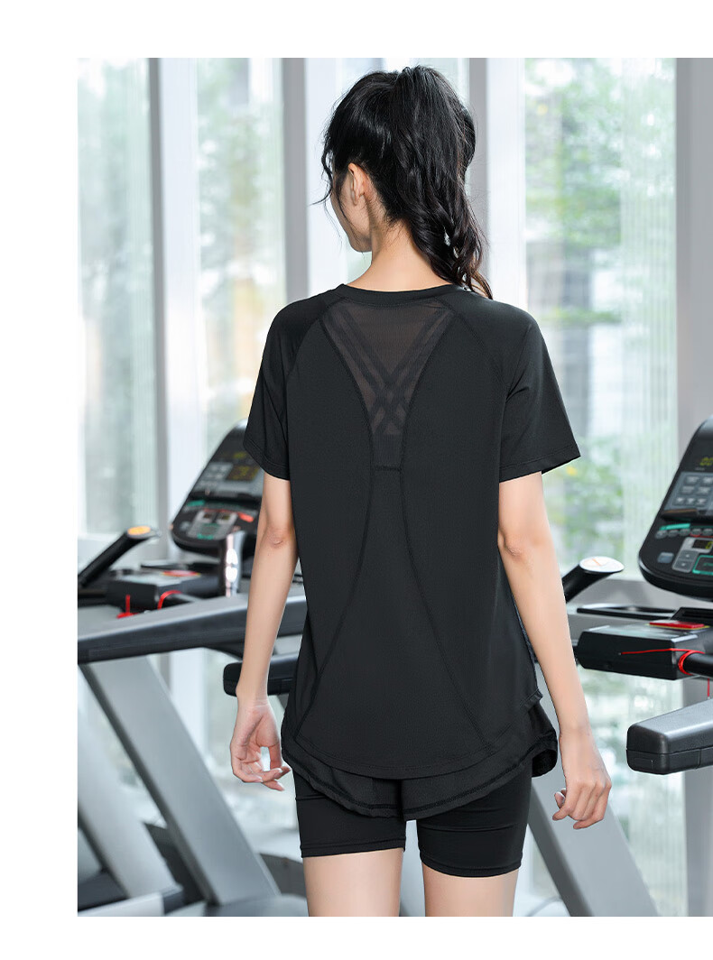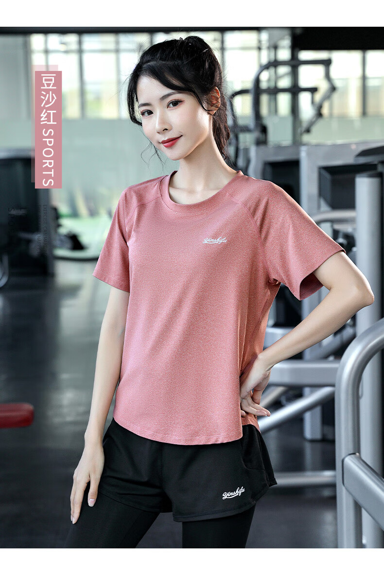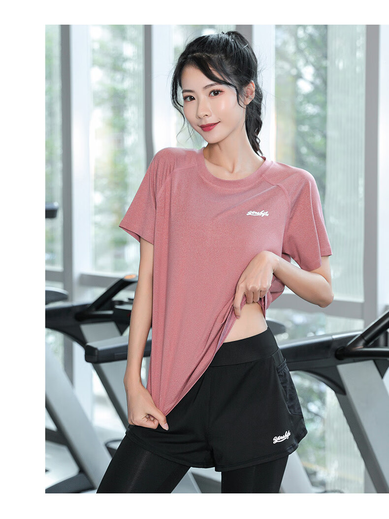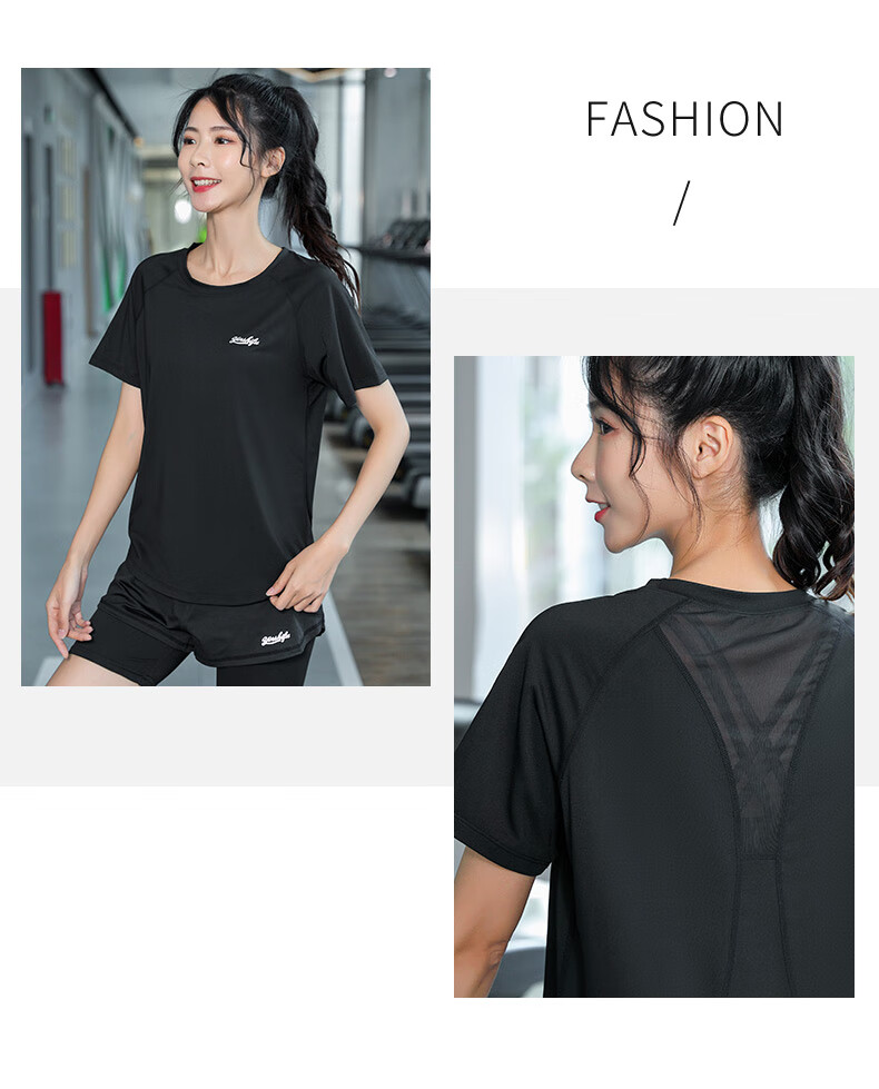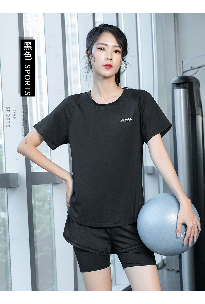 Large size quick-drying dry clothes for women loose running sports yoga tops fitness clothes Pilates training fat mm200 three-piece set black short sleeves + cropped pants + bra M (recommended 90-105 Jin Jin equals 0.5 kg)