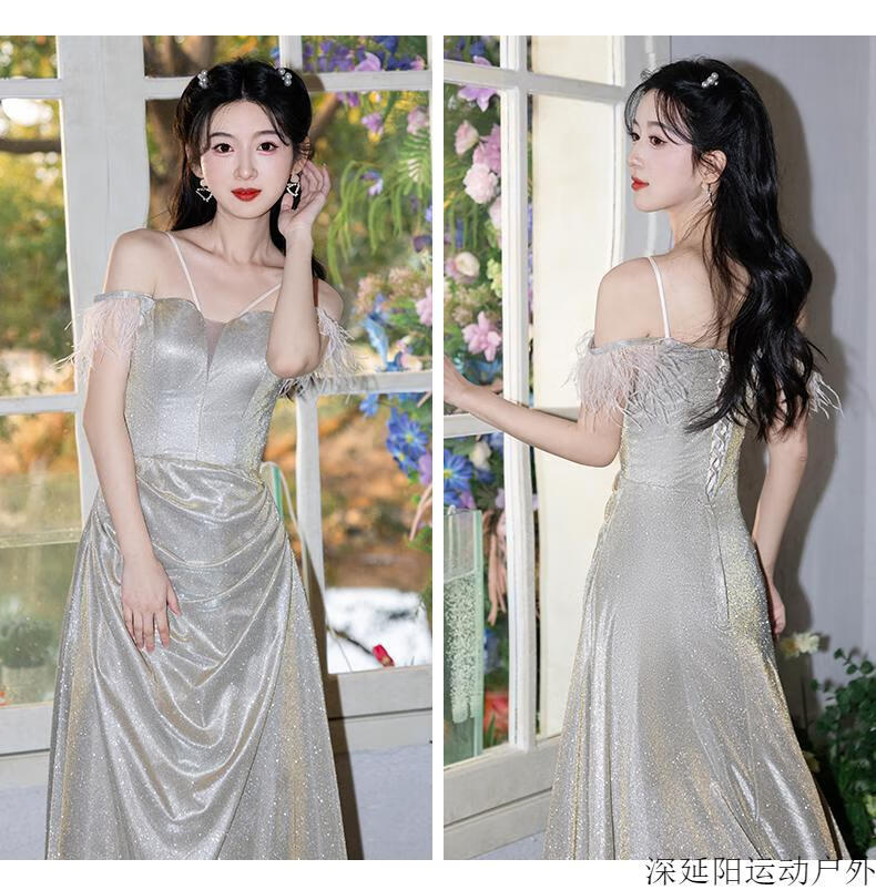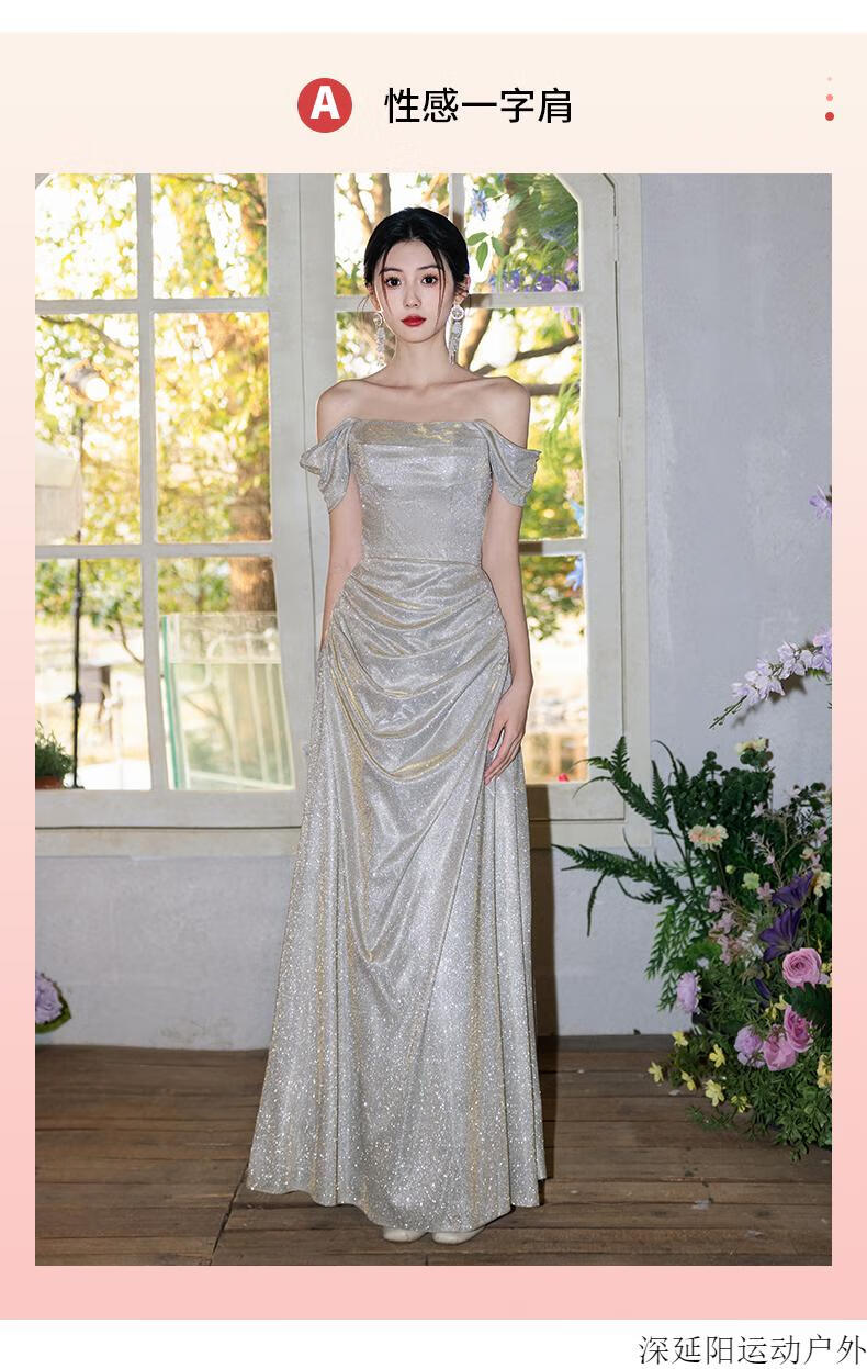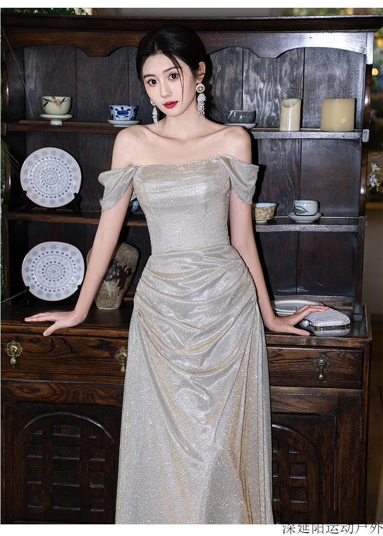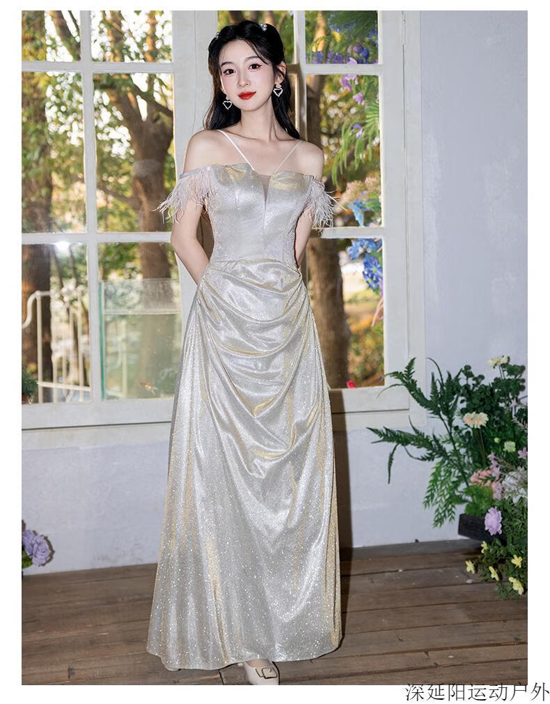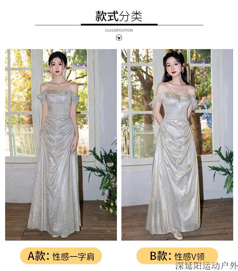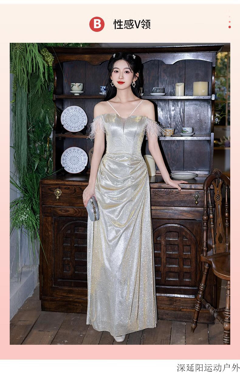 Chuangjingyi selected dress high-end light luxury niche evening dress high-end light luxury niche 2025 new style French engagement party evening champagne gold A style_135CM M