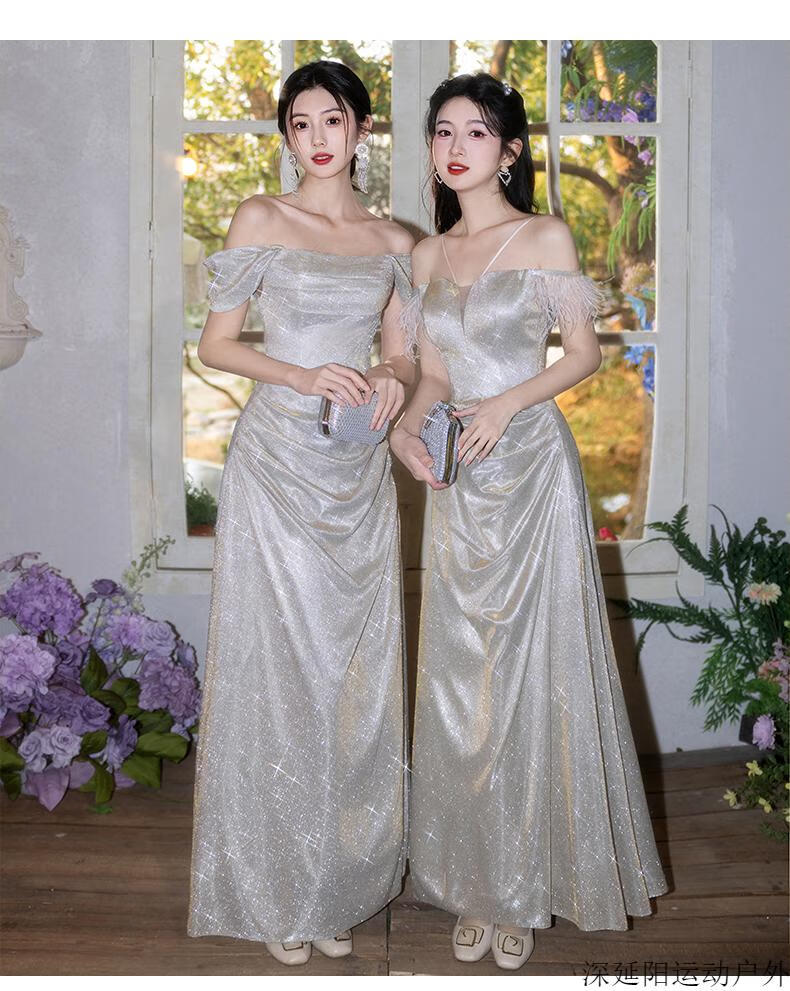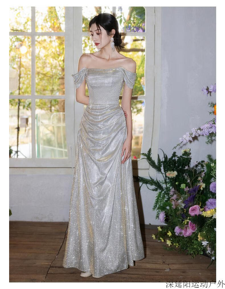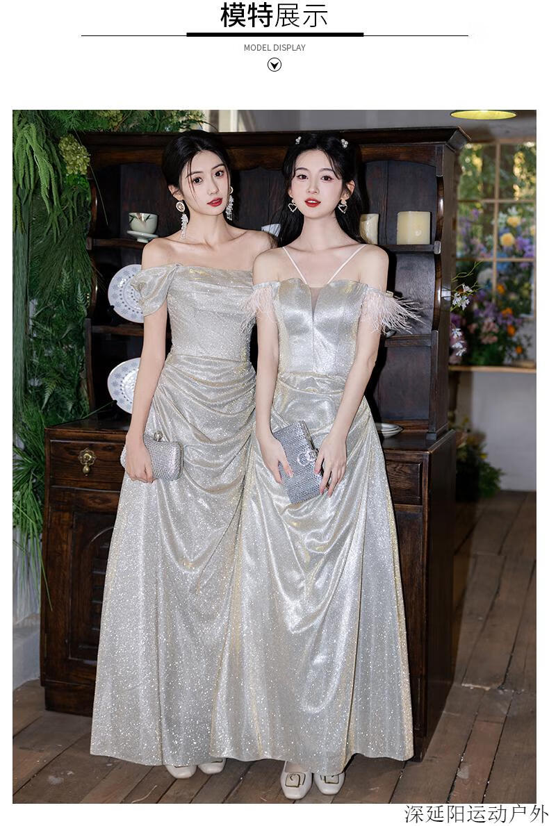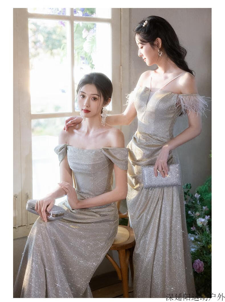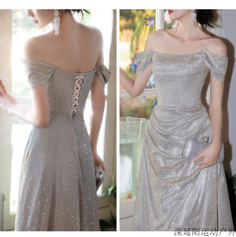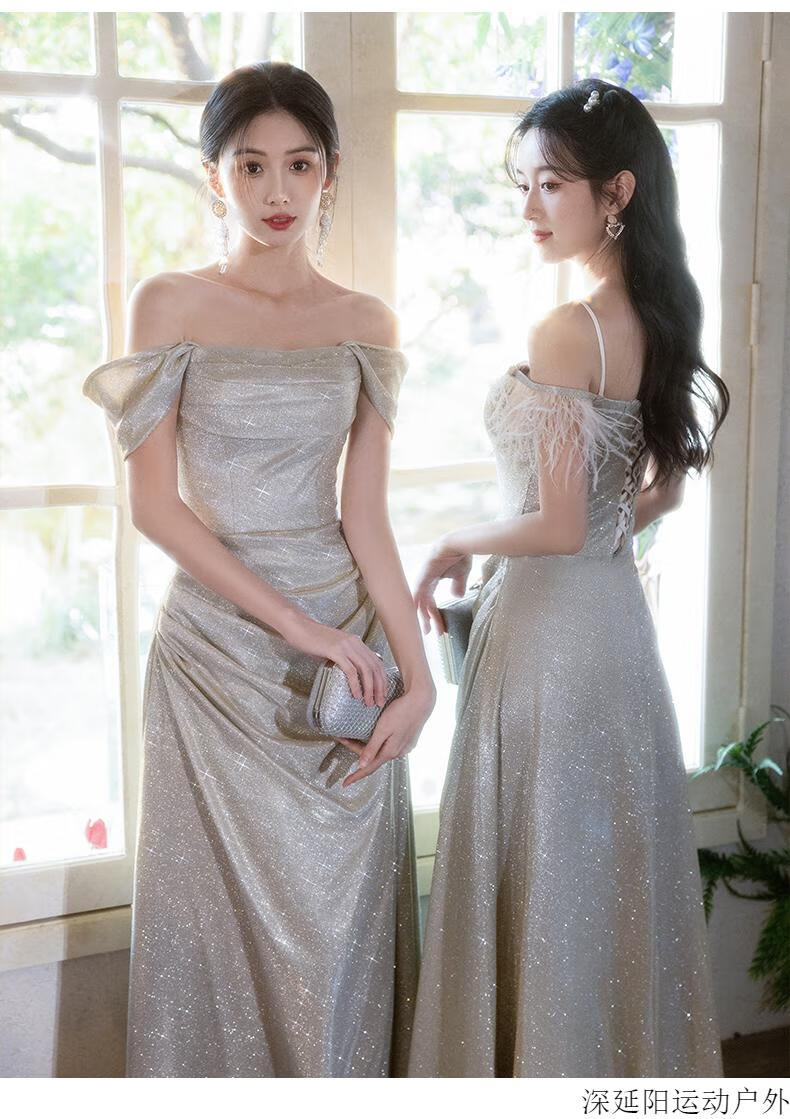 Chuangjingyi selected dress high-end light luxury niche evening dress high-end light luxury niche 2025 new style French engagement party evening champagne gold A style_135CM M