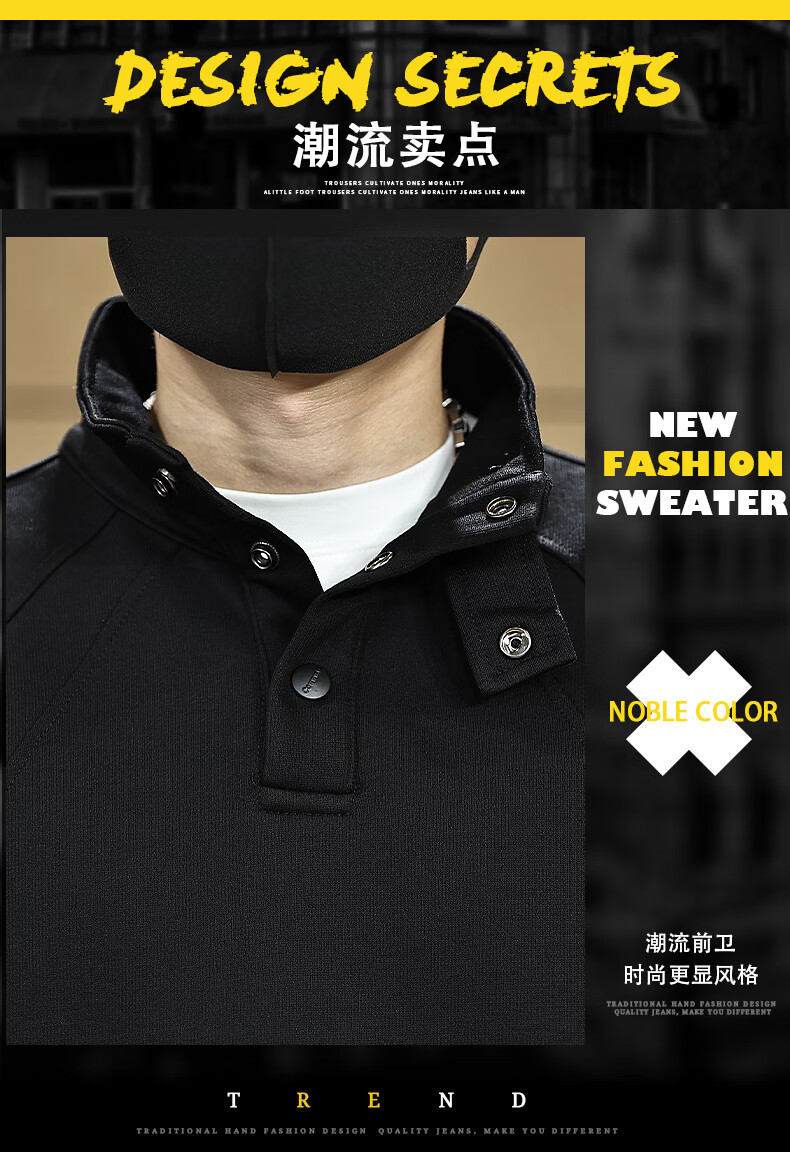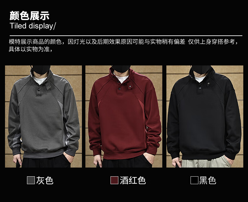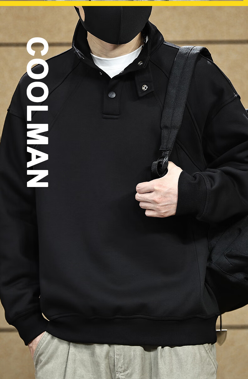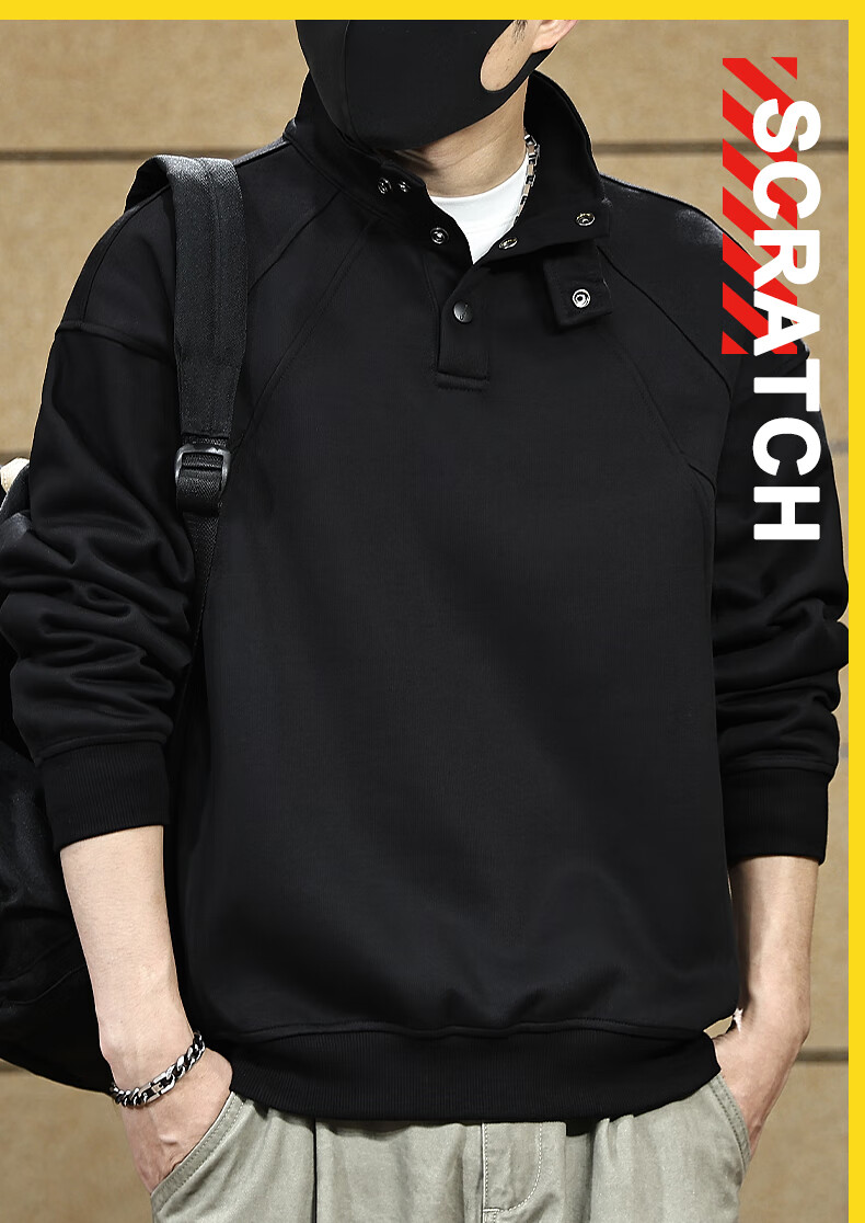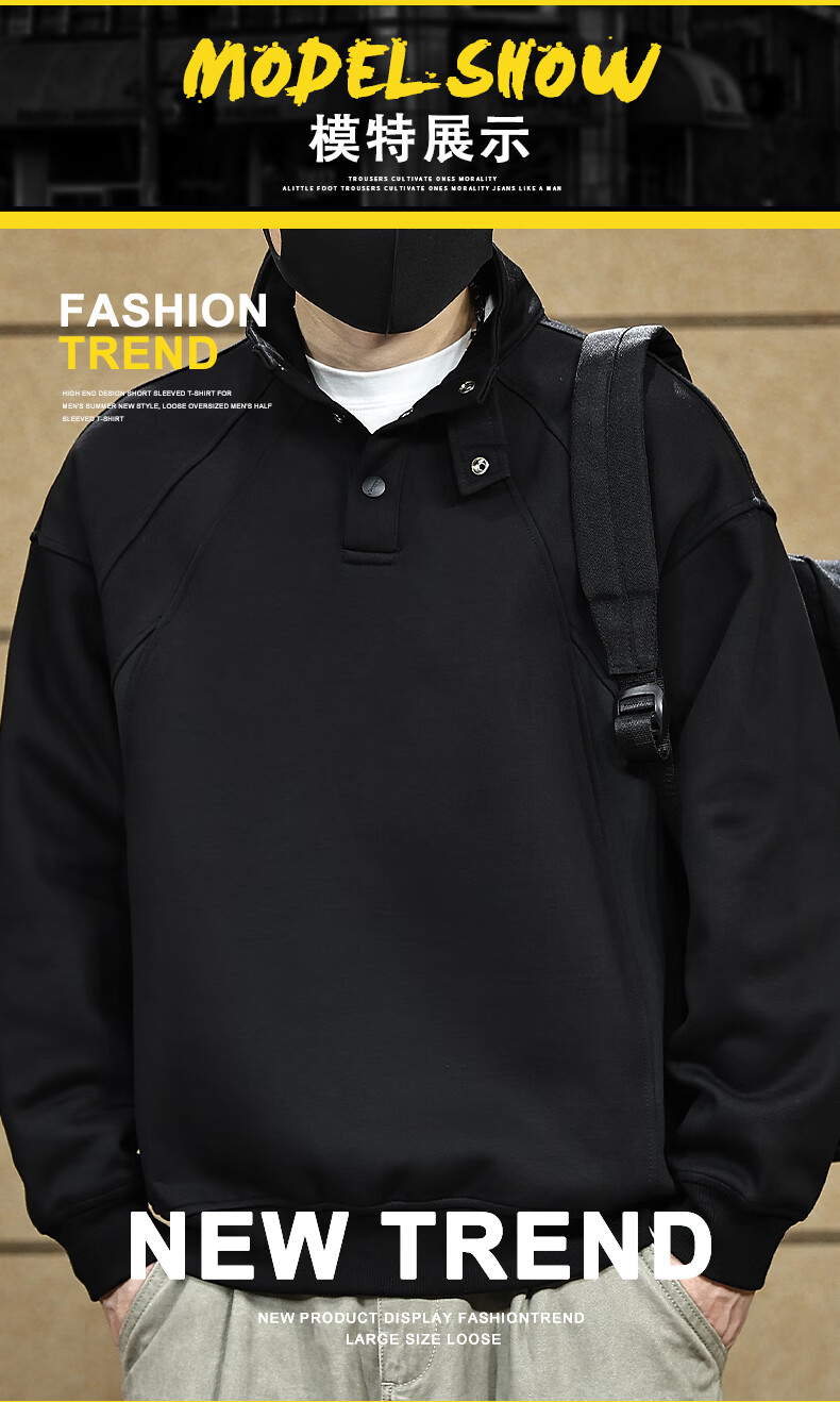 Yilang Cool American Retro Heavy Structure Half-Turtle Collar Sweatshirt Men's Autumn New Trendy Loose Henley Shirt Men's Black M Suitable for 110-130Jin Jin is equal to 0.5 kg