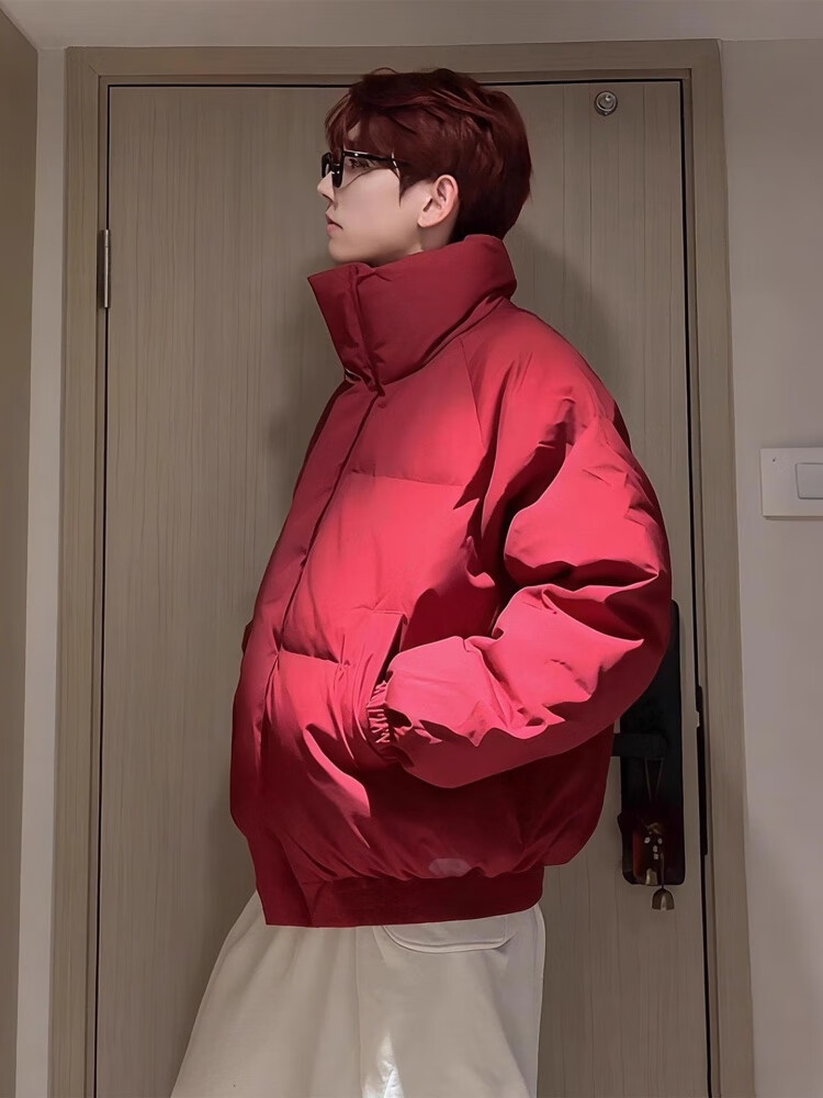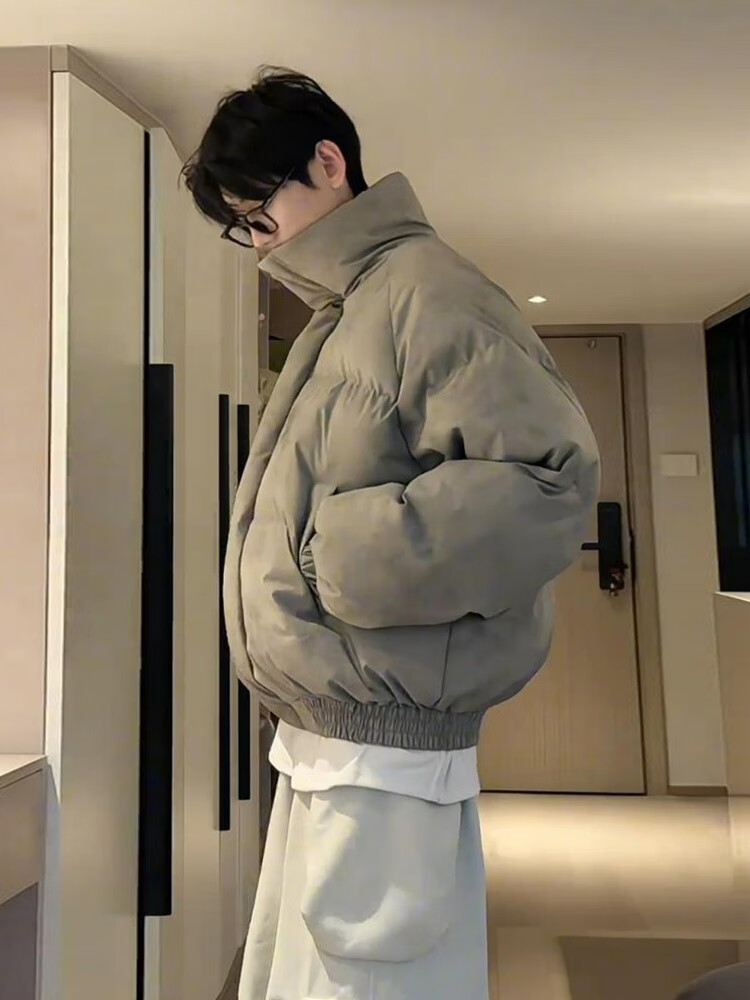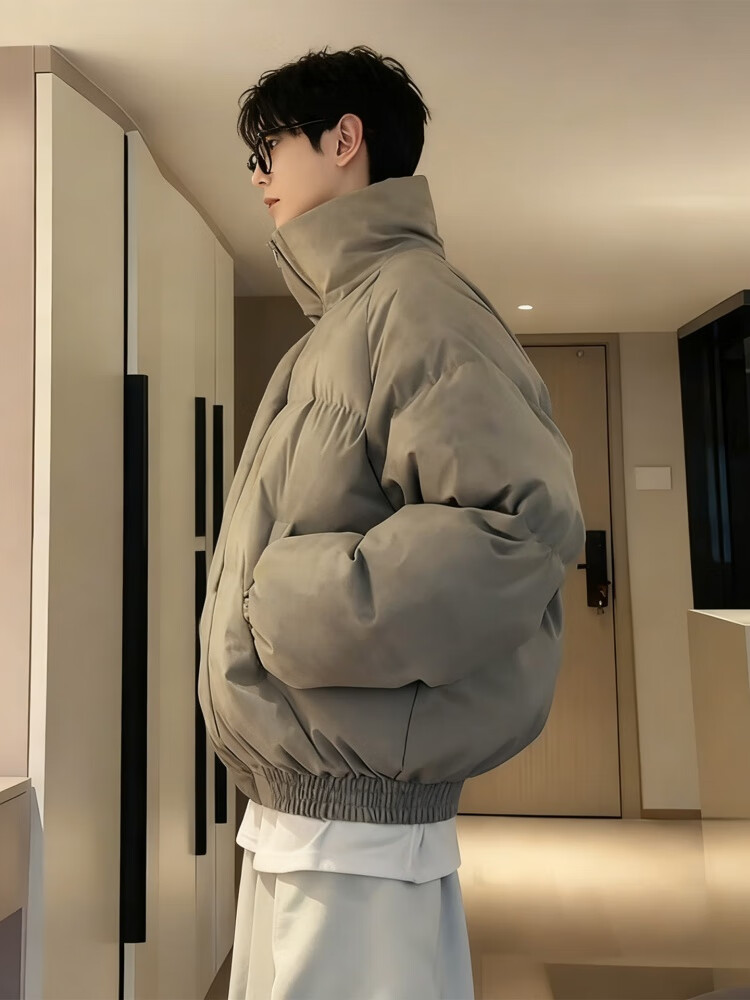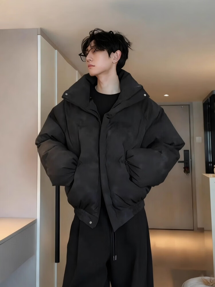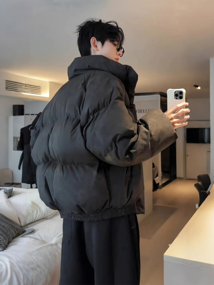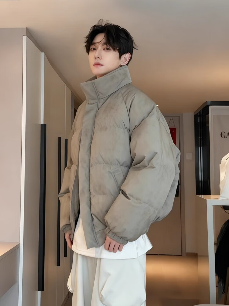 Katuchi American tie-dyed down cotton coat men's winter short high-collar bread coat cleanfit high-end cotton coat thick coat camel XL