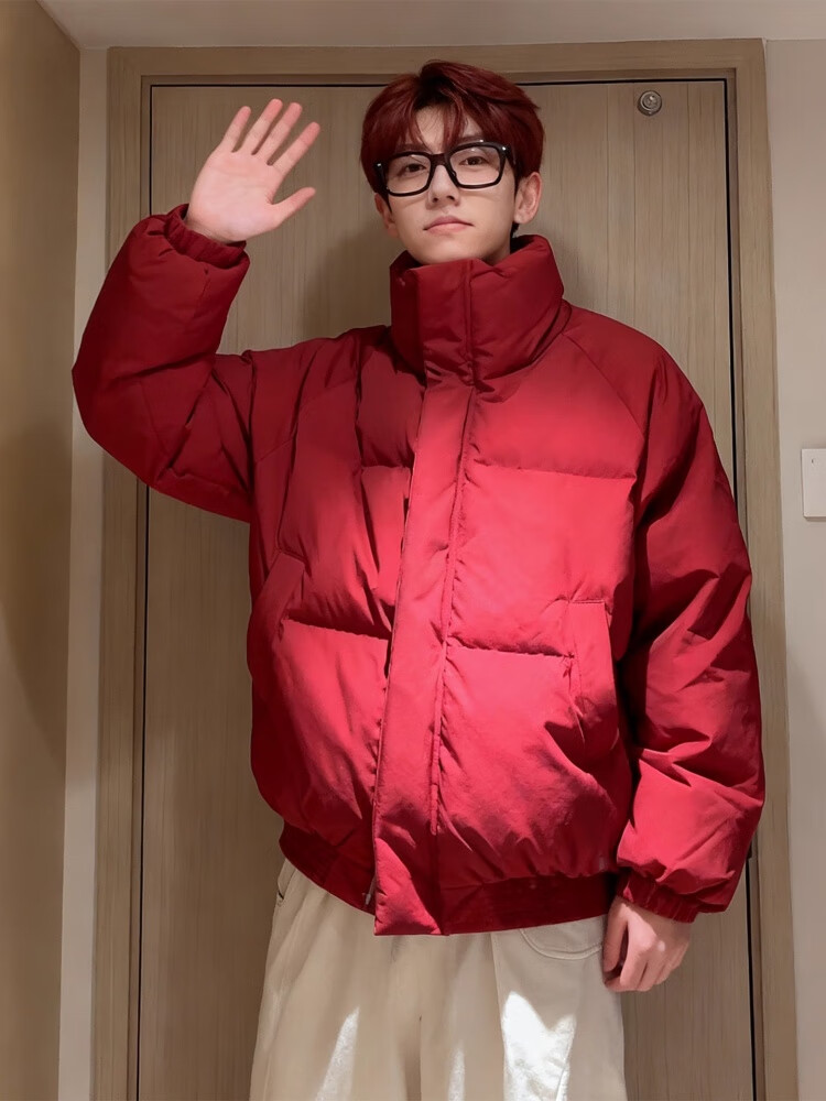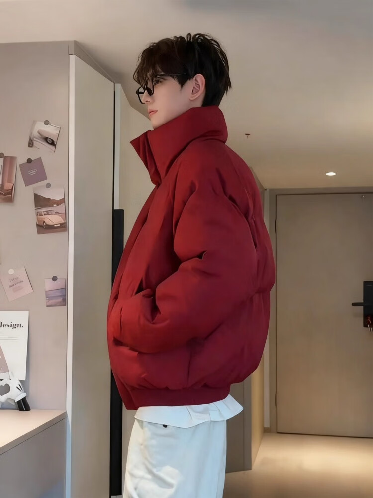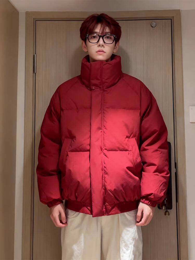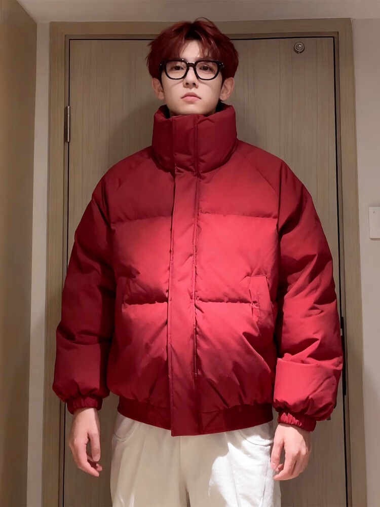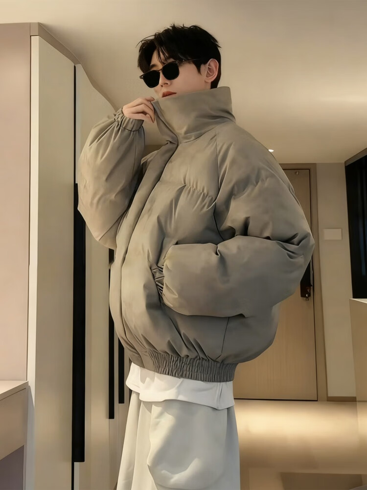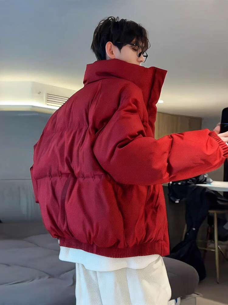 Katuchi American tie-dyed down cotton coat men's winter short high-collar bread coat cleanfit high-end cotton coat thick coat camel XL