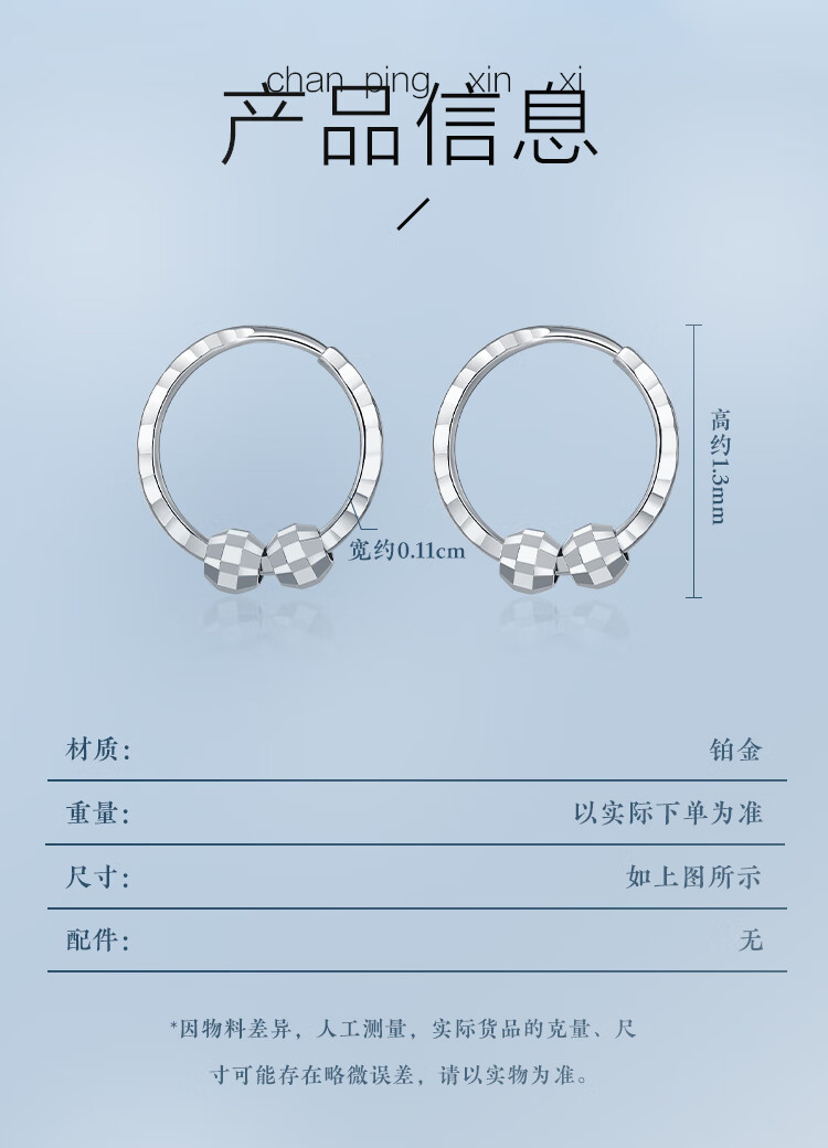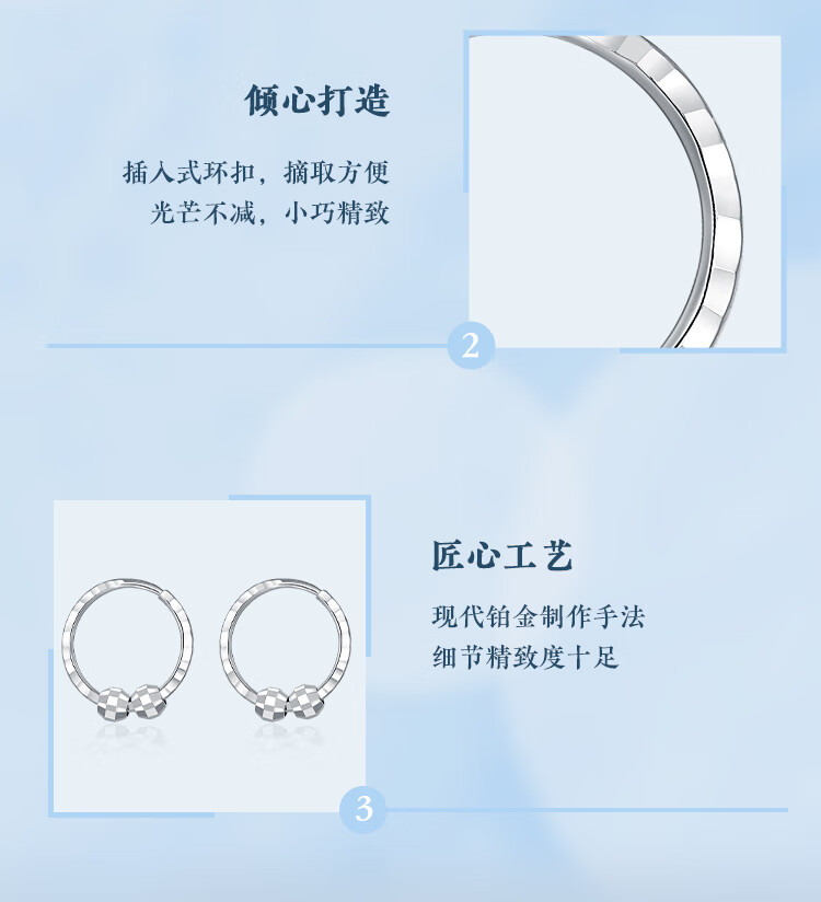 Wanfulong PT950 platinum niche light luxury earrings simple earrings plain hoops 2025 new hot style birthday gift for girlfriend Platinum PT950 niche light luxury plain hoop earrings 1.43g