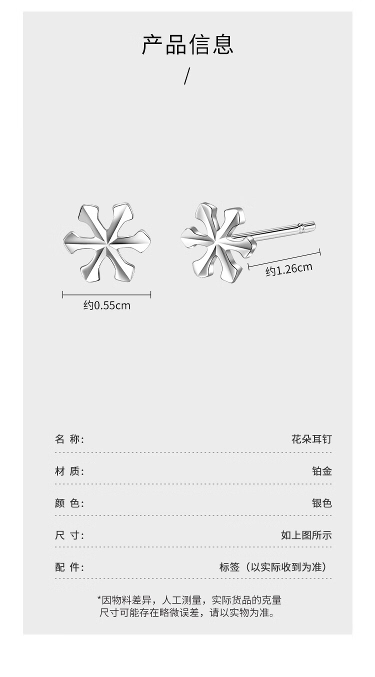 Wanfulong Snowflake Earrings Authentic pt950 Platinum Lucky Earrings Platinum Versatile Temperament High-end Earrings Birthday Gift 0.61g