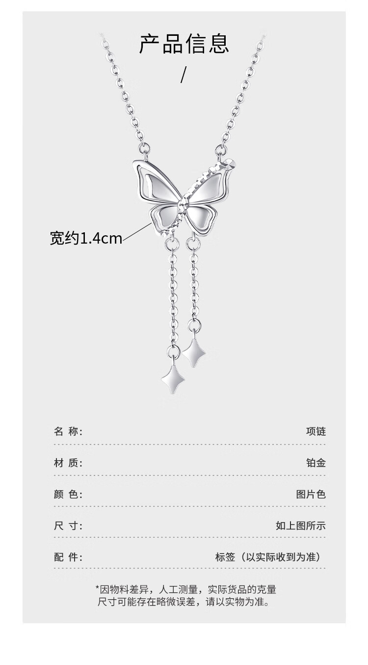 Wanfulong PT950 platinum white necklace genuine clavicle butterfly chain women's style men's birthday gift for girlfriend and mother, one thing, one certificate, supports identification, and you will be compensated 10% if it is fake.