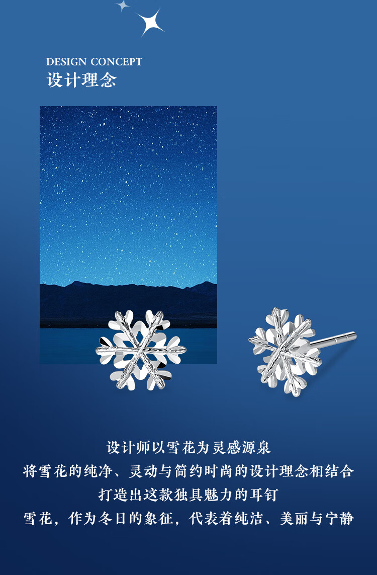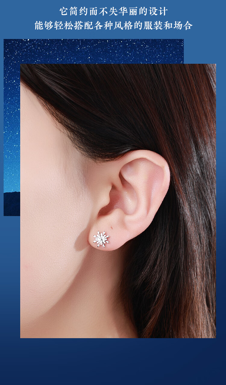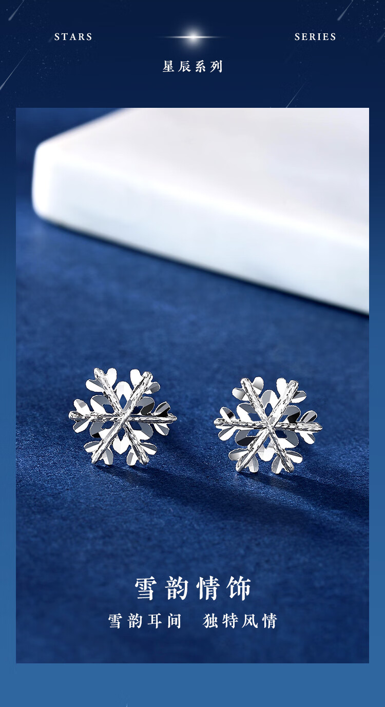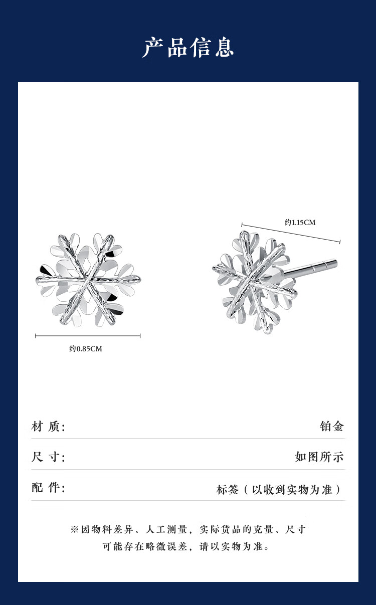 Wanfulong 2025 new platinum snowflake earrings for women pt950 shiny platinum commuting versatile high-end earrings gift PT950 platinum snowflake earrings 0.98g