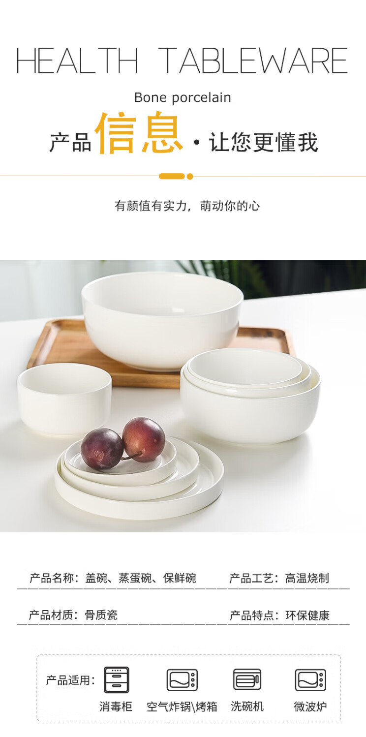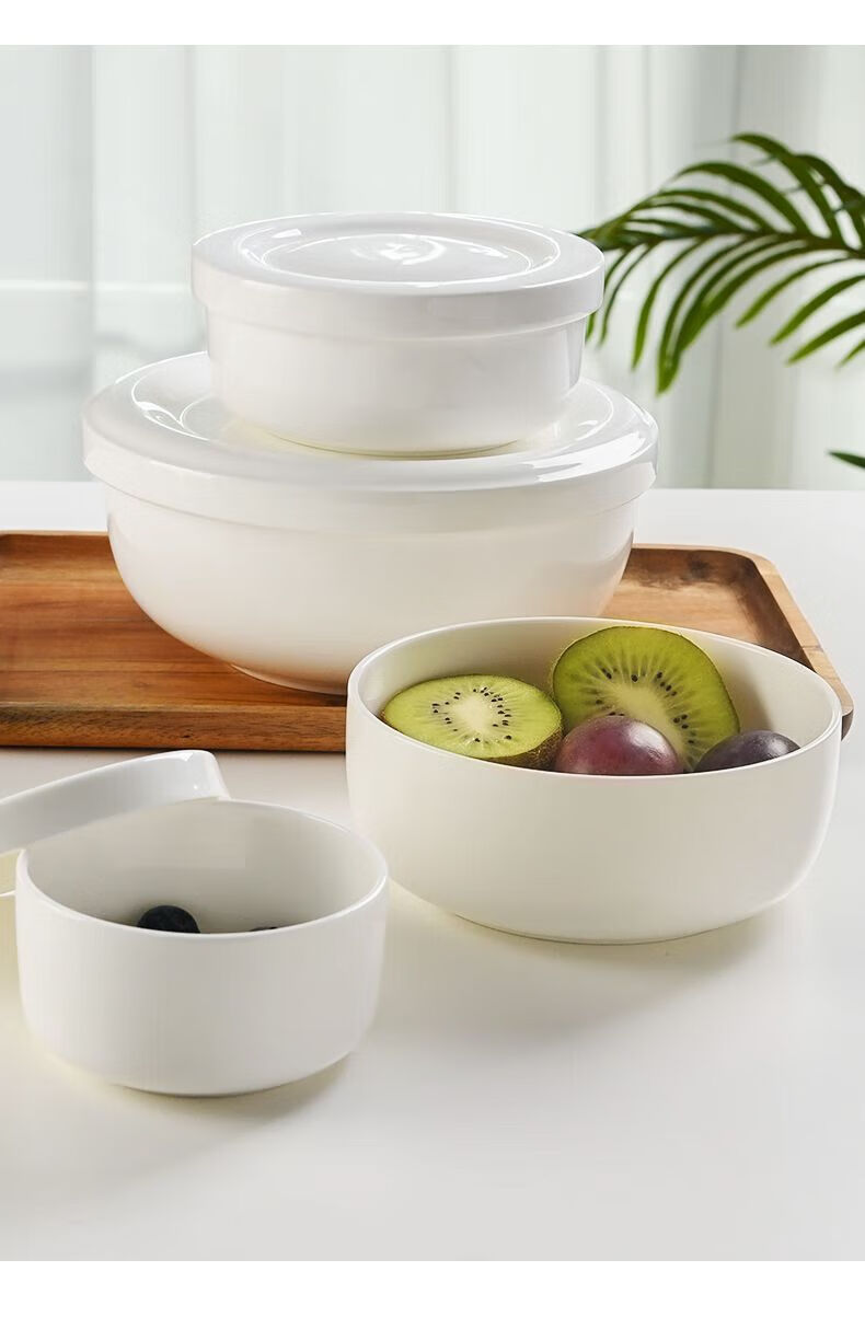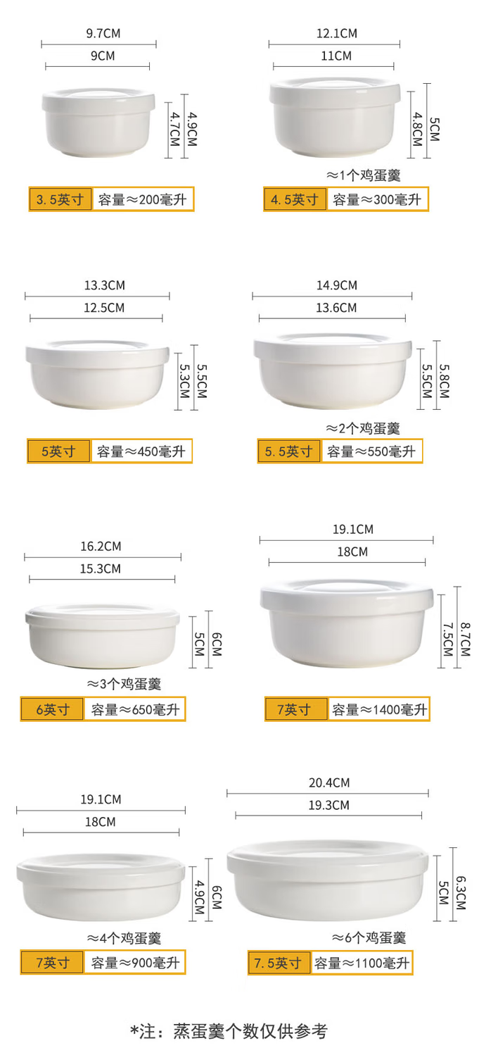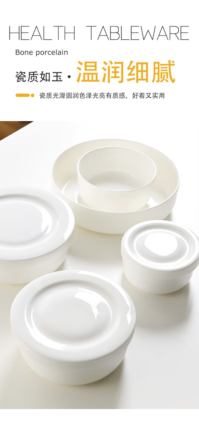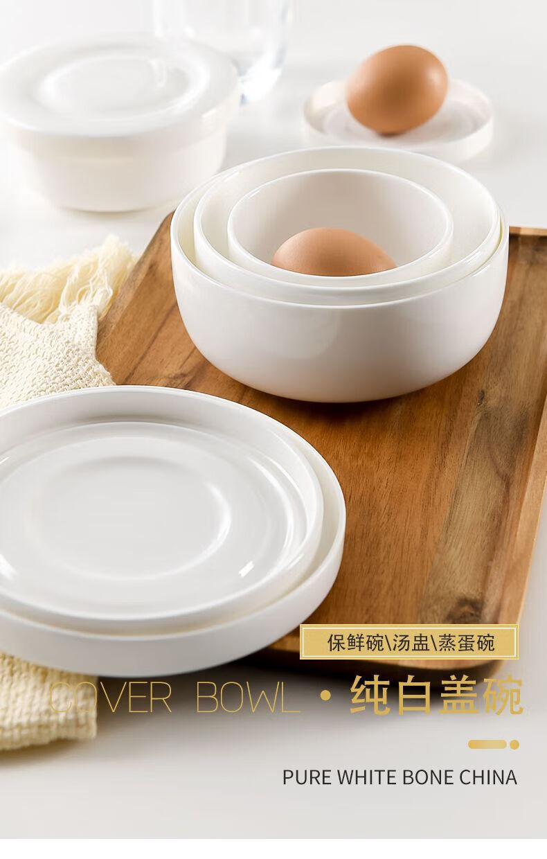 Runhua Nianlong Meige water-proof stewed steamed egg bowl with lid Internet celebrity household fresh-keeping bowl ceramic bowl with lid instant noodle bowl steamed egg custard covered bowl 5-piece set