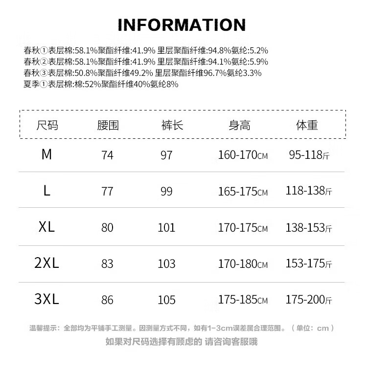 Outseam (cm) 99 cm 101.5 cm 104 cm 106.5 cm 109 cm