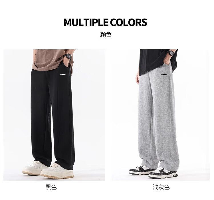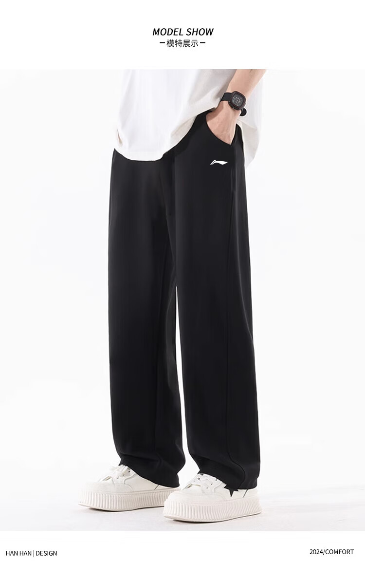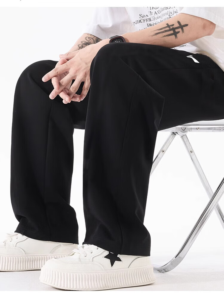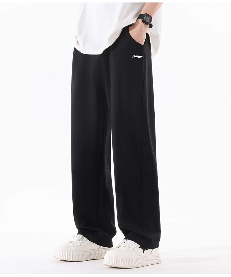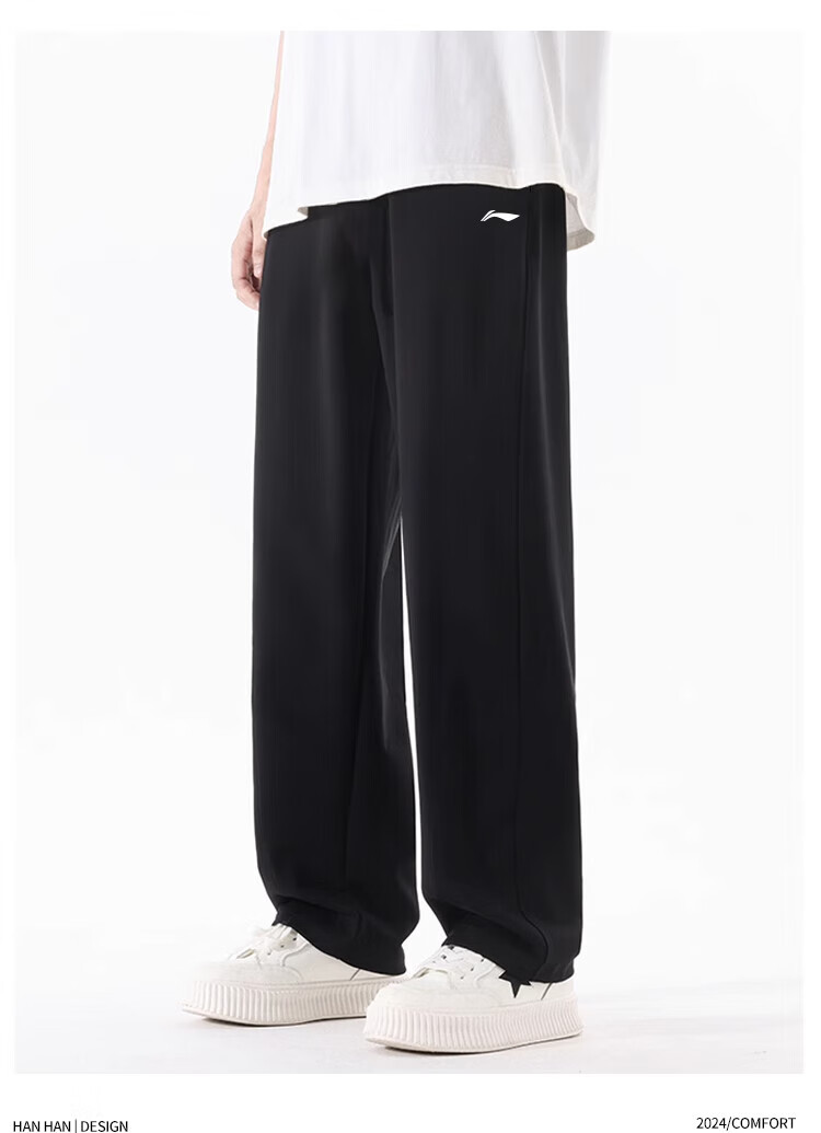 Li Ning (LI-NING) sports pants for men spring and autumn new knitted drape soft straight pants loose casual light luxury business versatile sweatpants black straight pants business casual S