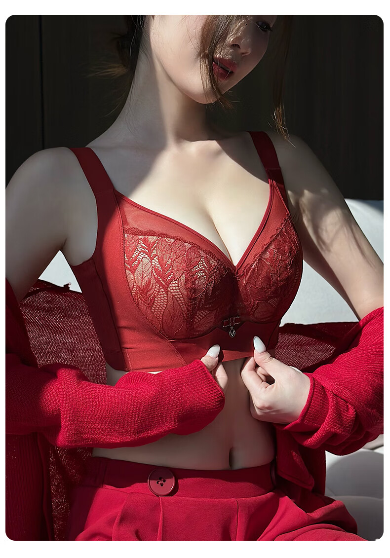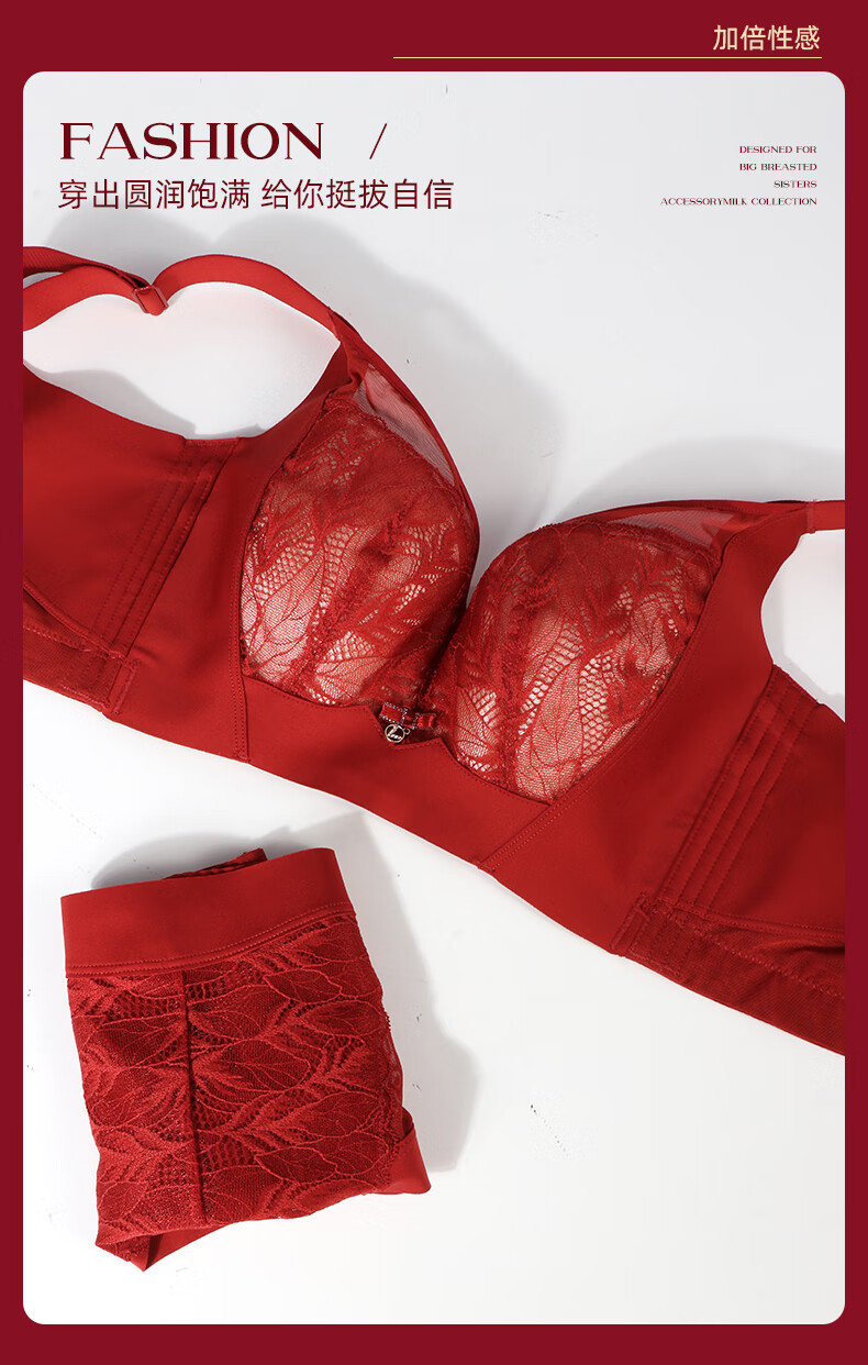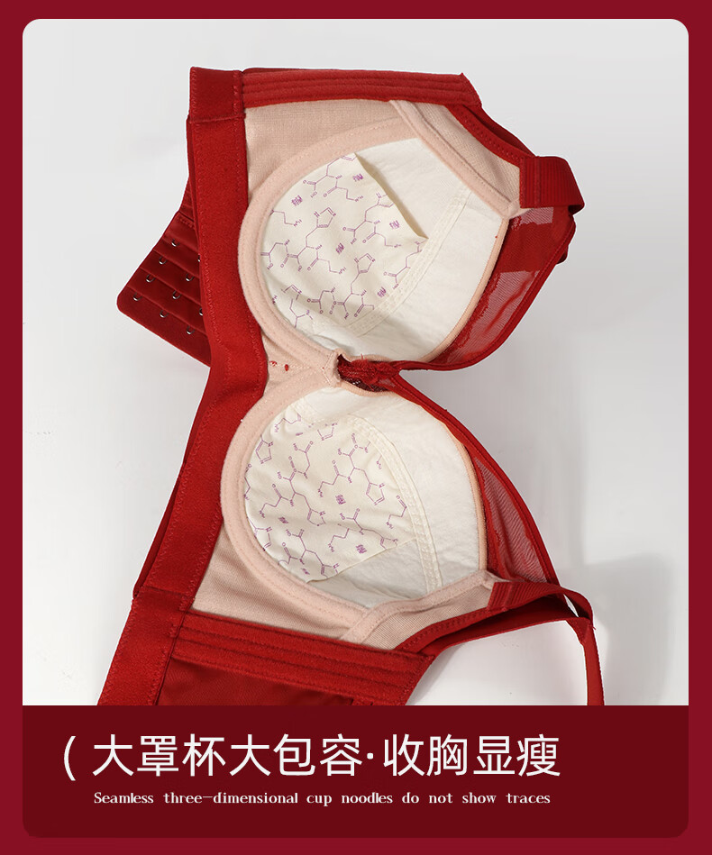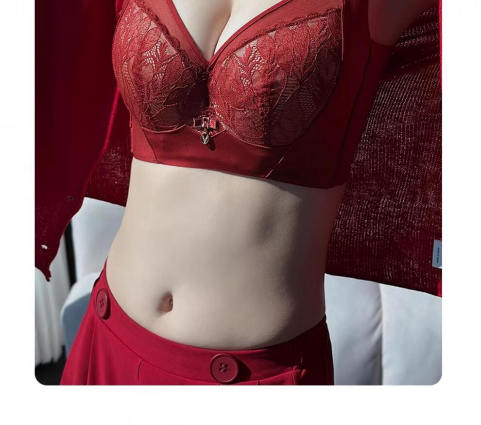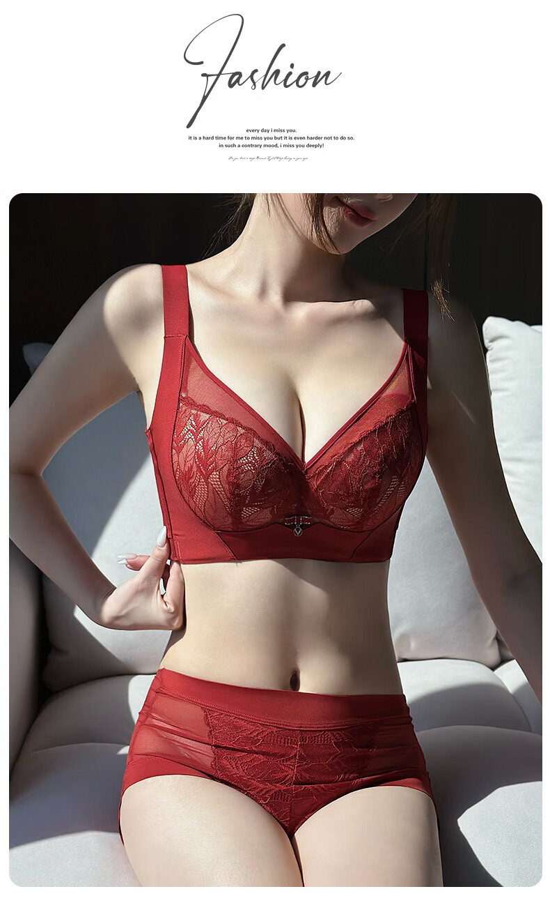 Admiration Autumn and Summer Big Breast Reducing Full Cup Red Underwear Women's Push-Up Adjustable Breast Adjustment Year of the Zodiac Wedding Bra Set Burgundy (Set) 85C 38