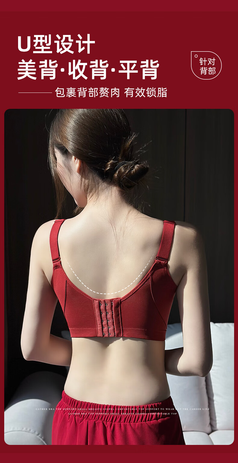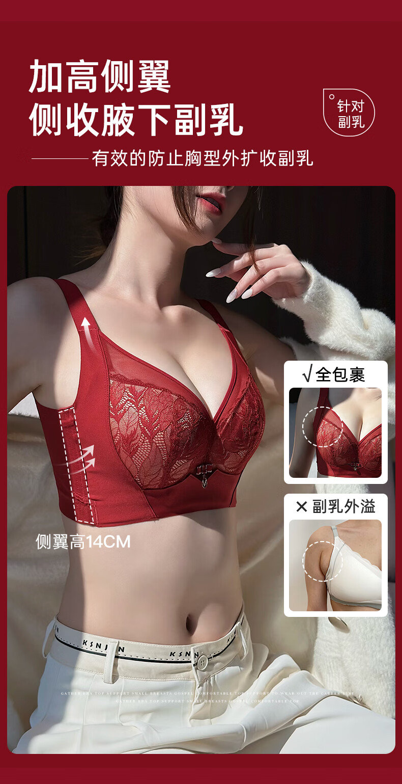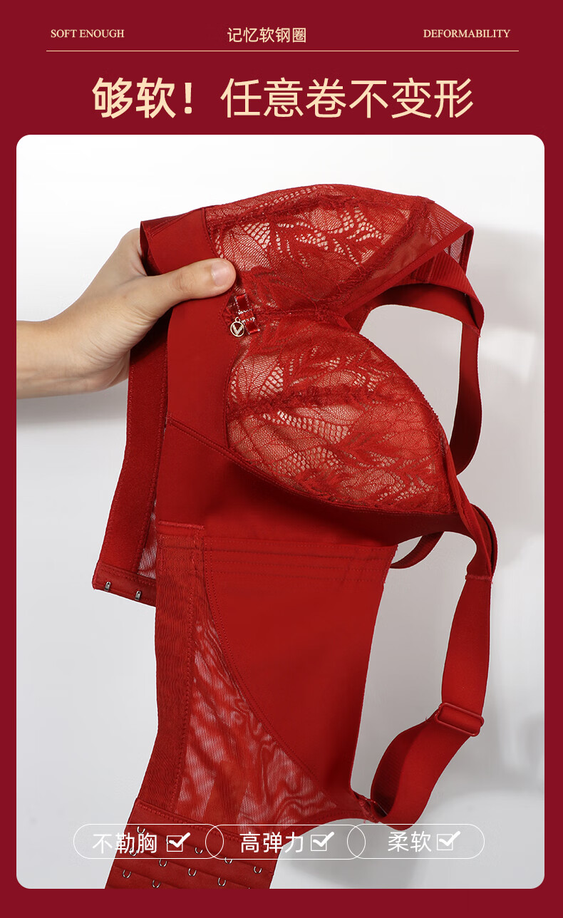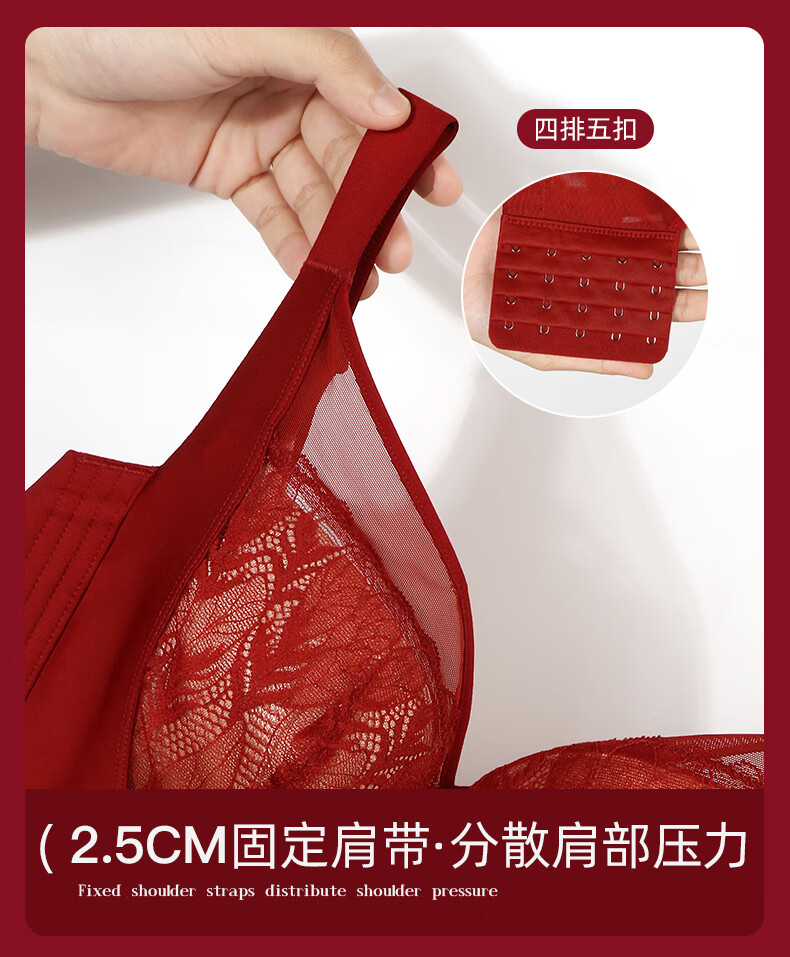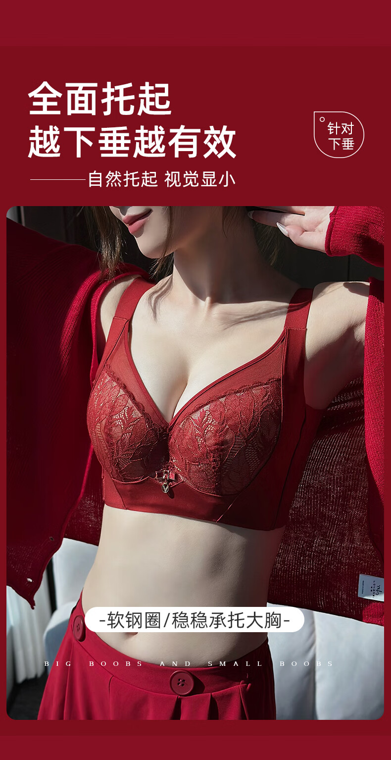 Admiration Autumn and Summer Big Breast Reducing Full Cup Red Underwear Women's Push-Up Adjustable Breast Adjustment Year of the Zodiac Wedding Bra Set Burgundy (Set) 85C 38