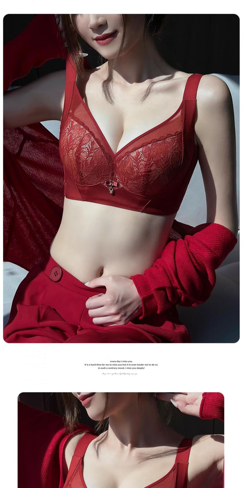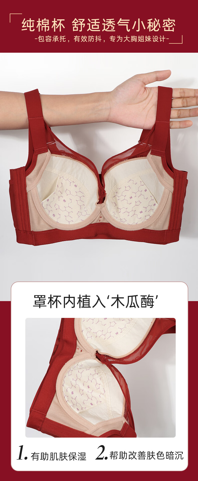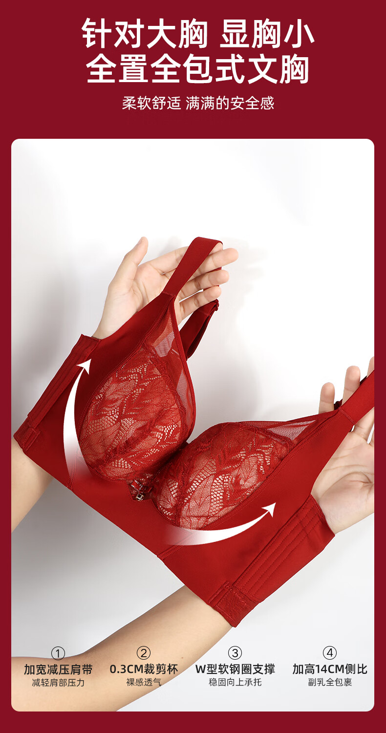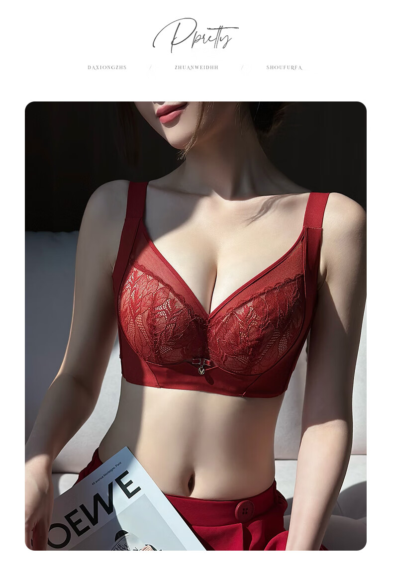 Admiration Autumn and Summer Big Breast Reducing Full Cup Red Underwear Women's Push-Up Adjustable Breast Adjustment Year of the Zodiac Wedding Bra Set Burgundy (Set) 85C 38