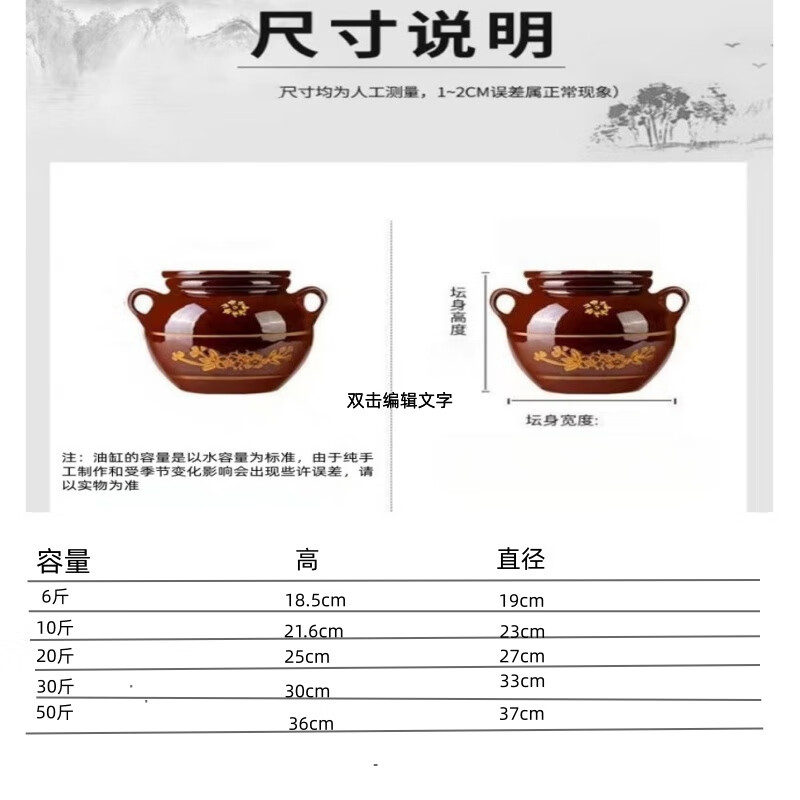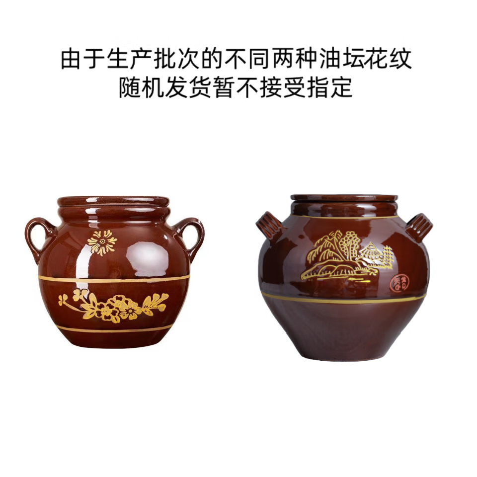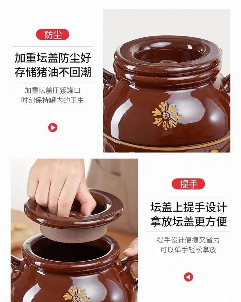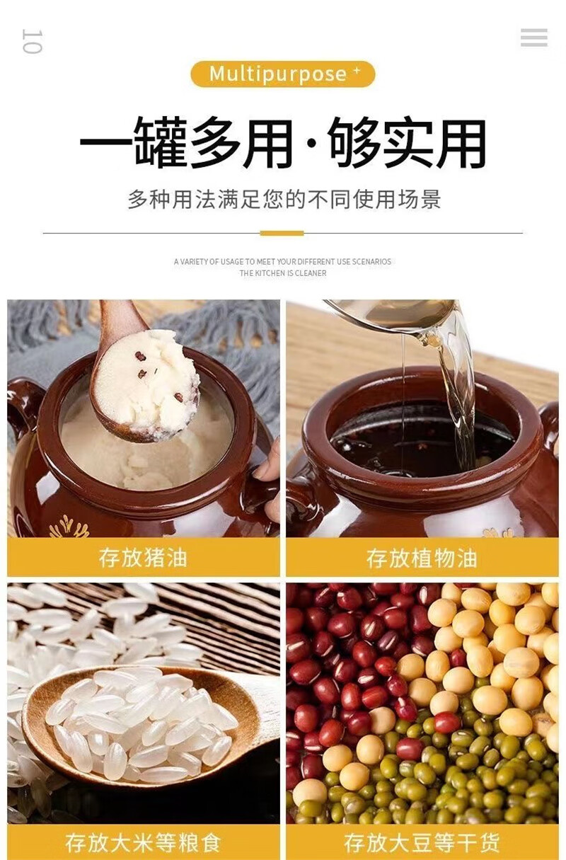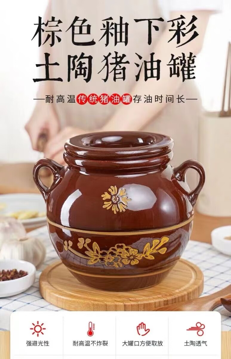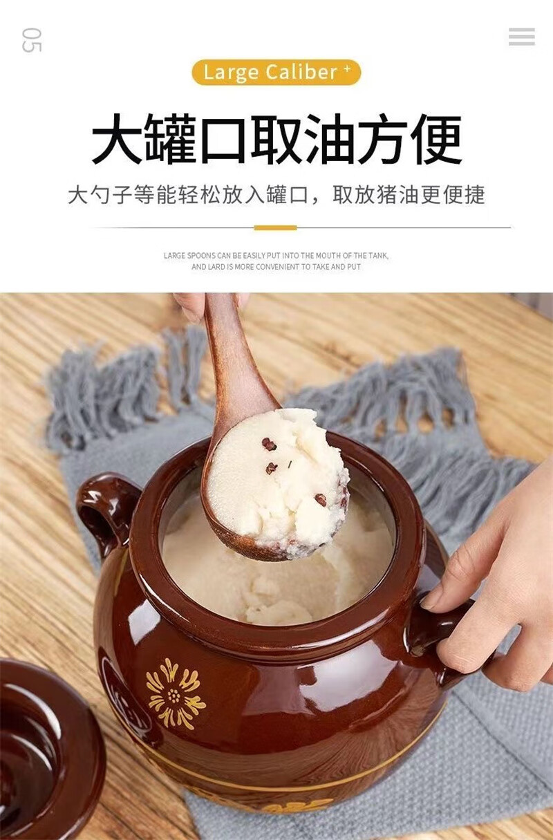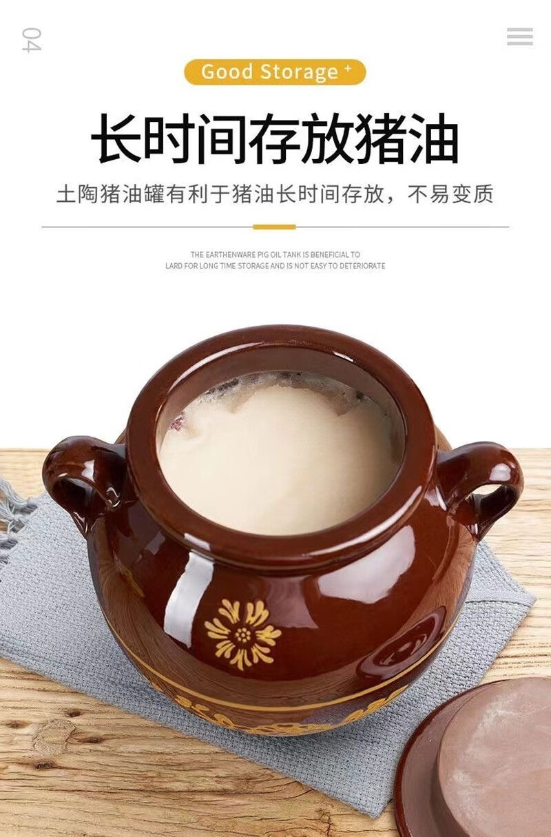 Earthen pottery lard jar with lid extra thick and high temperature resistant household oil jar household storage jar 10 Jin Jin is equal to 0.5 kg Earthen pottery double-eared lard jar natural and rustic
