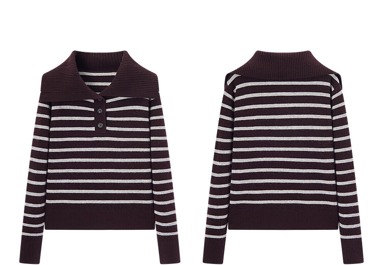 EICHITOO Striped Lapel Pullover Sweater 2025 Winter New Women's Classic Fashion Sweater ENZAJ4Q046A Red Brown Stripes 51 S