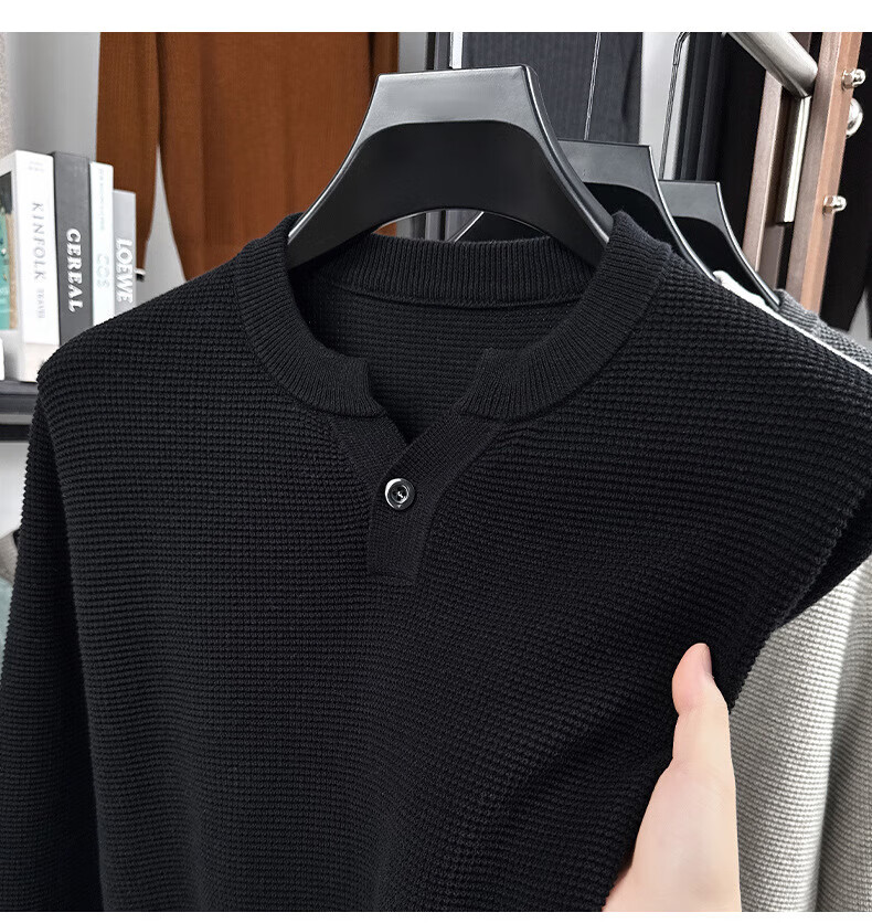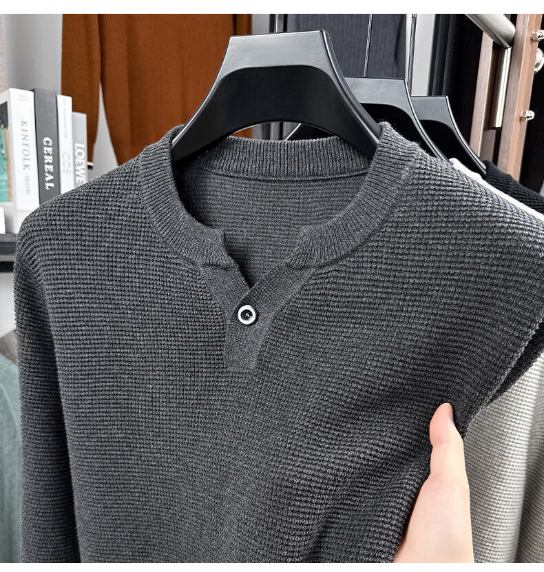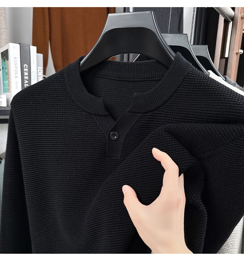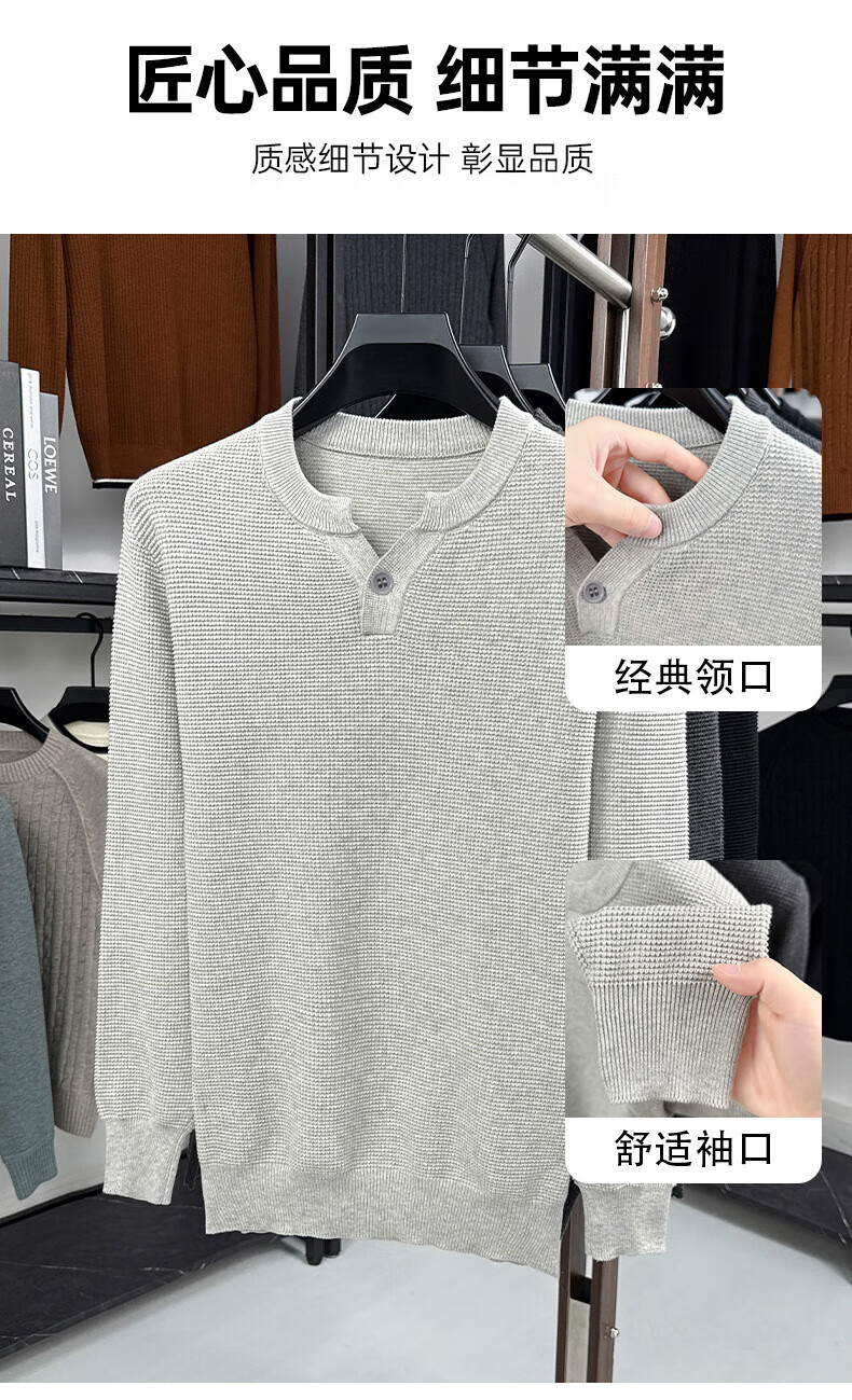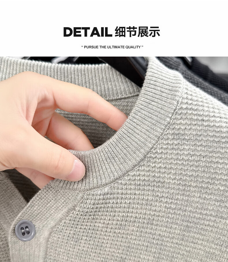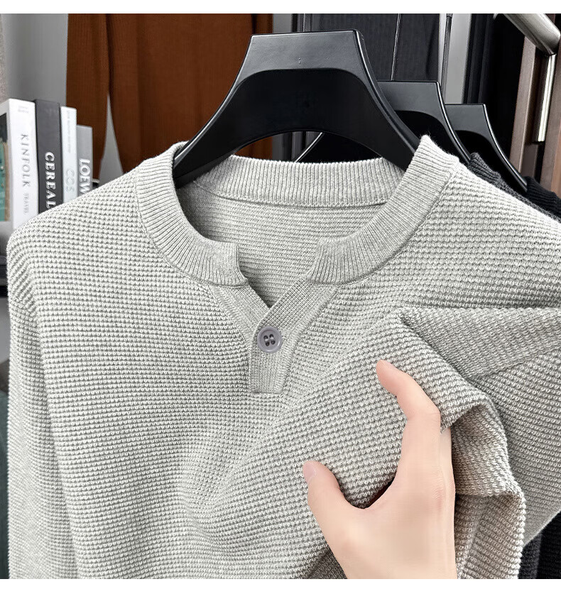 Playboy (PLAYBOY) Henry collar knitted cotton long-sleeved T-shirt for men, spring and autumn casual, light and mature, simple solid color slim fit bottoming shirt top, dark gray L recommended 120-140Jin Jin equals 0.5 kg)
